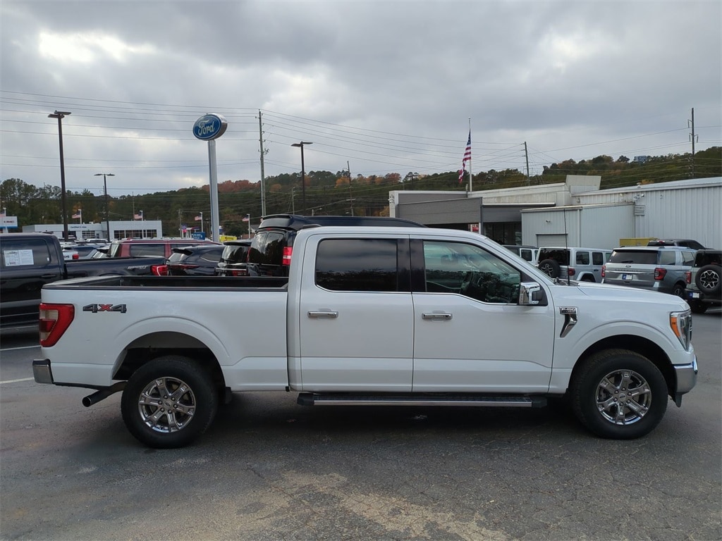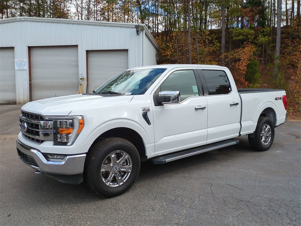 Oxford White 2021 Ford F-150 Lariat 4WD 4WD Lariat 4WD 12" LCD Productivity Touchscreen, 4G WiFi Hotspot Telematics, Auto Emergency Braking, Backup Camera, Blind Spot Monitoring, BLIS w/ Cross Traffic Alert, Bluetooth w/ Audio Streaming, Lane Keeping System, Lariat Package, Leather Seats, LED Foglights, Memory Package, Parking Sensors, Post Collision Braking, Power Mirror Package, Power Package, Power Sliding Rear Window, Pre Collision Assist w/ AEB, Premium Audio Package, Premium Sound Package, Push Button Start, Reverse Brake Assist, Reverse Sensing, Tow Package, Trailer Package, 4D SuperCrew, 3.5L V6 EcoBoost, 10-Speed Automatic, 4WD, 4-Wheel Disc Brakes, 6" Chrome Running Board, ABS brakes, Adjustable pedals, Auto High-beam Headlights, Auto-dimming door mirrors, Auto-dimming Rear-View mirror, Automatic temperature control, Brake assist, Chrome 2-Bar Grille w/4 Minor Bars, Chrome Door & Tailgate Handles w/Body-Color Bezel, Chrome Single-Tip Exhaust, Chrome Skull Caps on Exterior Mirrors, Class IV Trailer Hitch Receiver, Compass, Delay-off headlights, Electronic Locking w/3.55 Axle Ratio, Electronic Stability Control, Emergency communication system: SYNC 4 911 Assist, Engine Block Heater, Equipment Group 501A Mid, Extended Range 36 Gallon Fuel Tank, Exterior Parking Camera Rear, Front Center Armrest w/Storage, Front dual zone A/C, Front fog lights, Front wheel independent suspension, Fully automatic headlights, GVWR: 7,100 lbs Payload Package, Heated door mirrors, Heated front seats, Illuminated entry, Integrated Trailer Brake Controller, Lariat Chrome Appearance Package, Leather-Trimmed 40/20/40 Front Seat, Low tire pressure warning, Memory seat, Onboard 400W Outlet, Outside temperature display, Overhead console, Panic alarm, Pedal memory, Power door mirrors, Power passenger seat, Pro Trailer Backup Assist, Radio data system, Radio: AM/FM SiriusXM w/360L, Radio: B&O Sound System by Bang & Olufsen, Rear seat center armrest, Rear step bumper, Remote keyless entry, Security system, Speed control, Speed-sensing steering, Split folding rear seat, Steering wheel mounted audio controls, SYNC 4 w/Enhanced Voice Recognition, Telescoping steering wheel, Tilt steering wheel, Tough Bed Spray-In Bedliner, Traction control, Trailer Tow Package, Trip computer, Turn signal indicator mirrors, Universal Garage Door Opener, Variably intermittent wipers, Ventilated front seats, Wheels: 18" Chrome-Like PVD.