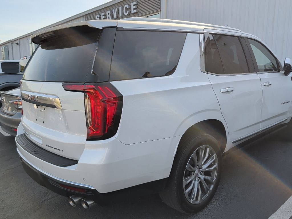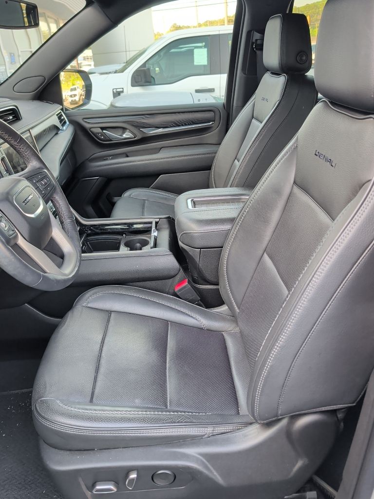 Elevate your driving experience with the Yukon Denali's premium amenities, including a Bose surround sound system, heated and ventilated front seats, and a power-retractable assist step for easy access. The panoramic sunroof and advanced safety features, such as Blind Spot Monitoring and Reverse Brake Assist, further enhance your comfort and peace of mind.