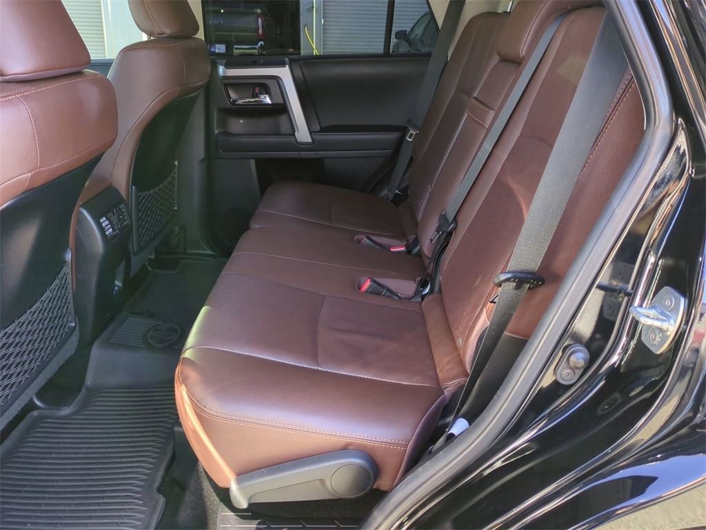 Midnight Black Metallic 2023 Toyota 4Runner Limited RWD Limited **LOCAL TRADE**, 360-Degree Camera, 3rd Row Seating, 8" Color Touchscreen, Adaptive Cruise Control, Backup Camera, Blind Spot Monitoring, Foward Collison Alert, HD Surround Vision, Lane Departure Warning, Lane Keeping System, Leather Seats, Limited Package, Memory Package, Multi Zone Climate Control, Parking Sensors, Power Mirror Package, Power Package, Rear Climate Package, Rear Cross Traffic Alert, Reverse Brake Assist, Reverse Sensing, Skid Plate Package, Toyota Safety Sense, 4D Sport Utility, 4.0L V6 DOHC 24V, 5-Speed with ECT, RWD, Redwood Leather, 15 Speakers, 4-Wheel Disc Brakes, ABS brakes, AM/FM radio: SiriusXM, Apple CarPlay/Android Auto, Auto High-beam Headlights, Auto-dimming Rear-View mirror, Automatic temperature control, Brake assist, Compass, Delay-off headlights, Dual Zone Auto Climate Control, Electronic Stability Control, Emergency communication system: Safety Connect (1-year trial), Front Center Armrest, Front dual zone A/C, Front fog lights, Front wheel independent suspension, Fully automatic headlights, Garage Door Opener, Garage door transmitter: HomeLink, Heated & Ventilated Front Bucket Seats, Heated door mirrors, Heated Outside Rear-View Mirrors, Illuminated entry, Leather Seat Trim, Low tire pressure warning, Memory seat, Moonroof w/Tilt Up & Slide, Navigation System, Outside temperature display, Overhead console, Panic alarm, Panoramic Back Monitor, Power door mirrors, Power moonroof, Power passenger seat, Power windows, Radio: Premium Audio w/JBL, Rear seat center armrest, Rear window wiper, Remote keyless entry, Security system, Speed control, Speed-sensing steering, Split folding rear seat, Spoiler, Steering wheel mounted audio controls, Telescoping steering wheel, Tilt steering wheel, Traction control, Trip computer, Turn signal indicator mirrors, Variably intermittent wipers, Ventilated front seats, Wheels: 20" Unique Dual 6-Spoke Alloy.
