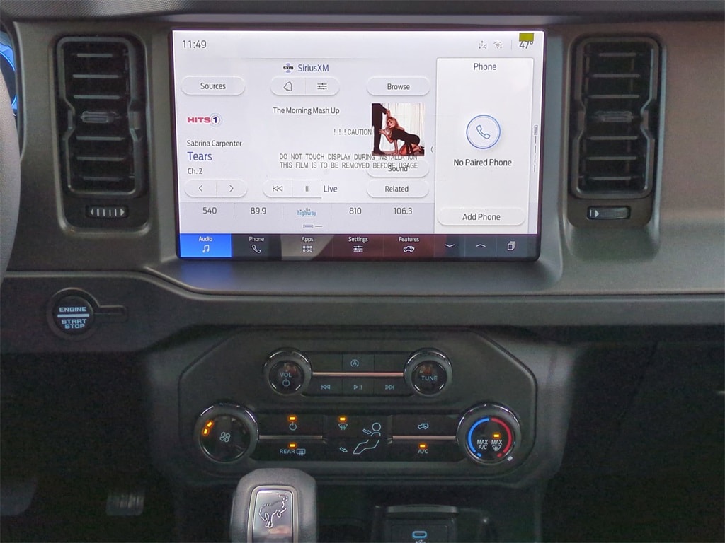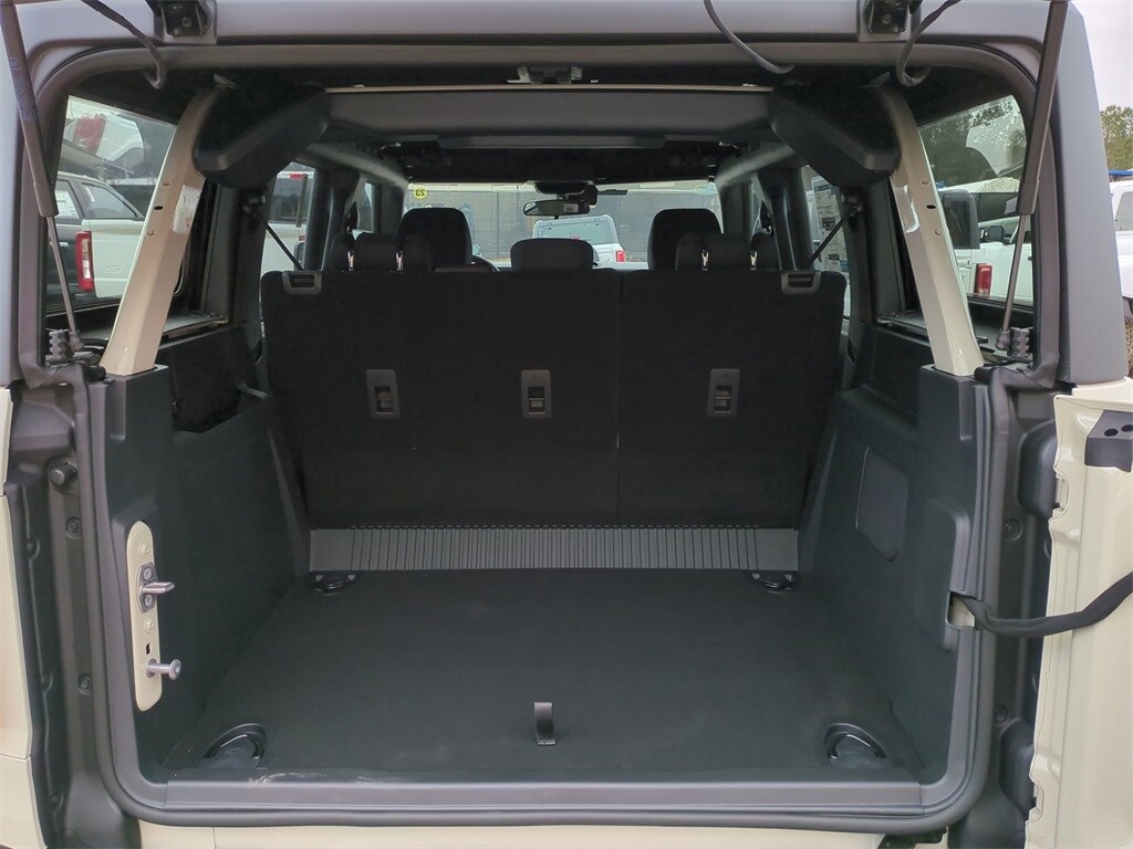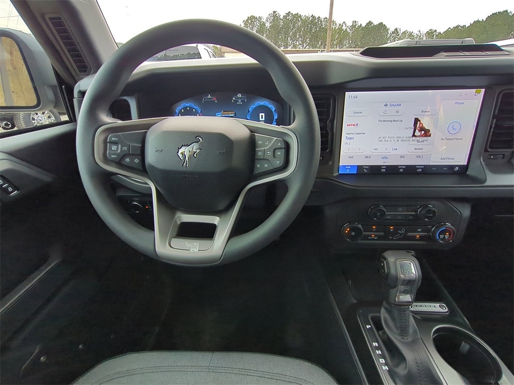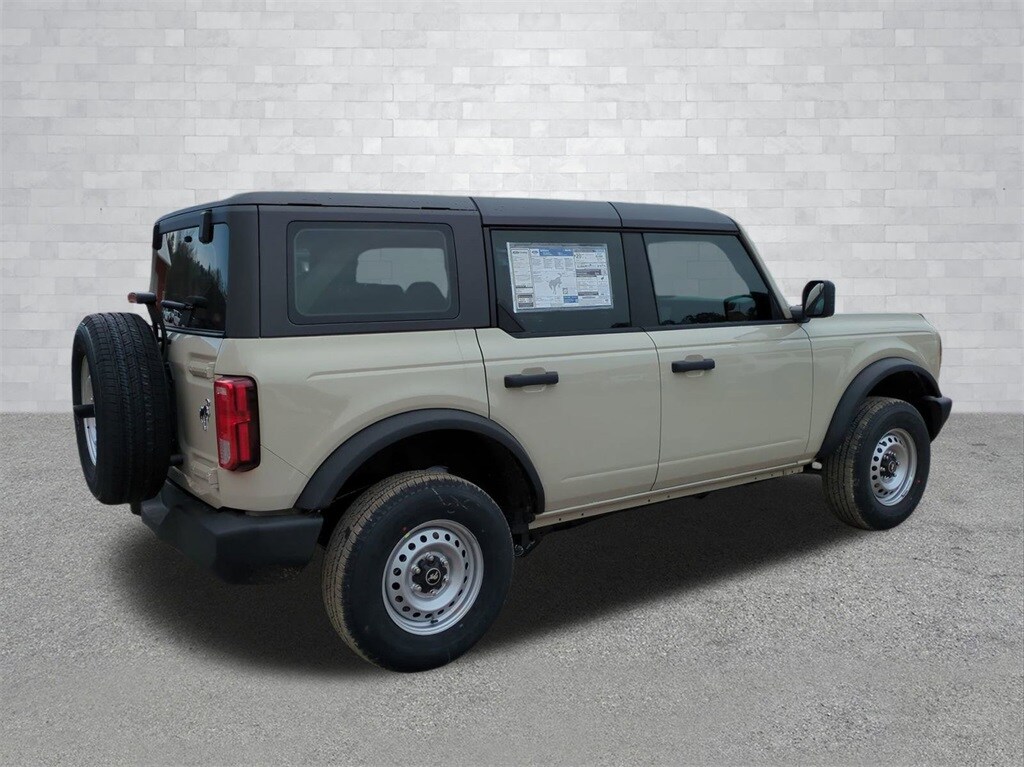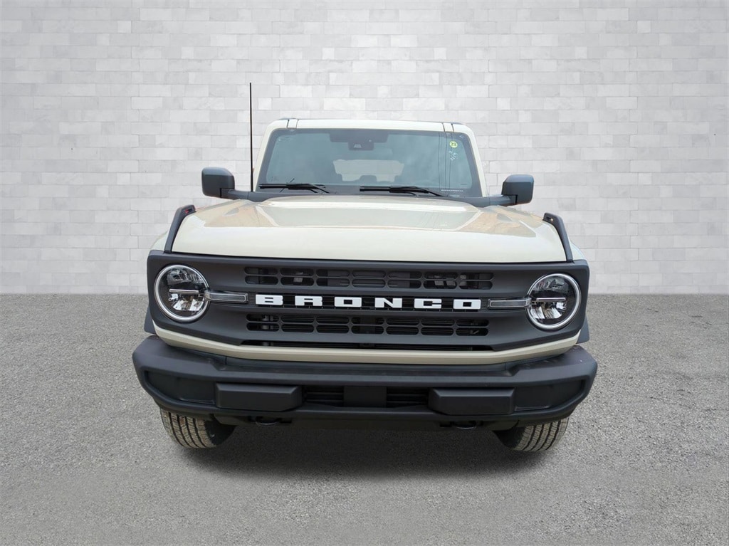 2025 Desert Sand 2025 Ford Bronco Base 4WD 2.3L EcoBoost I-4 4-Wheel Disc Brakes, 4.46 Axle Ratio, 7 Speakers, ABS brakes, Air Conditioning, AM/FM radio: SiriusXM with 360L, AM/FM Stereo, Auto High-beam Headlights, Brake assist, Cloth Bucket Seats, Compass, Delay-off headlights, Driver door bin, Driver vanity mirror, Dual front impact airbags, Dual front side impact airbags, Electronic Stability Control, Emergency communication system: 911 Assist, Exterior Parking Camera Rear, Front anti-roll bar, Front Bucket Seats, Front Center Armrest, Front reading lights, Front wheel independent suspension, Fully automatic headlights, Heated door mirrors, Illuminated entry, Integrated roll-over protection, Internet access capable: FordPass Connect, Low tire pressure warning, Occupant sensing airbag, Outside temperature display, Overhead airbag, Overhead console, Panic alarm, Passenger door bin, Passenger vanity mirror, Power door mirrors, Power steering, Power windows, Radio data system, Remote keyless entry, Security system, SiriusXM w/360L, Speed control, Split folding rear seat, Steering wheel mounted audio controls, SYNC 4, Tachometer, Telescoping steering wheel, Tilt steering wheel, Traction control, Trip computer, Variably intermittent wipers, and Wheels: 16" Bright Polished Silver-Painted Steel Courtesy Ford and Lincoln of Rome 101 Hwy 411 E Rome, Ga 30161 ROMEFORDLINC.COM 706.235.4453.