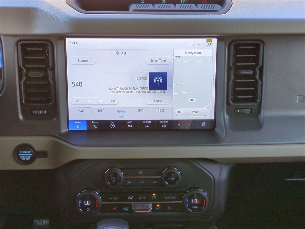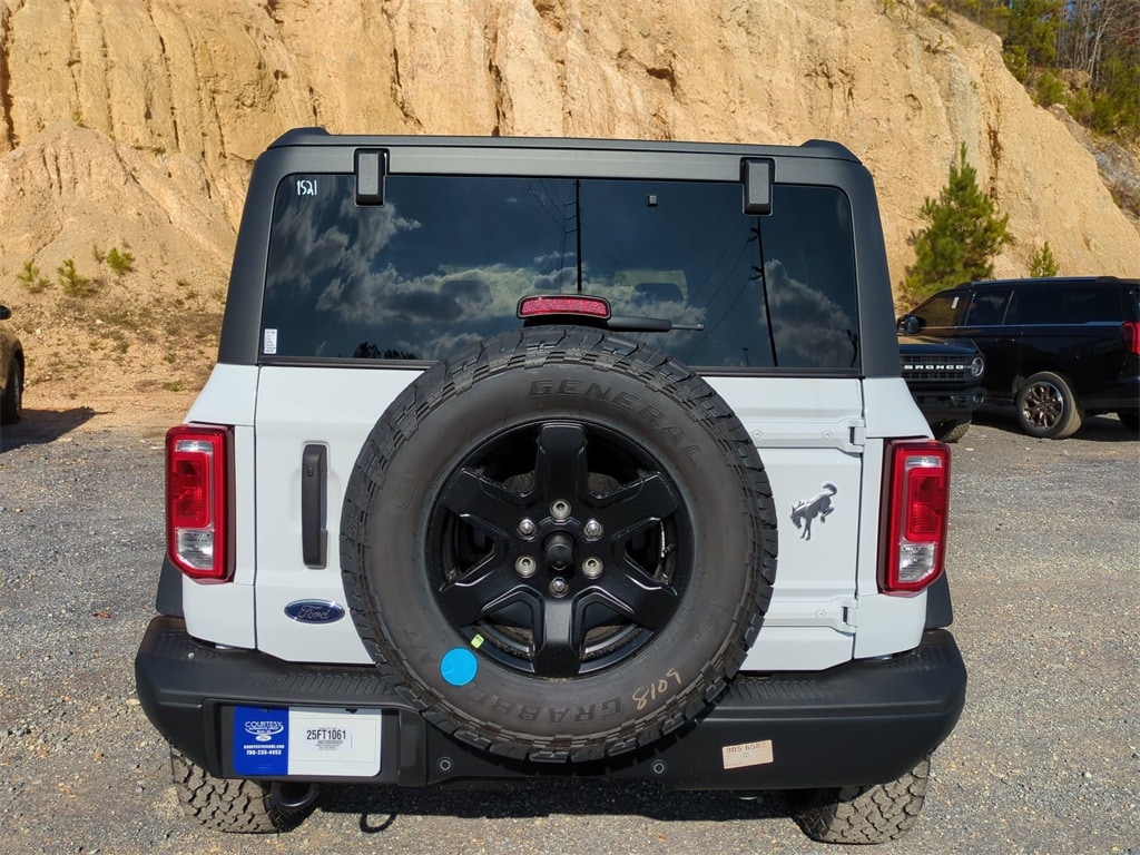 2025 Oxford White 2025 Ford Bronco Big Bend 4WD 2.3L EcoBoost I-4 12" LCD Productivity Touchscreen, Auto Emergency Braking, Auto LED Headlights, Backup Camera, Hill Start Assist, Multi Zone Climate Control, Pre Collision Assist w/ AEB, Remote Start, Bronco Big Bend, 4D Sport Utility, 2.3L EcoBoost I-4, 4WD, 2-Door Intelligent Access w/Lock/Unlock, 4.46 Final Drive Ratio w/Rear Locking Differential, Ambient Footwell Lighting, Auxiliary Switches, Black Diamond Package, Carbonized Gray Molded-In-Color Hard Top, Connected Navigation, Dr & Pass Illuminated Sliding Visor Vanity Mirrors, Dual Smart Charging USB Ports, Dual-Zone Electronic Automatic Temperature Control, Equipment Group 222A Mid Package, Front Row Heated Seats, Hard Top Sound Deadening Headliner, LED Fog Lamps, Powder Coated Steel Front & Rear Bumpers, Power Outlet - Back Side of Center Floor Console, Rear Parking Sensors, Rear-Window Defroster & Washer, Rock Rails, Trailer Tow Package (DIO), Washout Capable Rubberized Flooring, Wheels: 17" Black High Gloss Painted Aluminum. Black Diamond Package (4.46 Final Drive Ratio w/Rear Locking Differential, Auxiliary Switches, LED Fog Lamps, Powder Coated Steel Front & Rear Bumpers, Rock Rails, Washout Capable Rubberized Flooring, and Wheels: 17" Black High Gloss Painted Aluminum), Equipment Group 222A Mid Package (2-Door Intelligent Access w/Lock/Unlock, Ambient Footwell Lighting, Connected Navigation, Dr & Pass Illuminated Sliding Visor Vanity Mirrors, Dual Smart Charging USB Ports, Dual-Zone Electronic Automatic Temperature Control, Front Row Heated Seats, Power Outlet - Back Side of Center Floor Console, and Rear Parking Sensors), Trailer Tow Package (DIO), Bronco Big Bend, 4D Sport Utility, 2.3L EcoBoost I-4, 4WD, Carbonized Gray Molded-In-Color Hard Top, Hard Top Sound Deadening Headliner, Rear-Window Defroster & Washer, 4-Wheel Disc Brakes, 7 Speakers, ABS brakes, Air Conditioning, Alloy wheels, AM/FM radio: SiriusXM with 360L, AM/FM Stereo, Auto High-beam Headlights, Brake assist, Cloth Bucket Seats, Compass, Delay-off headlights, Driver door bin, Driver vanity mirror, Dual front impact airbags, Dual front side impact airbags, Electronic Stability Control, Emergency communication system: 911 Assist, Exterior Parking Camera Rear, Front anti-roll bar, Front Bucket Seats, Front Center Armrest, Front reading lights, Front wheel independent suspension, Fully automatic headlights, Heated door mirrors, Illuminated entry, Integrated roll-over protection, Leather Shift Knob, Low tire pressure warning, Occupant sensing airbag, Outside temperature display, Overhead airbag, Overhead console, Panic alarm, Passenger door bin, Passenger vanity mirror, Power door mirrors, Power steering, Power windows, Radio data system, Remote keyless entry, Security system, SiriusXM w/360L, Speed control, Split folding rear seat, Steering wheel mounted audio controls, SYNC 4, Tachometer, Telescoping steering wheel, Tilt steering wheel, Traction control, Trip computer, Variably intermittent wipers, and Wheels: 17" Carbonized Gray-Painted Aluminum Courtesy Ford and Lincoln of Rome 101 Hwy 411 E Rome, Ga 30161 ROMEFORDLINC.COM 706.235.4453.
