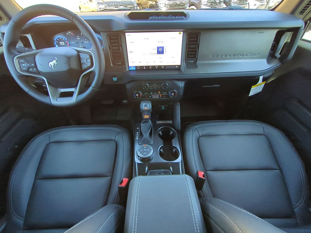 2025 Shadow Black 2025 Ford Bronco Big Bend 4WD 2.3L EcoBoost I-4 12" LCD Productivity Touchscreen, Auto Emergency Braking, Auto LED Headlights, Backup Camera, Off Road Package, Pre Collision Assist w/ AEB, Push Button Start, Remote Start, Skid Plate Package, 4D Sport Utility, 2.3L EcoBoost I-4, 4WD, 4.46 Final Drive Ratio w/Rear Locking Differential, Auxiliary Switches, Black Diamond Package, Carbonized Gray Molded-In-Color Hard Top, Equipment Group 222A Mid Package, Hard Top Sound Deadening Headliner, LED Fog Lamps, Powder Coated Steel Front & Rear Bumpers, Rear-Window Defroster & Washer, Rock Rails, Trailer Tow Package (DIO), Washout Capable Rubberized Flooring, Wheels: 17" Black High Gloss Painted Aluminum. Black Diamond Package (4.46 Final Drive Ratio w/Rear Locking Differential, Auxiliary Switches, LED Fog Lamps, Powder Coated Steel Front & Rear Bumpers, Rock Rails, Washout Capable Rubberized Flooring, and Wheels: 17" Black High Gloss Painted Aluminum), Equipment Group 222A Mid Package (Connected Navigation), Trailer Tow Package (DIO), 4D Sport Utility, 2.3L EcoBoost I-4, 4WD, Carbonized Gray Molded-In-Color Hard Top, Hard Top Sound Deadening Headliner, Rear-Window Defroster & Washer, 4-Wheel Disc Brakes, 7 Speakers, ABS brakes, Air Conditioning, Alloy wheels, AM/FM radio: SiriusXM with 360L, AM/FM Stereo, Auto High-beam Headlights, Brake assist, Cloth Bucket Seats, Compass, Delay-off headlights, Driver door bin, Driver vanity mirror, Dual front impact airbags, Dual front side impact airbags, Electronic Stability Control, Emergency communication system: 911 Assist, Exterior Parking Camera Rear, Front anti-roll bar, Front Bucket Seats, Front Center Armrest, Front reading lights, Front wheel independent suspension, Fully automatic headlights, Heated door mirrors, Illuminated entry, Integrated roll-over protection, Leather Shift Knob, Low tire pressure warning, Occupant sensing airbag, Outside temperature display, Overhead airbag, Overhead console, Panic alarm, Passenger door bin, Passenger vanity mirror, Power door mirrors, Power steering, Power windows, Radio data system, Remote keyless entry, Security system, SiriusXM w/360L, Speed control, Split folding rear seat, Steering wheel mounted audio controls, SYNC 4, Tachometer, Telescoping steering wheel, Tilt steering wheel, Traction control, Trip computer, Variably intermittent wipers, and Wheels: 17" Carbonized Gray-Painted Aluminum Courtesy Ford and Lincoln of Rome 101 Hwy 411 E Rome, Ga 30161 ROMEFORDLINC.COM 706.235.4453.