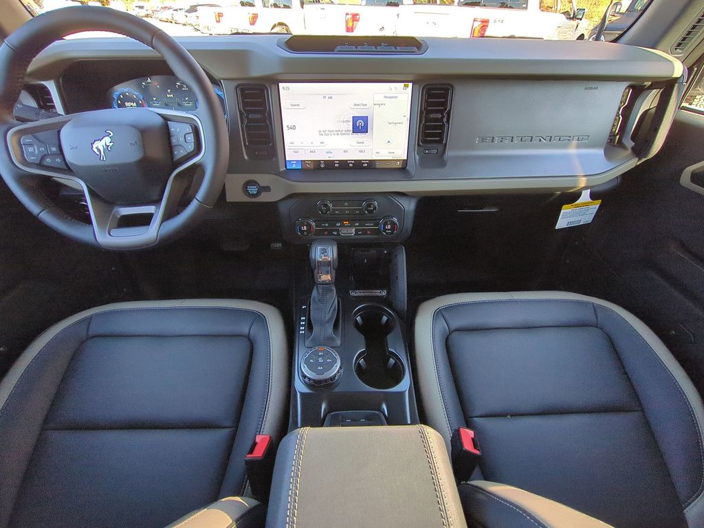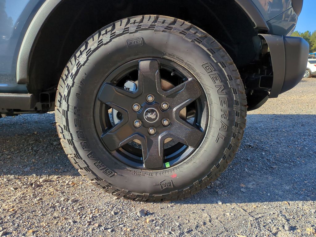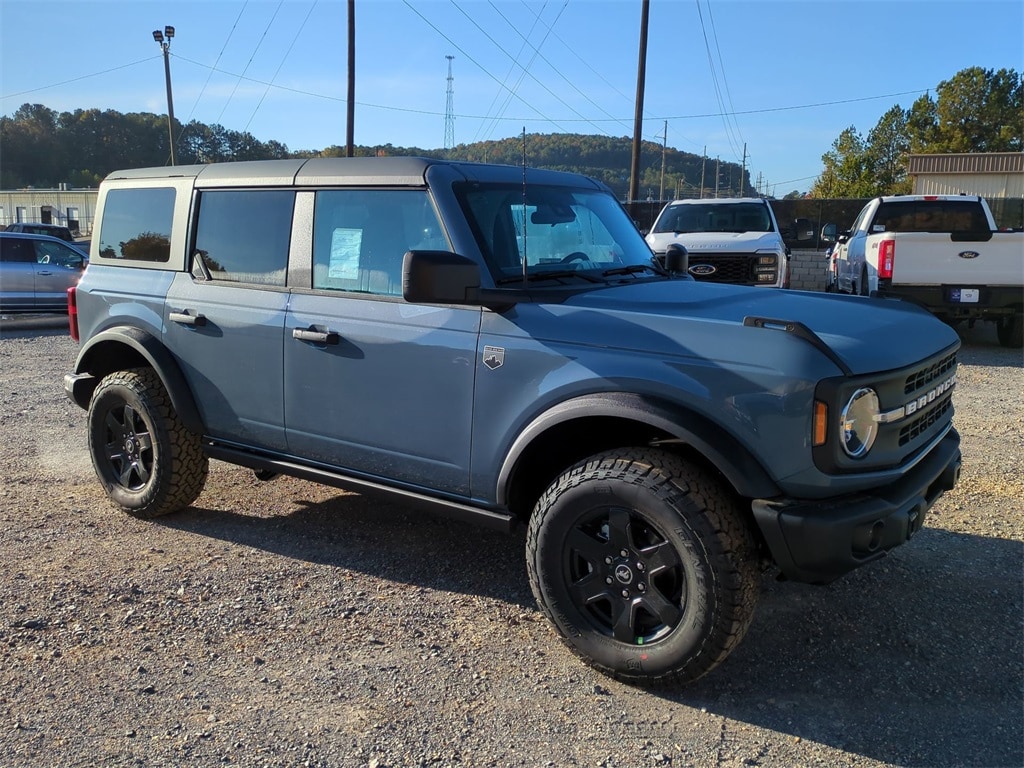 2025 Azure Gray Metallic Tri-Coat 2025 Ford Bronco Big Bend 4WD 2.3L EcoBoost I-4 12" LCD Productivity Touchscreen, Auto Emergency Braking, Auto LED Headlights, Backup Camera, Hill Start Assist, Off Road Package, Pre Collision Assist w/ AEB, Push Button Start, Remote Start, Side-Wind Stabilization, Skid Plate Package, 4D Sport Utility, 2.3L EcoBoost I-4, 4WD, 4.46 Final Drive Ratio w/Rear Locking Differential, Auxiliary Switches, Black Diamond Package, Equipment Group 222A Mid Package, LED Fog Lamps, Powder Coated Steel Front & Rear Bumpers, Rock Rails, Trailer Tow Package (DIO), Washout Capable Rubberized Flooring, Wheels: 17" Black High Gloss Painted Aluminum. Black Diamond Package (4.46 Final Drive Ratio w/Rear Locking Differential, Auxiliary Switches, LED Fog Lamps, Powder Coated Steel Front & Rear Bumpers, Rock Rails, Washout Capable Rubberized Flooring, and Wheels: 17" Black High Gloss Painted Aluminum), Equipment Group 222A Mid Package (Connected Navigation), Trailer Tow Package (DIO), 4D Sport Utility, 2.3L EcoBoost I-4, 4WD, 4-Wheel Disc Brakes, 7 Speakers, ABS brakes, Air Conditioning, Alloy wheels, AM/FM radio: SiriusXM with 360L, AM/FM Stereo, Auto High-beam Headlights, Brake assist, Cloth Bucket Seats, Compass, Delay-off headlights, Driver door bin, Driver vanity mirror, Dual front impact airbags, Dual front side impact airbags, Electronic Stability Control, Emergency communication system: 911 Assist, Exterior Parking Camera Rear, Front anti-roll bar, Front Bucket Seats, Front Center Armrest, Front reading lights, Front wheel independent suspension, Fully automatic headlights, Heated door mirrors, Illuminated entry, Integrated roll-over protection, Leather Shift Knob, Low tire pressure warning, Occupant sensing airbag, Outside temperature display, Overhead airbag, Overhead console, Panic alarm, Passenger door bin, Passenger vanity mirror, Power door mirrors, Power steering, Power windows, Radio data system, Remote keyless entry, Security system, SiriusXM w/360L, Speed control, Split folding rear seat, Steering wheel mounted audio controls, SYNC 4, Tachometer, Telescoping steering wheel, Tilt steering wheel, Traction control, Trip computer, Variably intermittent wipers, and Wheels: 17" Carbonized Gray-Painted Aluminum Courtesy Ford and Lincoln of Rome 101 Hwy 411 E Rome, Ga 30161 ROMEFORDLINC.COM 706.235.4453.