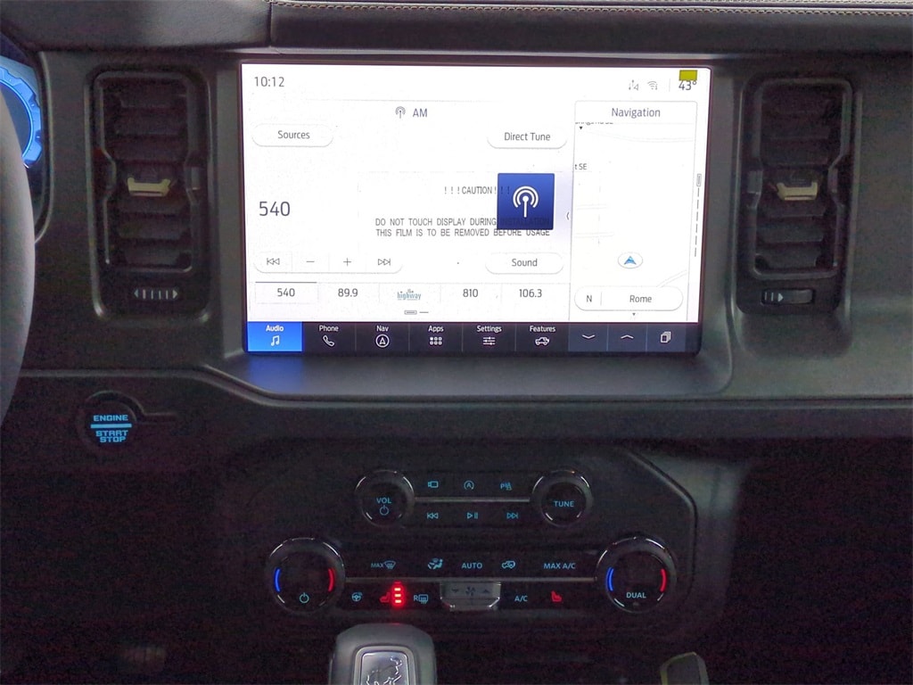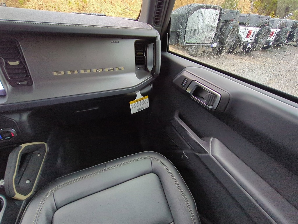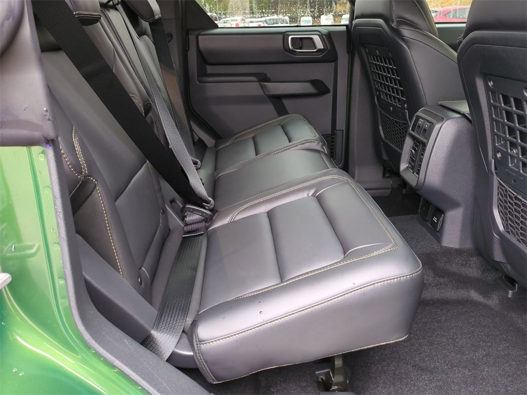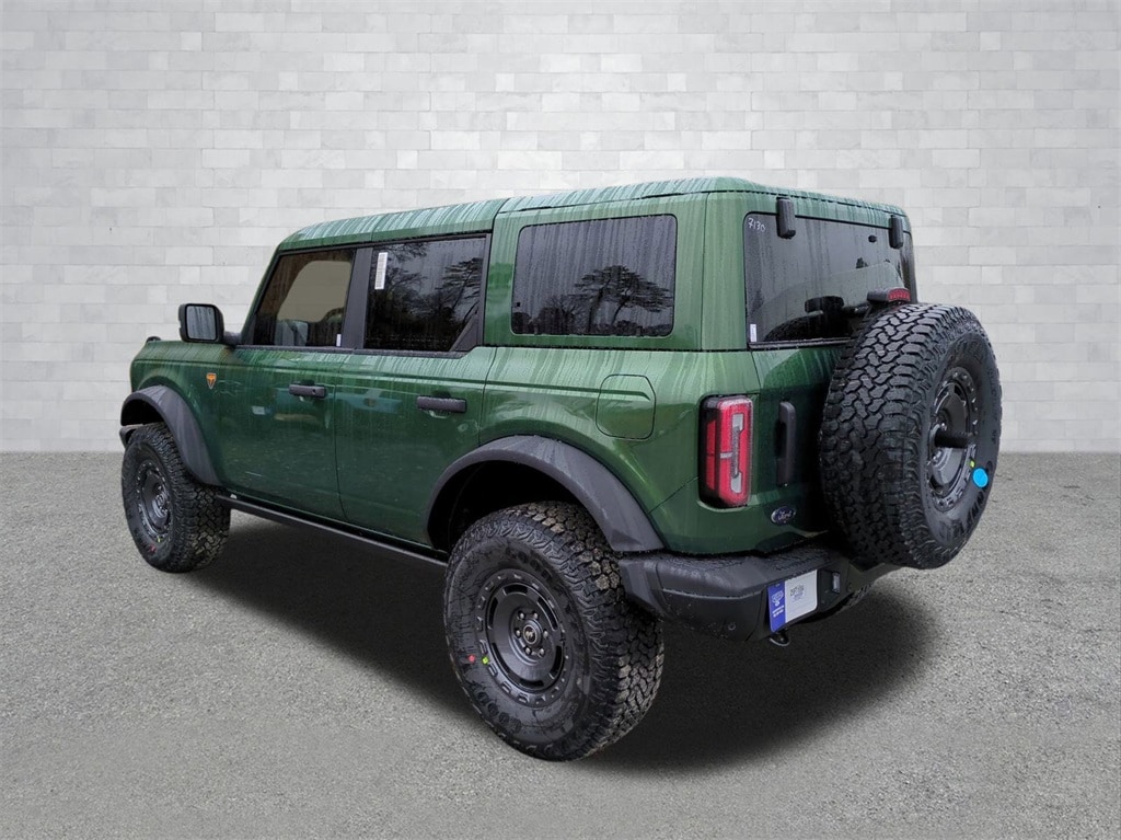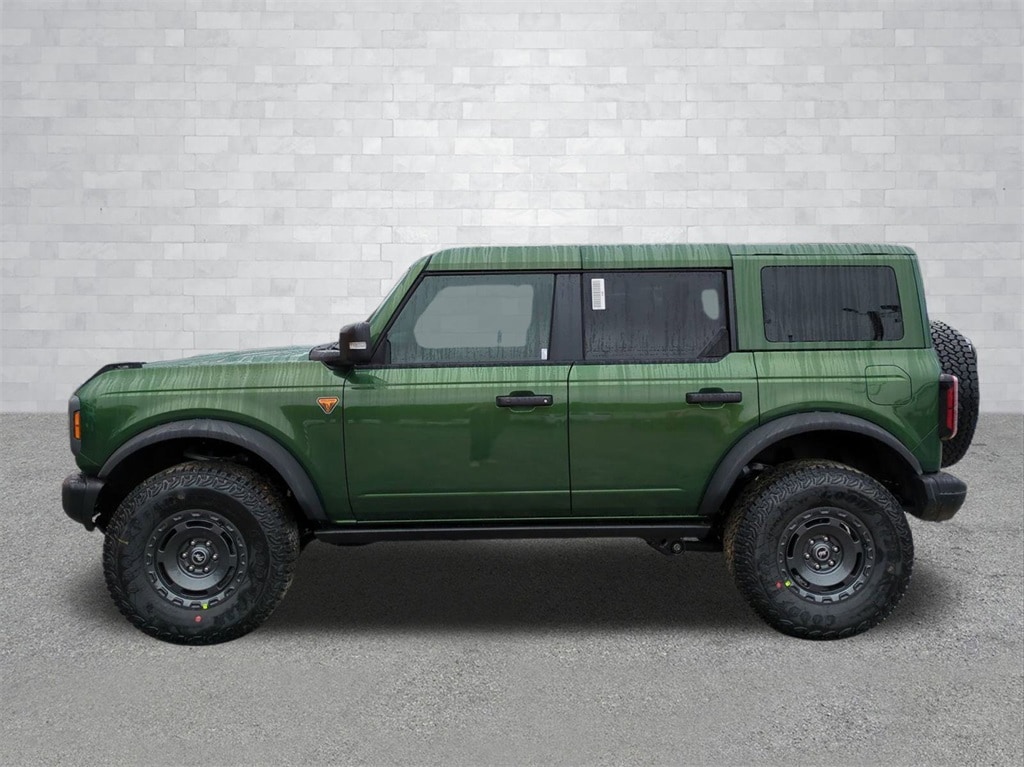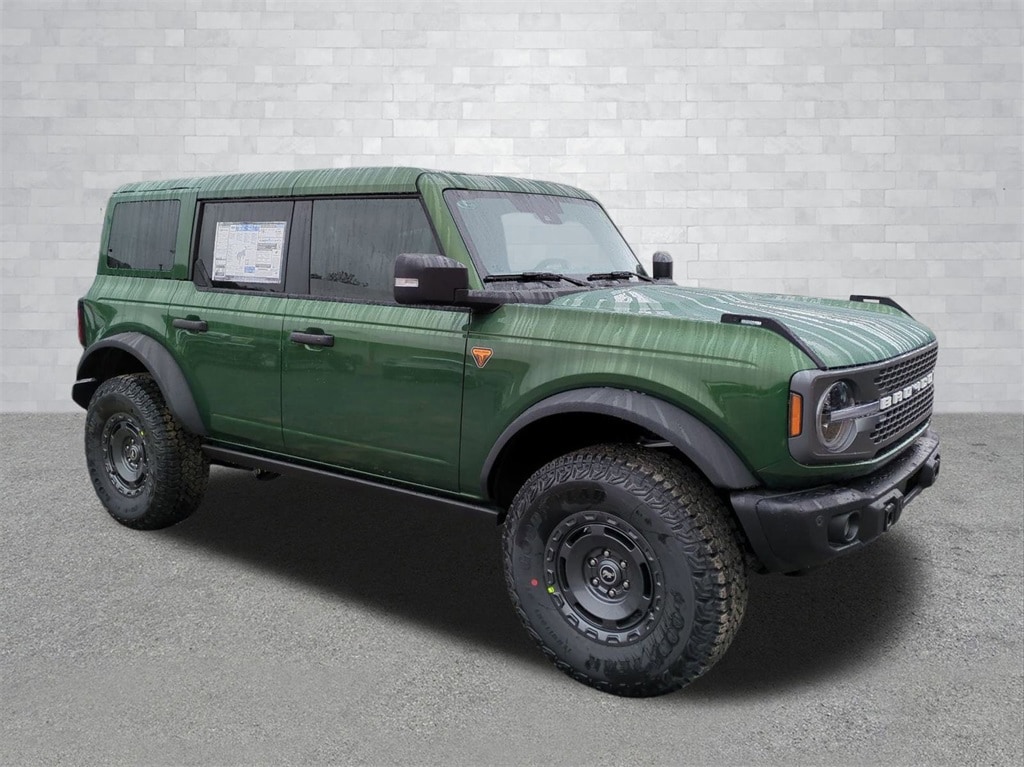 2025 Eruption Green Metallic 2025 Ford Bronco Badlands 4WD 2.7L EcoBoost V6 4-Wheel Disc Brakes, 4.7 Axle Ratio, 7 Speakers, ABS brakes, Air Conditioning, Alloy wheels, AM/FM radio: SiriusXM with 360L, AM/FM Stereo, Auto High-beam Headlights, Auto-dimming Rear-View mirror, Brake assist, Compass, Delay-off headlights, Driver door bin, Driver vanity mirror, Dual front impact airbags, Dual front side impact airbags, Electronic Stability Control, Emergency communication system: 911 Assist, Exterior Parking Camera Rear, Front anti-roll bar, Front Bucket Seats, Front Center Armrest, Front fog lights, Front reading lights, Front wheel independent suspension, Fully automatic headlights, Heated door mirrors, Heated front seats, Heated steering wheel, Illuminated entry, Integrated roll-over protection, Internet access capable: FordPass Connect, Leather Shift Knob, Low tire pressure warning, Marine Grade Vinyl Heated Bucket Seats, Occupant sensing airbag, Outside temperature display, Overhead airbag, Overhead console, Panic alarm, Passenger door bin, Passenger vanity mirror, Power door mirrors, Power steering, Power windows, Radio data system, Remote keyless entry, Security system, SiriusXM w/360L, Speed control, Split folding rear seat, Steering wheel mounted audio controls, SYNC 4, Tachometer, Telescoping steering wheel, Tilt steering wheel, Traction control, Trip computer, Variably intermittent wipers, Voltmeter, and Wheels: 17" Carbonized Gray-Painted Aluminum Courtesy Ford and Lincoln of Rome 101 Hwy 411 E Rome, Ga 30161 ROMEFORDLINC.COM 706.235.4453.