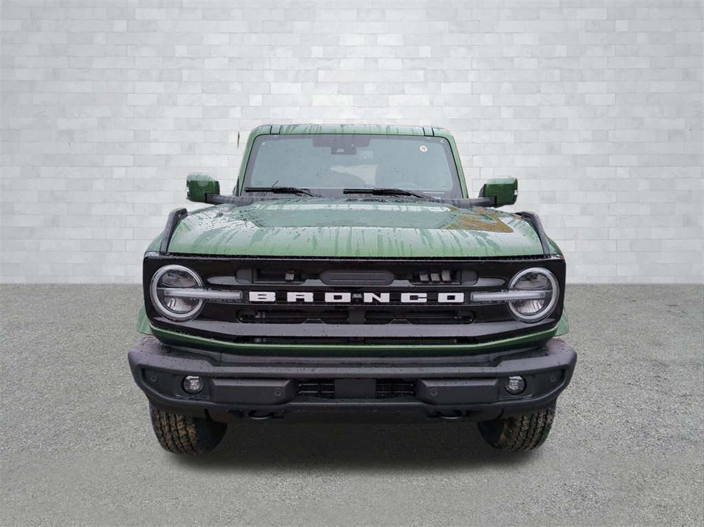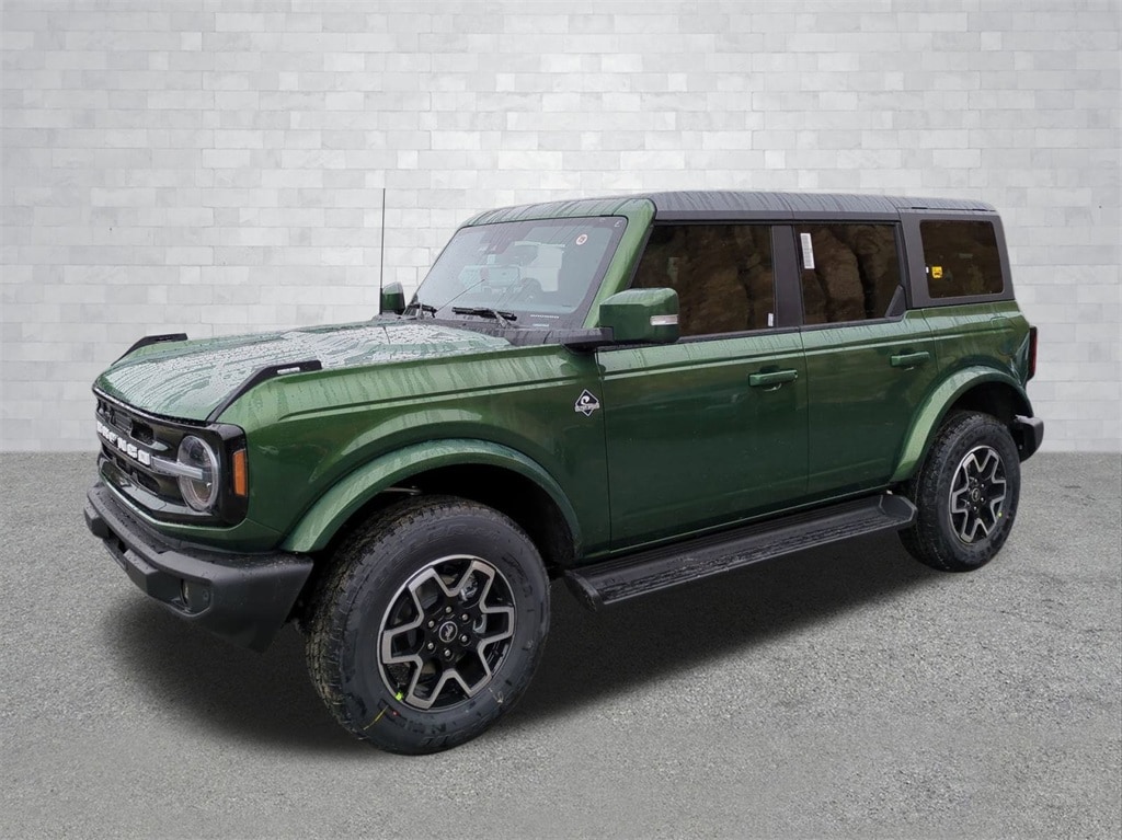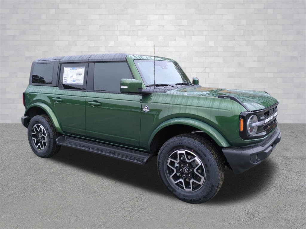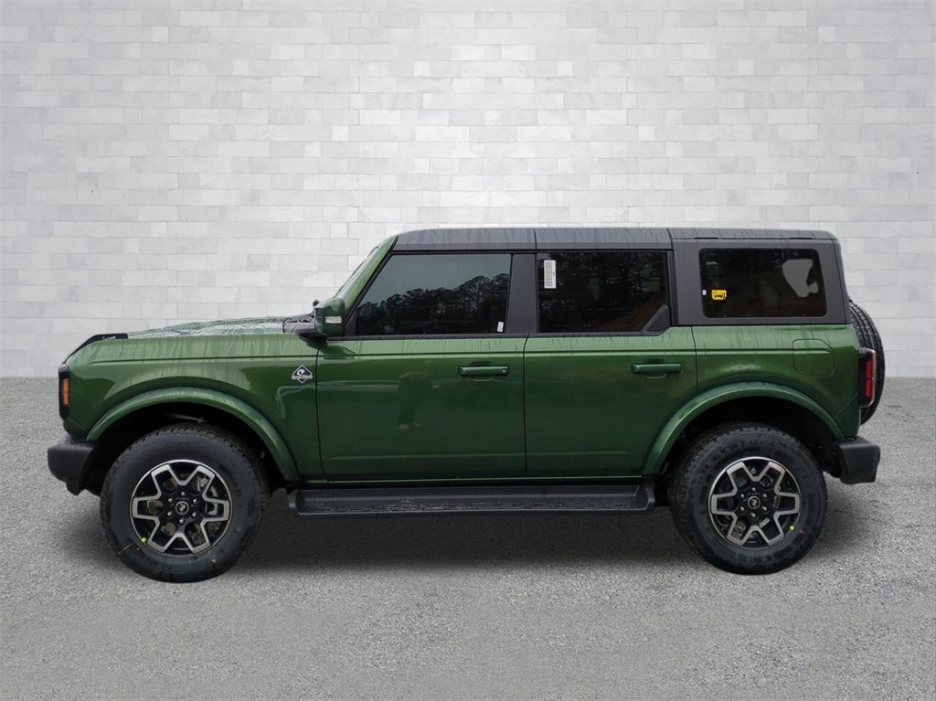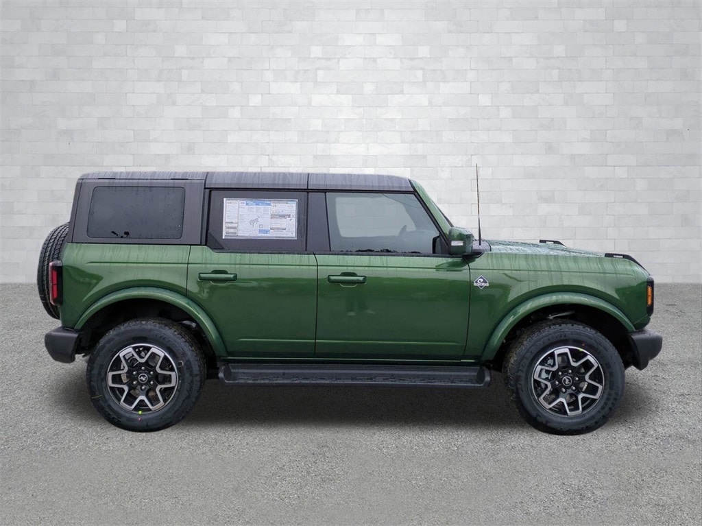 2025 Eruption Green Metallic 2025 Ford Bronco Outer Banks 4WD 2.3L EcoBoost I-4 18" Bright Machined Aluminum Wheels, 3.73 Axle Ratio, 4-Wheel Disc Brakes, 7 Speakers, ABS brakes, Air Conditioning, Alloy wheels, AM/FM radio: SiriusXM with 360L, AM/FM Stereo, Auto High-beam Headlights, Auto-dimming Rear-View mirror, Automatic temperature control, Brake assist, Compass, Connected Navigation, Delay-off headlights, Driver door bin, Driver vanity mirror, Dual front impact airbags, Dual front side impact airbags, Electronic Stability Control, Emergency communication system: 911 Assist, Exterior Parking Camera Rear, Front anti-roll bar, Front Bucket Seats, Front Center Armrest, Front dual zone A/C, Front fog lights, Front reading lights, Front wheel independent suspension, Fully automatic headlights, Heated door mirrors, Heated front seats, Heated Leather-Trimmed/Vinyl Bucket Seats, Heated steering wheel, Illuminated entry, Integrated roll-over protection, Internet access capable: FordPass Connect, Leather Shift Knob, Low tire pressure warning, Navigation system: Connected Navigation, Occupant sensing airbag, Outside temperature display, Overhead airbag, Overhead console, Panic alarm, Passenger door bin, Passenger vanity mirror, Power door mirrors, Power driver seat, Power passenger seat, Power steering, Power windows, Radio data system, Rear seat center armrest, Remote keyless entry, Security system, SiriusXM w/360L, Speed control, Split folding rear seat, Steering wheel mounted audio controls, SYNC 4, Tachometer, Telescoping steering wheel, Tilt steering wheel, Traction control, Trip computer, Variably intermittent wipers, and Voltmeter Courtesy Ford and Lincoln of Rome 101 Hwy 411 E Rome, Ga 30161 ROMEFORDLINC.COM 706.235.4453.