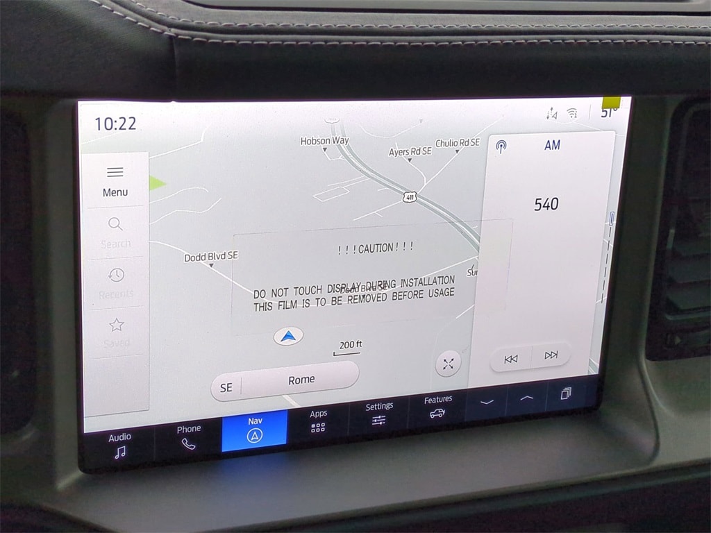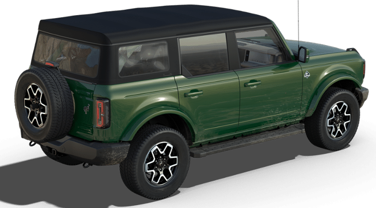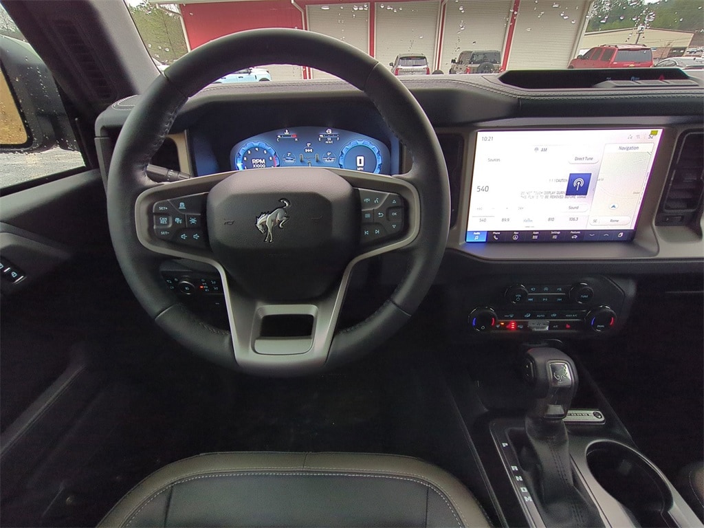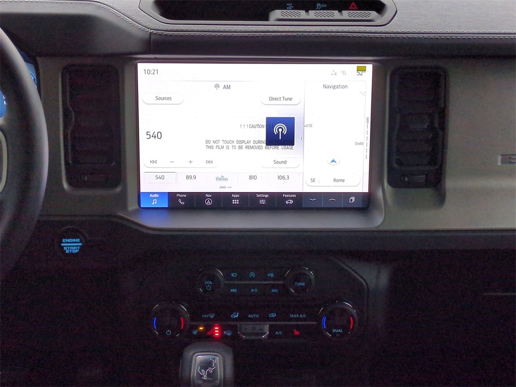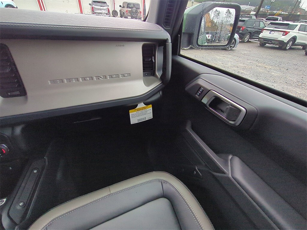 2025 Eruption Green Metallic 2025 Ford Bronco Outer Banks 4WD 2.3L EcoBoost I-4 18" Bright Machined Aluminum Wheels, 3.73 Axle Ratio, 4-Wheel Disc Brakes, 7 Speakers, ABS brakes, Air Conditioning, Alloy wheels, AM/FM radio: SiriusXM with 360L, AM/FM Stereo, Auto High-beam Headlights, Auto-dimming Rear-View mirror, Automatic temperature control, Brake assist, Compass, Connected Navigation, Delay-off headlights, Driver door bin, Driver vanity mirror, Dual front impact airbags, Dual front side impact airbags, Electronic Stability Control, Emergency communication system: 911 Assist, Exterior Parking Camera Rear, Front anti-roll bar, Front Bucket Seats, Front Center Armrest, Front dual zone A/C, Front fog lights, Front reading lights, Front wheel independent suspension, Fully automatic headlights, Heated door mirrors, Heated front seats, Heated Leather-Trimmed/Vinyl Bucket Seats, Heated steering wheel, Illuminated entry, Integrated roll-over protection, Internet access capable: FordPass Connect, Leather Shift Knob, Low tire pressure warning, Navigation system: Connected Navigation, Occupant sensing airbag, Outside temperature display, Overhead airbag, Overhead console, Panic alarm, Passenger door bin, Passenger vanity mirror, Power door mirrors, Power driver seat, Power passenger seat, Power steering, Power windows, Radio data system, Rear seat center armrest, Remote keyless entry, Security system, SiriusXM w/360L, Speed control, Split folding rear seat, Steering wheel mounted audio controls, SYNC 4, Tachometer, Telescoping steering wheel, Tilt steering wheel, Traction control, Trip computer, Variably intermittent wipers, and Voltmeter Courtesy Ford and Lincoln of Rome 101 Hwy 411 E Rome, Ga 30161 ROMEFORDLINC.COM 706.235.4453.
