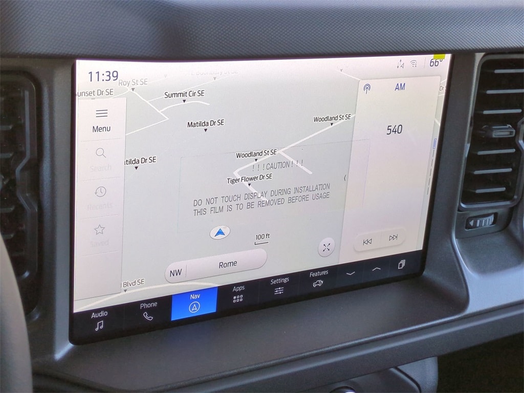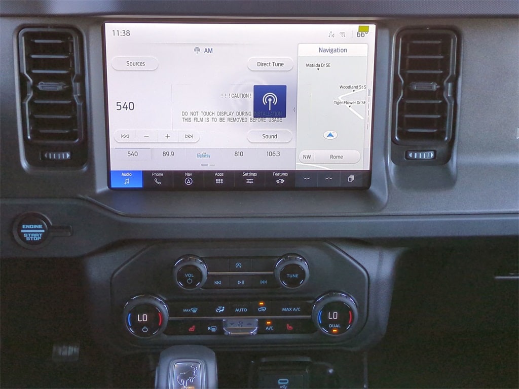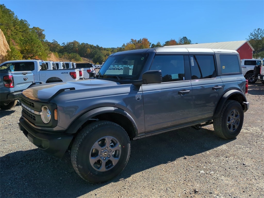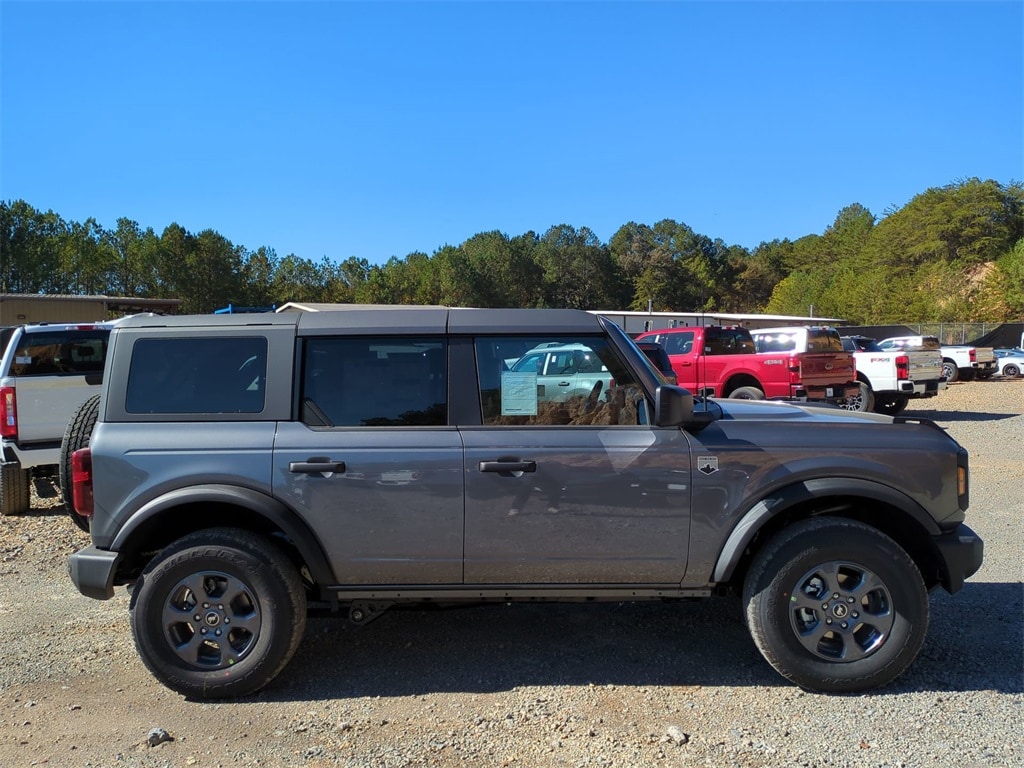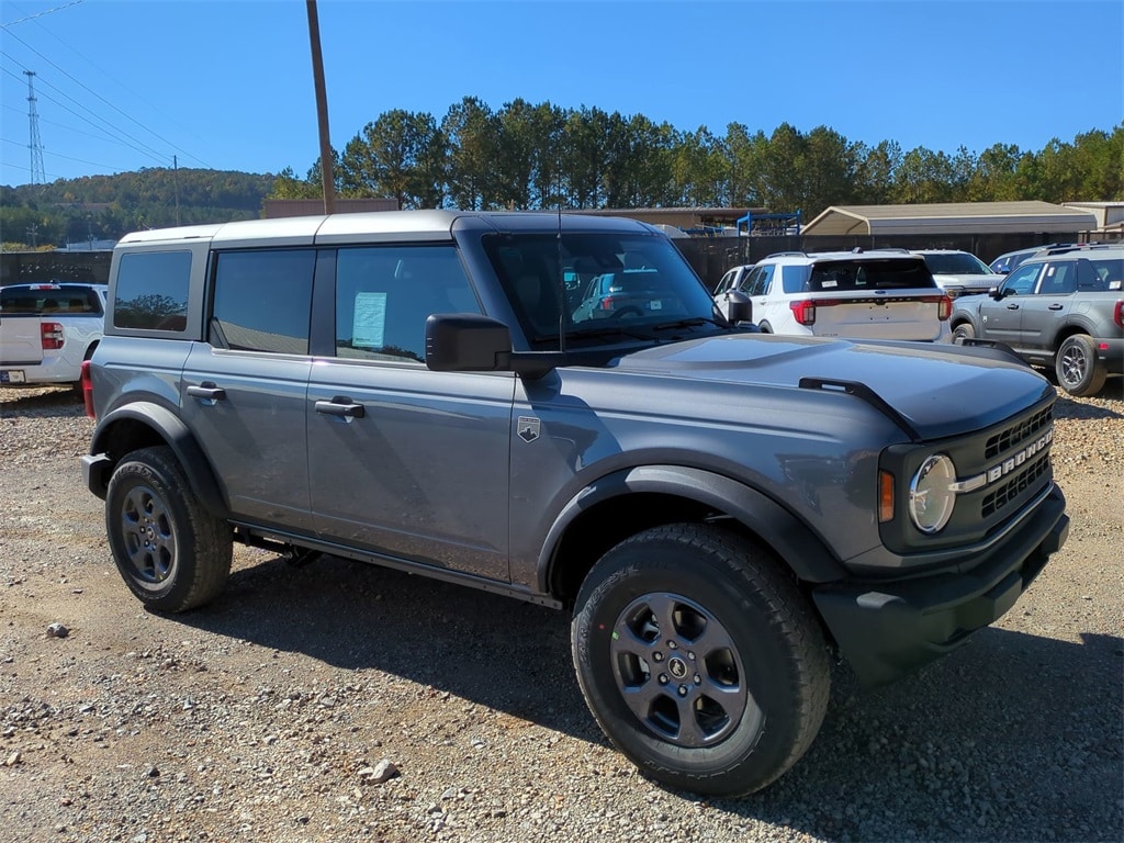 2025 Carbonized Gray Metallic 2025 Ford Bronco Big Bend 4WD 2.3L EcoBoost I-4 12" LCD Productivity Touchscreen, Auto Emergency Braking, Auto LED Headlights, Backup Camera, Hill Start Assist, Power Mirror Package, Power Package, Pre Collision Assist w/ AEB, Remote Start, 4D Sport Utility, 2.3L EcoBoost I-4, 4WD, 2-Door Intelligent Access w/Lock/Unlock, Ambient Footwell Lighting, Connected Navigation, Dr & Pass Illuminated Sliding Visor Vanity Mirrors, Dual Smart Charging USB Ports, Dual-Zone Electronic Automatic Temperature Control, Equipment Group 222A Mid Package, Front Row Heated Seats, Heated door mirrors, Power door mirrors, Power Outlet - Back Side of Center Floor Console, Rear Parking Sensors. Equipment Group 222A Mid Package (2-Door Intelligent Access w/Lock/Unlock, Ambient Footwell Lighting, Connected Navigation, Dr & Pass Illuminated Sliding Visor Vanity Mirrors, Dual Smart Charging USB Ports, Dual-Zone Electronic Automatic Temperature Control, Front Row Heated Seats, Power Outlet - Back Side of Center Floor Console, and Rear Parking Sensors), 4D Sport Utility, 2.3L EcoBoost I-4, 4WD, Heated door mirrors, Power door mirrors, 4-Wheel Disc Brakes, 4.46 Axle Ratio, 7 Speakers, ABS brakes, Air Conditioning, Alloy wheels, AM/FM radio: SiriusXM with 360L, AM/FM Stereo, Auto High-beam Headlights, Brake assist, Cloth Bucket Seats, Compass, Delay-off headlights, Driver door bin, Driver vanity mirror, Dual front impact airbags, Dual front side impact airbags, Electronic Stability Control, Emergency communication system: 911 Assist, Exterior Parking Camera Rear, Front anti-roll bar, Front Bucket Seats, Front Center Armrest, Front reading lights, Front wheel independent suspension, Fully automatic headlights, Illuminated entry, Integrated roll-over protection, Leather Shift Knob, Low tire pressure warning, Occupant sensing airbag, Outside temperature display, Overhead airbag, Overhead console, Panic alarm, Passenger door bin, Passenger vanity mirror, Power steering, Power windows, Radio data system, Remote keyless entry, Security system, SiriusXM w/360L, Speed control, Split folding rear seat, Steering wheel mounted audio controls, SYNC 4, Tachometer, Telescoping steering wheel, Tilt steering wheel, Traction control, Trip computer, Variably intermittent wipers, and Wheels: 17" Carbonized Gray-Painted Aluminum Courtesy Ford and Lincoln of Rome 101 Hwy 411 E Rome, Ga 30161 ROMEFORDLINC.COM 706.235.4453.