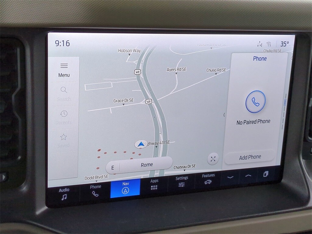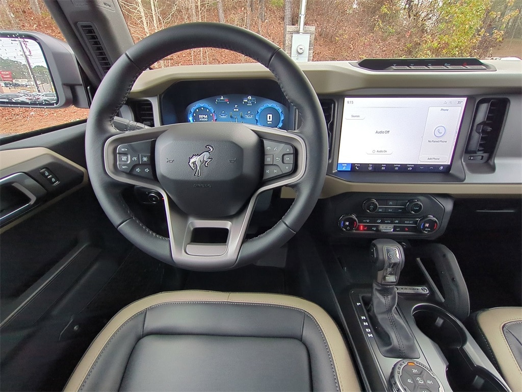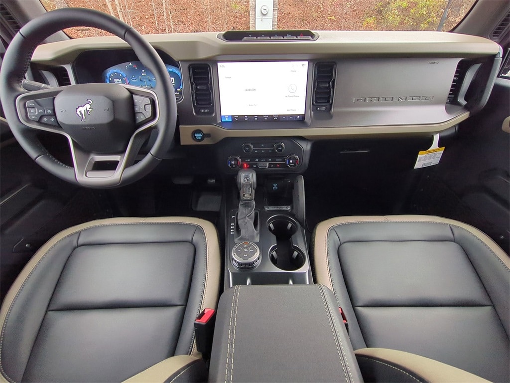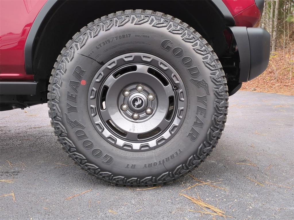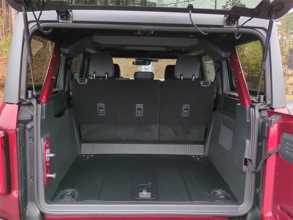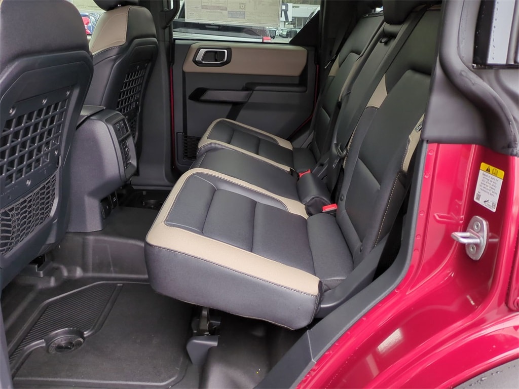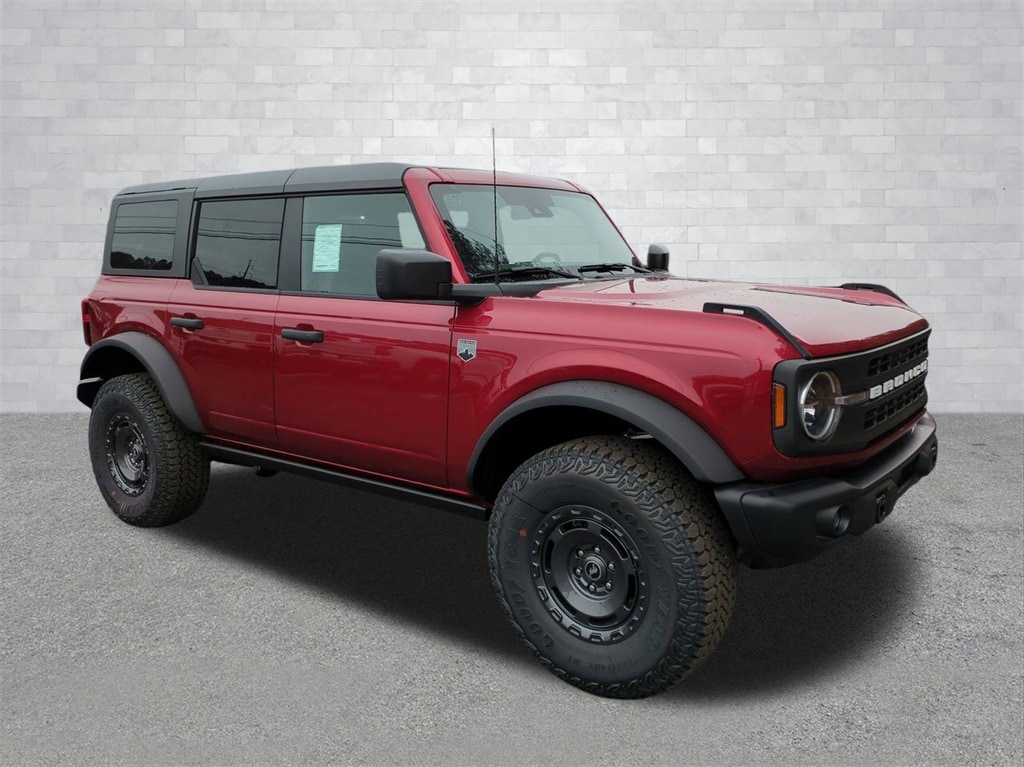 2025 Ruby Red Metallic Tinted Clearcoat 2025 Ford Bronco Big Bend 4WD 2.3L EcoBoost I-4 12" LCD Productivity Touchscreen, Auto Emergency Braking, Auto LED Headlights, Backup Camera, Hill Start Assist, Pre Collision Assist w/ AEB, Push Button Start, Remote Start, 4D Sport Utility, 2.3L EcoBoost I-4, 4WD, 2-Door Intelligent Access w/Lock/Unlock, 4.46 Final Drive Ratio w/Rear Locking Differential, Ambient Footwell Lighting, Auxiliary Switches, Black Diamond Package, Carbonized Gray Molded-In-Color Hard Top, Connected Navigation, Dr & Pass Illuminated Sliding Visor Vanity Mirrors, Dual Smart Charging USB Ports, Dual-Zone Electronic Automatic Temperature Control, Equipment Group 222A Mid Package, Front Row Heated Seats, Hard Top Sound Deadening Headliner, High Clearance Fender Flares, High Clearance Suspension, LED Fog Lamps, Position-Sensitive Bilstein Shock Absorbers, Powder Coated Steel Front & Rear Bumpers, Power Outlet - Back Side of Center Floor Console, Rear Parking Sensors, Rear-Window Defroster & Washer, Rock Rails, Sasquatch Package, Washout Capable Rubberized Flooring, Wheels: 17" Black High Gloss Painted Aluminum, Wheels: 17" Carbonized Gray Painted Aluminum. Black Diamond Package (4.46 Final Drive Ratio w/Rear Locking Differential, Auxiliary Switches, LED Fog Lamps, Powder Coated Steel Front & Rear Bumpers, Rock Rails, Washout Capable Rubberized Flooring, and Wheels: 17" Black High Gloss Painted Aluminum), Equipment Group 222A Mid Package (2-Door Intelligent Access w/Lock/Unlock, Ambient Footwell Lighting, Connected Navigation, Dr & Pass Illuminated Sliding Visor Vanity Mirrors, Dual Smart Charging USB Ports, Dual-Zone Electronic Automatic Temperature Control, Front Row Heated Seats, Power Outlet - Back Side of Center Floor Console, and Rear Parking Sensors), Sasquatch Package (High Clearance Fender Flares, High Clearance Suspension, Position-Sensitive Bilstein Shock Absorbers, and Wheels: 17" Carbonized Gray Painted Aluminum), 4D Sport Utility, 2.3L EcoBoost I-4, 4WD, Carbonized Gray Molded-In-Color Hard Top, Hard Top Sound Deadening Headliner, Rear-Window Defroster & Washer, 4-Wheel Disc Brakes, 7 Speakers, ABS brakes, Air Conditioning, Alloy wheels, AM/FM radio: SiriusXM with 360L, AM/FM Stereo, Auto High-beam Headlights, Brake assist, Cloth Bucket Seats, Compass, Delay-off headlights, Driver door bin, Driver vanity mirror, Dual front impact airbags, Dual front side impact airbags, Electronic Stability Control, Emergency communication system: 911 Assist, Exterior Parking Camera Rear, Front anti-roll bar, Front Bucket Seats, Front Center Armrest, Front reading lights, Front wheel independent suspension, Fully automatic headlights, Heated door mirrors, Illuminated entry, Integrated roll-over protection, Leather Shift Knob, Low tire pressure warning, Occupant sensing airbag, Outside temperature display, Overhead airbag, Overhead console, Panic alarm, Passenger door bin, Passenger vanity mirror, Power door mirrors, Power steering, Power windows, Radio data system, Remote keyless entry, Security system, SiriusXM w/360L, Speed control, Split folding rear seat, Steering wheel mounted audio controls, SYNC 4, Tachometer, Telescoping steering wheel, Tilt steering wheel, Traction control, Trip computer, Variably intermittent wipers, and Wheels: 17" Carbonized Gray-Painted Aluminum Courtesy Ford and Lincoln of Rome 101 Hwy 411 E Rome, Ga 30161 ROMEFORDLINC.COM 706.235.4453.
