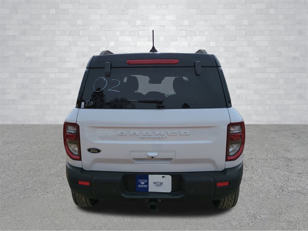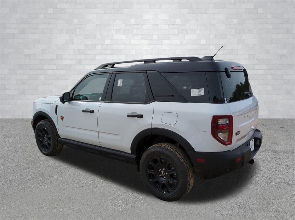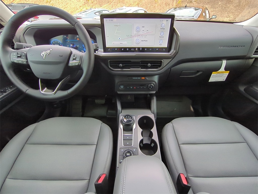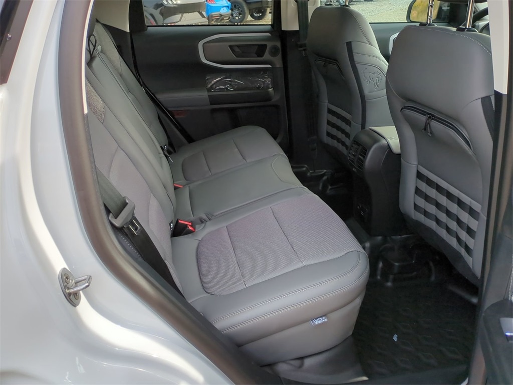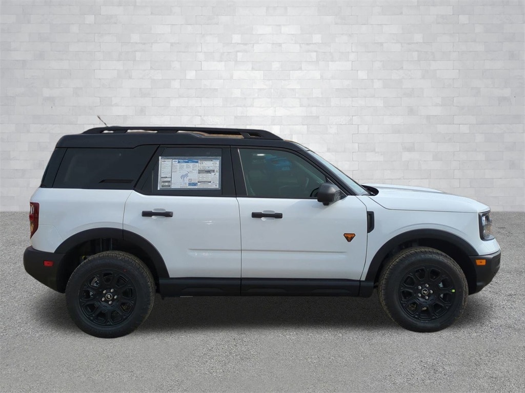 2025 Oxford White 2025 Ford Bronco Sport Badlands 4WD EcoBoost 2.0L I4 GTDi DOHC Turbocharged VCT 4-Wheel Disc Brakes, 6 Speakers, ABS brakes, Air Conditioning, Alloy wheels, AM/FM radio: SiriusXM, AM/FM Stereo, Auto High-beam Headlights, Auto-dimming Rear-View mirror, Automatic temperature control, Brake assist, Compass, Delay-off headlights, Driver door bin, Driver vanity mirror, Dual front impact airbags, Dual front side impact airbags, Electronic Stability Control, Emergency communication system: SYNC 4 911 Assist, Four wheel independent suspension, Front anti-roll bar, Front Bucket Seats, Front Center Armrest, Front fog lights, Front reading lights, Fully automatic headlights, Garage door transmitter, Heated door mirrors, Heated front seats, Heated steering wheel, Illuminated entry, Knee airbag, Leather Trimmed Front Bucket Seats, Low tire pressure warning, Memory seat, Occupant sensing airbag, Outside temperature display, Overhead airbag, Overhead console, Panic alarm, Passenger door bin, Passenger vanity mirror, Power door mirrors, Power driver seat, Power passenger seat, Power steering, Power windows, Radio data system, Rear anti-roll bar, Rear reading lights, Rear seat center armrest, Rear window defroster, Rear window wiper, Remote keyless entry, Security system, SiriusXM, Speed control, Speed-sensing steering, Speed-Sensitive Wipers, Split folding rear seat, Steering wheel mounted audio controls, SYNC 4 w/Enhanced Voice Recognition, Tachometer, Telescoping steering wheel, Tilt steering wheel, Traction control, Trip computer, Variably intermittent wipers, and Wheels: 17" Matte Black-Painted Aluminum Courtesy Ford and Lincoln of Rome 101 Hwy 411 E Rome, Ga 30161 ROMEFORDLINC.COM 706.235.4453.