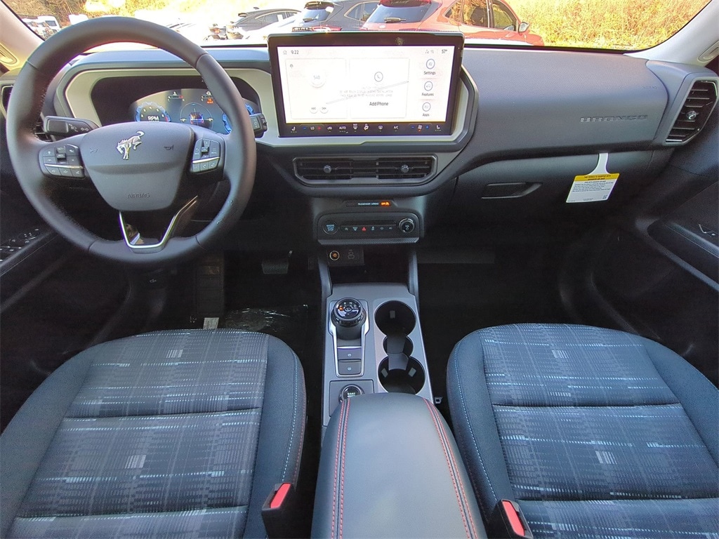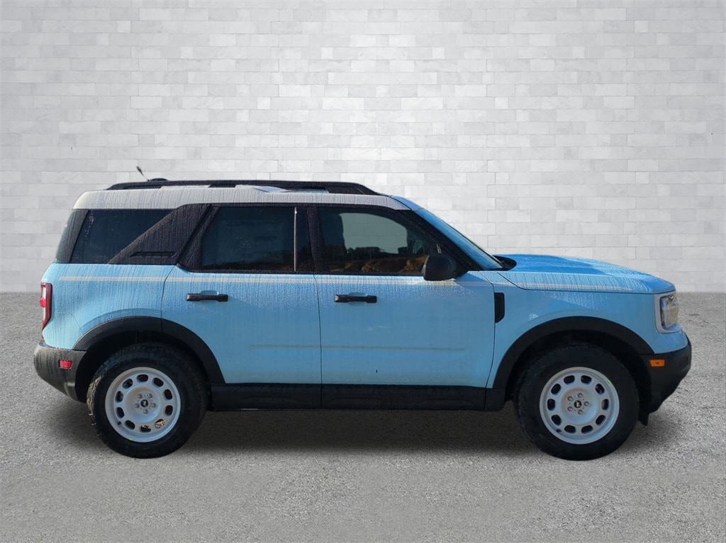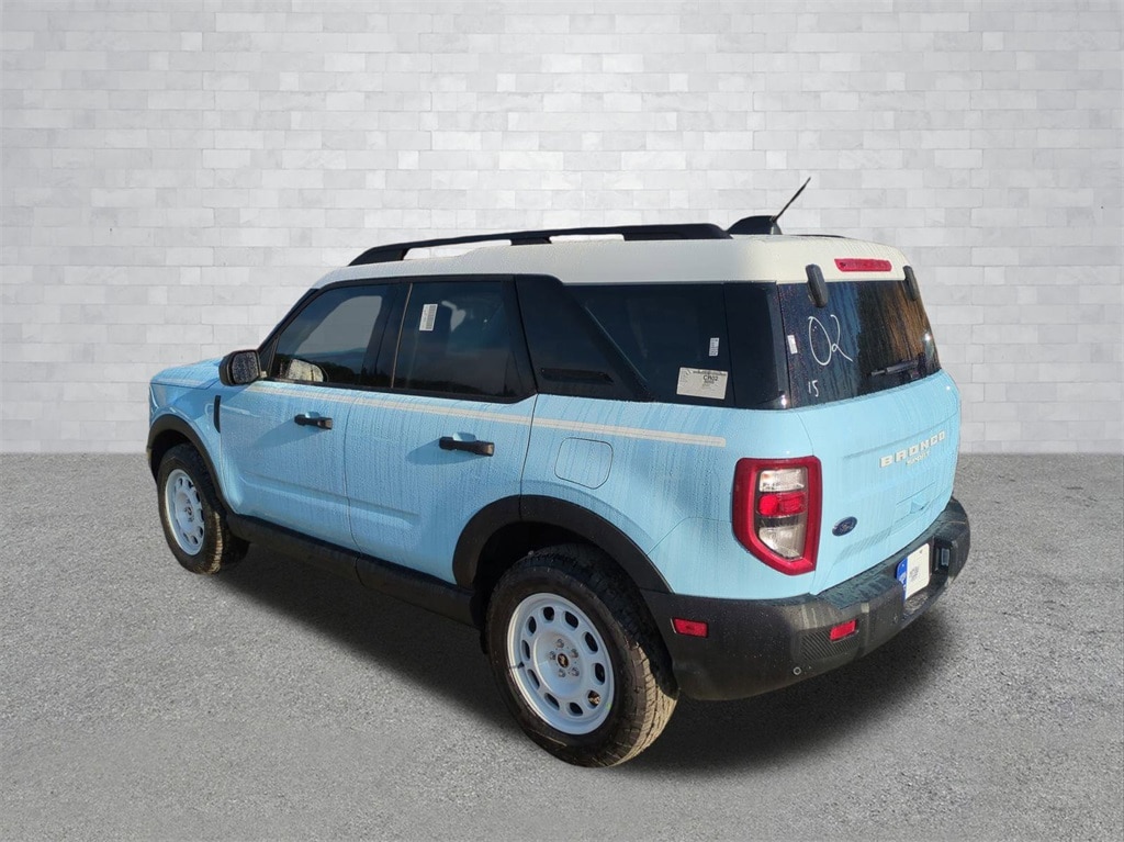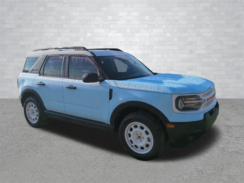 2025 Robins Egg Blue 2025 Ford Bronco Sport Heritage 4WD 1.5L EcoBoost Convenience Package (Front Driver/Passenger Seat Back Map Pockets, Heated 8-Way Power Driver's Seat, LED Fog Lamps, Premium Wrapped Steering Wheel, and Universal Garage Door Opener (UGDO)), Equipment Group 250A, 4-Wheel Disc Brakes, 6 Speakers, ABS brakes, Air Conditioning, Alloy wheels, AM/FM radio: SiriusXM, AM/FM Stereo, Auto High-beam Headlights, Automatic temperature control, Brake assist, Compass, Delay-off headlights, Driver door bin, Driver vanity mirror, Dual front impact airbags, Dual front side impact airbags, Electronic Stability Control, Emergency communication system: SYNC 4 911 Assist, Four wheel independent suspension, Front anti-roll bar, Front Bucket Seats, Front Center Armrest, Front reading lights, Fully automatic headlights, Heated door mirrors, Illuminated entry, Knee airbag, Low tire pressure warning, Occupant sensing airbag, Outside temperature display, Overhead airbag, Overhead console, Panic alarm, Passenger door bin, Passenger vanity mirror, Plaid Cloth Front Bucket Seats, Power door mirrors, Power Moonroof, Power steering, Power windows, Radio data system, Rear anti-roll bar, Rear Parking Sensors, Rear reading lights, Rear seat center armrest, Rear window defroster, Rear window wiper, Remote keyless entry, Security system, SiriusXM, Speed control, Speed-sensing steering, Speed-Sensitive Wipers, Split folding rear seat, Steering wheel mounted audio controls, SYNC 4 w/Enhanced Voice Recognition, Tachometer, Telescoping steering wheel, Tilt steering wheel, Traction control, Trip computer, Variably intermittent wipers, and Wheels: 17" Oxford White-Painted Aluminum Courtesy Ford and Lincoln of Rome 101 Hwy 411 E Rome, Ga 30161 ROMEFORDLINC.COM 706.235.4453.