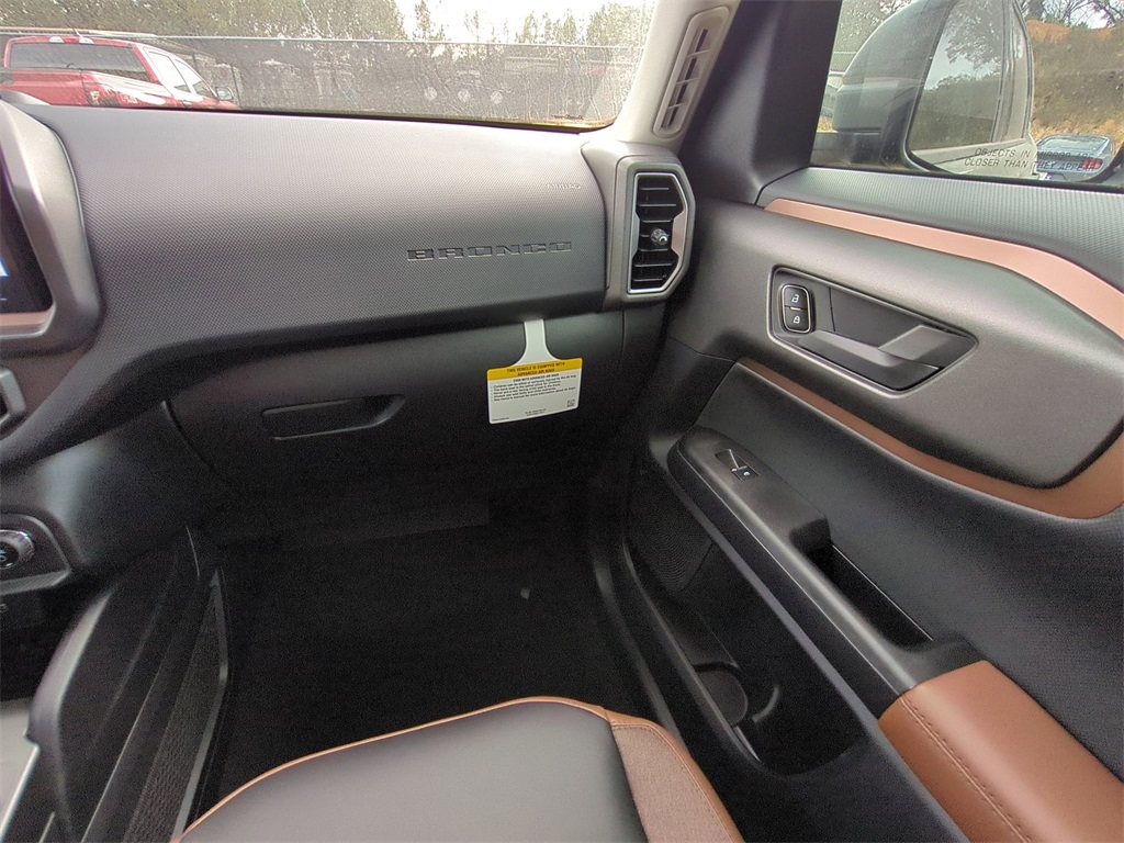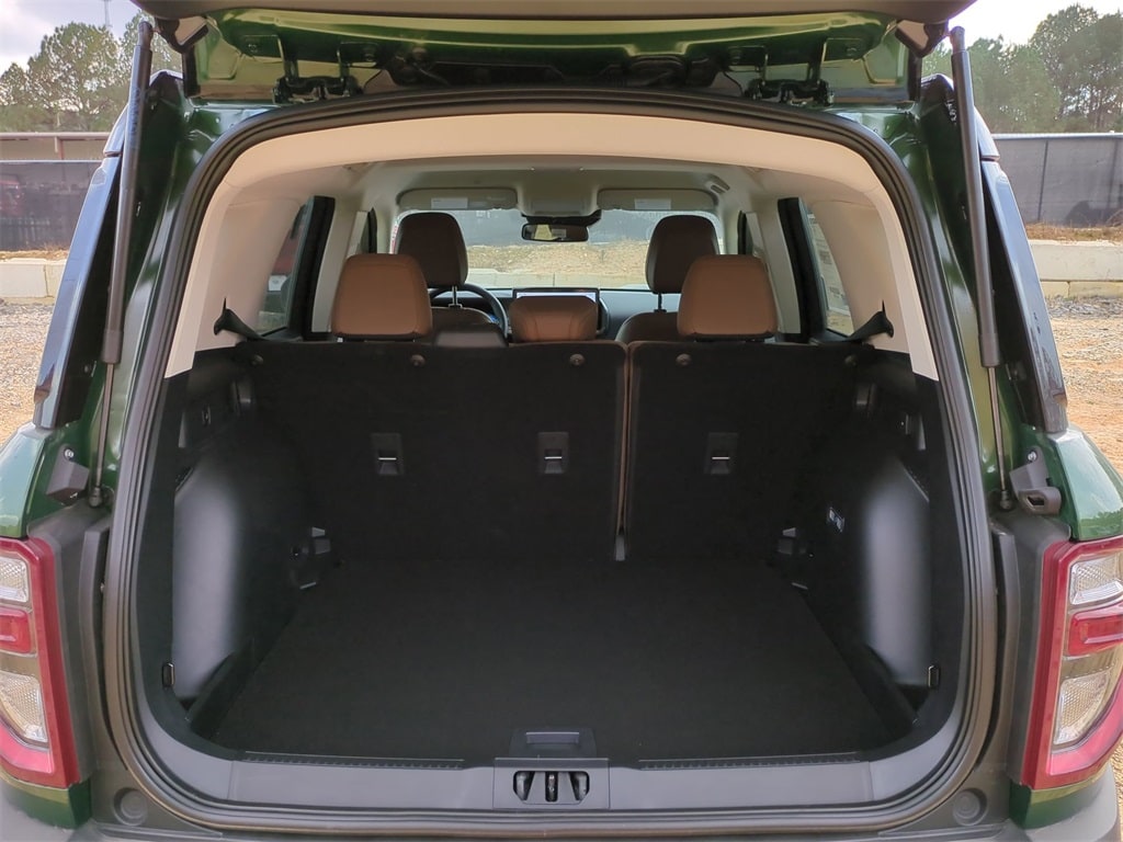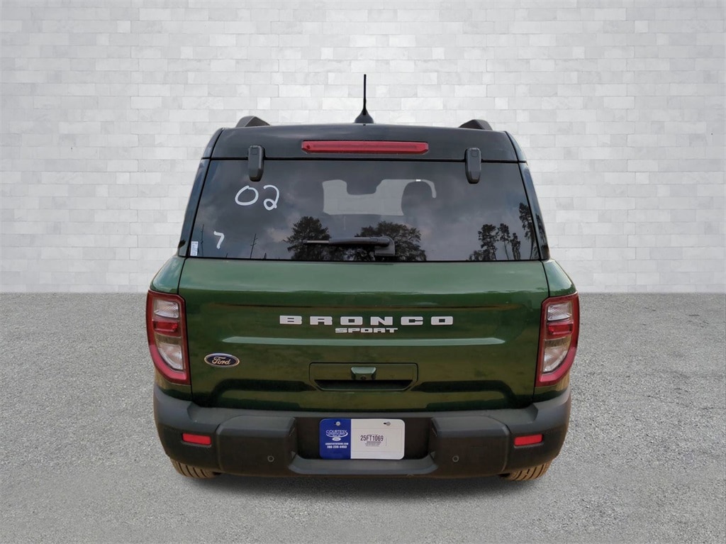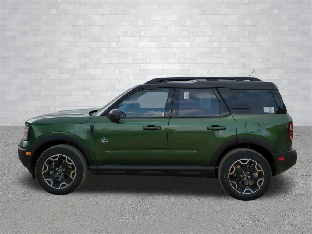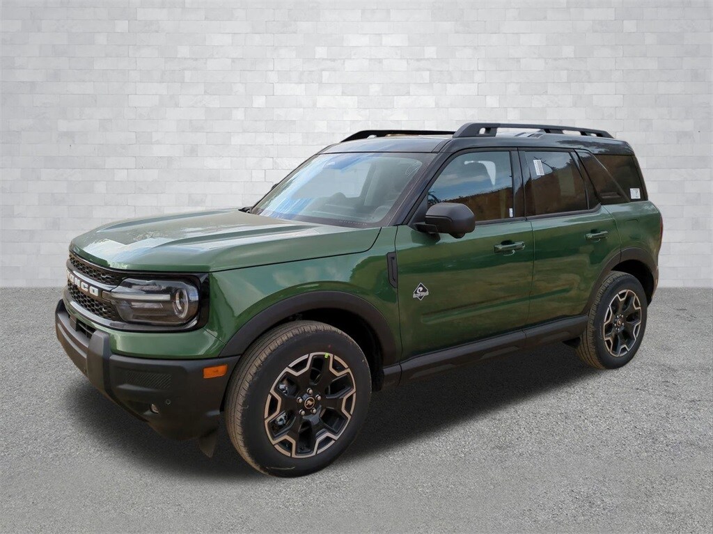2025 Eruption Green Metallic 2025 Ford Bronco Sport Outer Banks 4WD 1.5L EcoBoost Equipment Group 300A, Outer Banks Tech Package+ (B&O Sound System by Bang & Olufsen, Connected Navigation, and HD Radio), 360-Degree Camera w/Trail & Split View, 4-Wheel Disc Brakes, 6 Speakers, ABS brakes, Air Conditioning, Alloy wheels, AM/FM radio: SiriusXM, AM/FM Stereo, Auto High-beam Headlights, Auto-dimming Rear-View mirror, Automatic temperature control, Brake assist, Compass, Delay-off headlights, Driver door bin, Driver vanity mirror, Dual front impact airbags, Dual front side impact airbags, Electronic Stability Control, Emergency communication system: SYNC 4 911 Assist, Four wheel independent suspension, Front anti-roll bar, Front Bucket Seats, Front Center Armrest, Front Driver/Passenger Seat Back Map Pockets, Front dual zone A/C, Front fog lights, Front Parking Sensors, Front reading lights, Fully automatic headlights, Garage door transmitter, Heated door mirrors, Heated front seats, Heated steering wheel, Illuminated entry, Knee airbag, Low tire pressure warning, Memory seat, Occupant sensing airbag, Outside temperature display, Overhead airbag, Overhead console, Panic alarm, Passenger door bin, Passenger vanity mirror, Power door mirrors, Power driver seat, Power passenger seat, Power steering, Power windows, Premium Trimmed Front Bucket Seats w/Ebony/Roast, Radio data system, Rain sensing wipers, Rear anti-roll bar, Rear Parking Sensors, Rear reading lights, Rear seat center armrest, Rear window defroster, Rear window wiper, Remote keyless entry, Reverse Brake Assist, Security system, SiriusXM, Speed control, Speed-sensing steering, Speed-Sensitive Wipers, Split folding rear seat, Steering wheel mounted audio controls, SYNC 4 w/Enhanced Voice Recognition, Tachometer, Telescoping steering wheel, Tilt steering wheel, Traction control, Trip computer, Variably intermittent wipers, and Wheels: 18" Ebony Black-Painted Aluminum Courtesy Ford and Lincoln of Rome 101 Hwy 411 E Rome, Ga 30161 ROMEFORDLINC.COM 706.235.4453.
