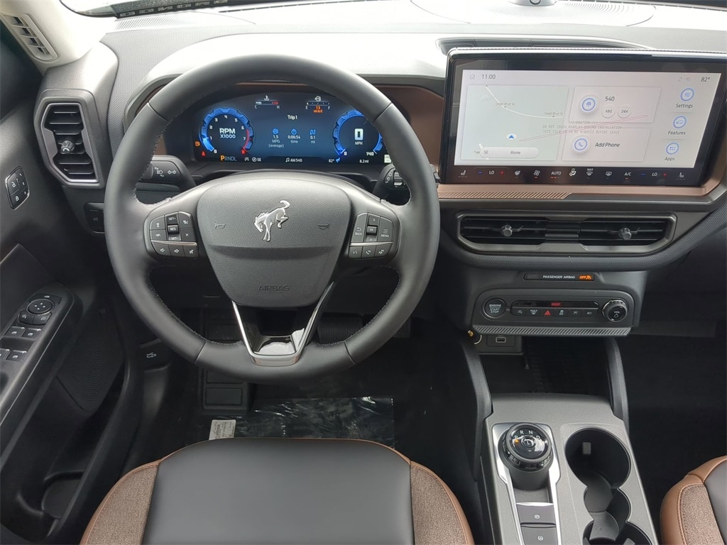 2025 Shadow Black 2025 Ford Bronco Sport Outer Banks 4WD 1.5L EcoBoost Auto LED Headlights, Backup Camera, LED Foglights, Navigation System, Push Button Start, Remote Start, 4D Sport Utility, 1.5L EcoBoost, 8-Speed Automatic, 4WD, B&O Sound System by Bang & Olufsen, Connected Navigation, Equipment Group 300A, HD Radio, Outer Banks Tech Package+. Equipment Group 300A, Outer Banks Tech Package+ (B&O Sound System by Bang & Olufsen, Connected Navigation, and HD Radio), 4D Sport Utility, 1.5L EcoBoost, 8-Speed Automatic, 4WD, 4-Wheel Disc Brakes, 6 Speakers, ABS brakes, Air Conditioning, Alloy wheels, AM/FM radio: SiriusXM, AM/FM Stereo, Auto High-beam Headlights, Auto-dimming Rear-View mirror, Automatic temperature control, Brake assist, Compass, Delay-off headlights, Driver door bin, Driver vanity mirror, Dual front impact airbags, Dual front side impact airbags, Electronic Stability Control, Emergency communication system: SYNC 4 911 Assist, Four wheel independent suspension, Front anti-roll bar, Front Bucket Seats, Front Center Armrest, Front Driver/Passenger Seat Back Map Pockets, Front dual zone A/C, Front fog lights, Front reading lights, Fully automatic headlights, Garage door transmitter, Heated door mirrors, Heated front seats, Heated steering wheel, Illuminated entry, Knee airbag, Low tire pressure warning, Memory seat, Occupant sensing airbag, Outside temperature display, Overhead airbag, Overhead console, Panic alarm, Passenger door bin, Passenger vanity mirror, Power door mirrors, Power driver seat, Power passenger seat, Power steering, Power windows, Premium Trimmed Front Bucket Seats w/Ebony/Roast, Radio data system, Rain sensing wipers, Rear anti-roll bar, Rear Parking Sensors, Rear reading lights, Rear seat center armrest, Rear window defroster, Rear window wiper, Remote keyless entry, Security system, SiriusXM, Speed control, Speed-sensing steering, Speed-Sensitive Wipers, Split folding rear seat, Steering wheel mounted audio controls, SYNC 4 w/Enhanced Voice Recognition, Tachometer, Telescoping steering wheel, Tilt steering wheel, Traction control, Trip computer, Variably intermittent wipers, and Wheels: 18" Ebony Black-Painted Aluminum Courtesy Ford and Lincoln of Rome 101 Hwy 411 E Rome, Ga 30161 ROMEFORDLINC.COM 706.235.4453.