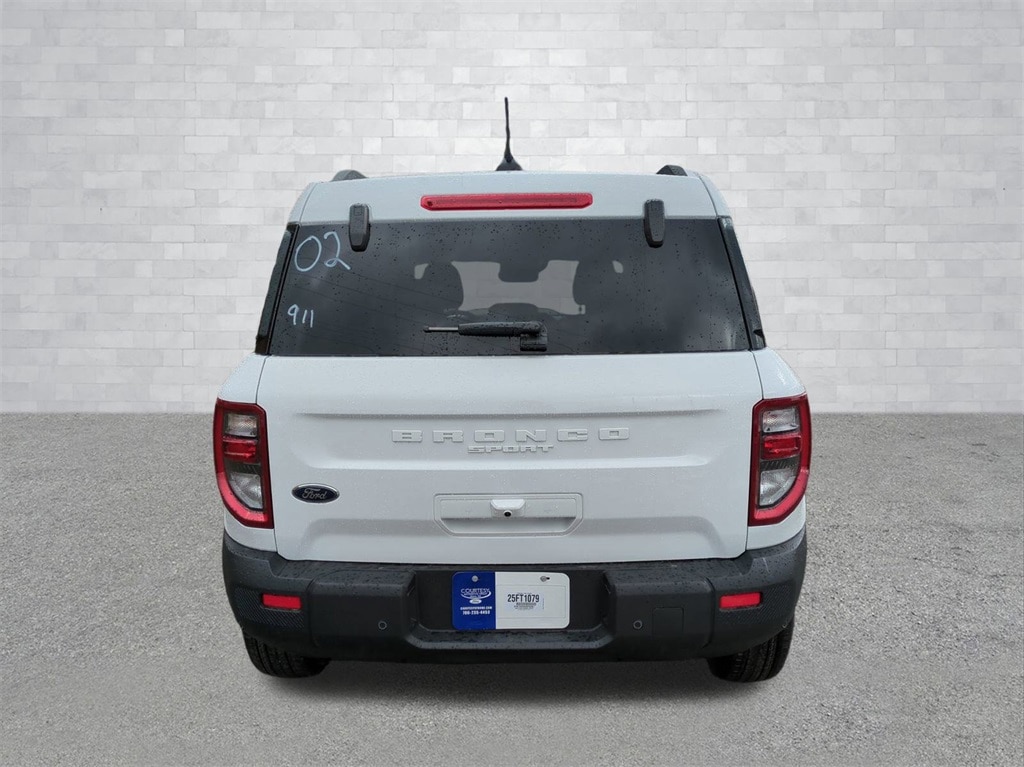 2025 Oxford White 2025 Ford Bronco Sport Big Bend 4WD 1.5L EcoBoost 13.2" LCD Centerstack Touchscreen, Auto LED Headlights, Backup Camera, Off Road Package, 4D Sport Utility, 1.5L EcoBoost, 8-Speed Automatic, 4WD, Convenience Package, Equipment Group 200A, Front Driver/Passenger Seat Back Map Pockets, Heated 8-Way Power Driver's Seat, LED Fog Lamps, Premium Wrapped Steering Wheel, Universal Garage Door Opener (UGDO). Convenience Package (Front Driver/Passenger Seat Back Map Pockets, Heated 8-Way Power Driver's Seat, LED Fog Lamps, Premium Wrapped Steering Wheel, and Universal Garage Door Opener (UGDO)), Equipment Group 200A, 4D Sport Utility, 1.5L EcoBoost, 8-Speed Automatic, 4WD, 4-Wheel Disc Brakes, 6 Speakers, ABS brakes, Air Conditioning, Alloy wheels, AM/FM radio: SiriusXM, AM/FM Stereo, Auto High-beam Headlights, Automatic temperature control, Brake assist, Cloth w/Easy-to-Clean Front Bucket Seats, Compass, Delay-off headlights, Driver door bin, Driver vanity mirror, Dual front impact airbags, Dual front side impact airbags, Electronic Stability Control, Emergency communication system: SYNC 4 911 Assist, Four wheel independent suspension, Front anti-roll bar, Front Bucket Seats, Front Center Armrest, Front reading lights, Fully automatic headlights, Heated door mirrors, Illuminated entry, Knee airbag, Low tire pressure warning, Occupant sensing airbag, Outside temperature display, Overhead airbag, Overhead console, Panic alarm, Passenger door bin, Passenger vanity mirror, Power door mirrors, Power steering, Power windows, Radio data system, Rear anti-roll bar, Rear Parking Sensors, Rear reading lights, Rear seat center armrest, Rear window defroster, Rear window wiper, Remote keyless entry, Security system, SiriusXM, Speed control, Speed-sensing steering, Speed-Sensitive Wipers, Split folding rear seat, Steering wheel mounted audio controls, SYNC 4 w/Enhanced Voice Recognition, Tachometer, Telescoping steering wheel, Tilt steering wheel, Traction control, Trip computer, Variably intermittent wipers, and Wheels: 17" Carbonized Gray-Painted Aluminum Courtesy Ford and Lincoln of Rome 101 Hwy 411 E Rome, Ga 30161 ROMEFORDLINC.COM 706.235.4453.