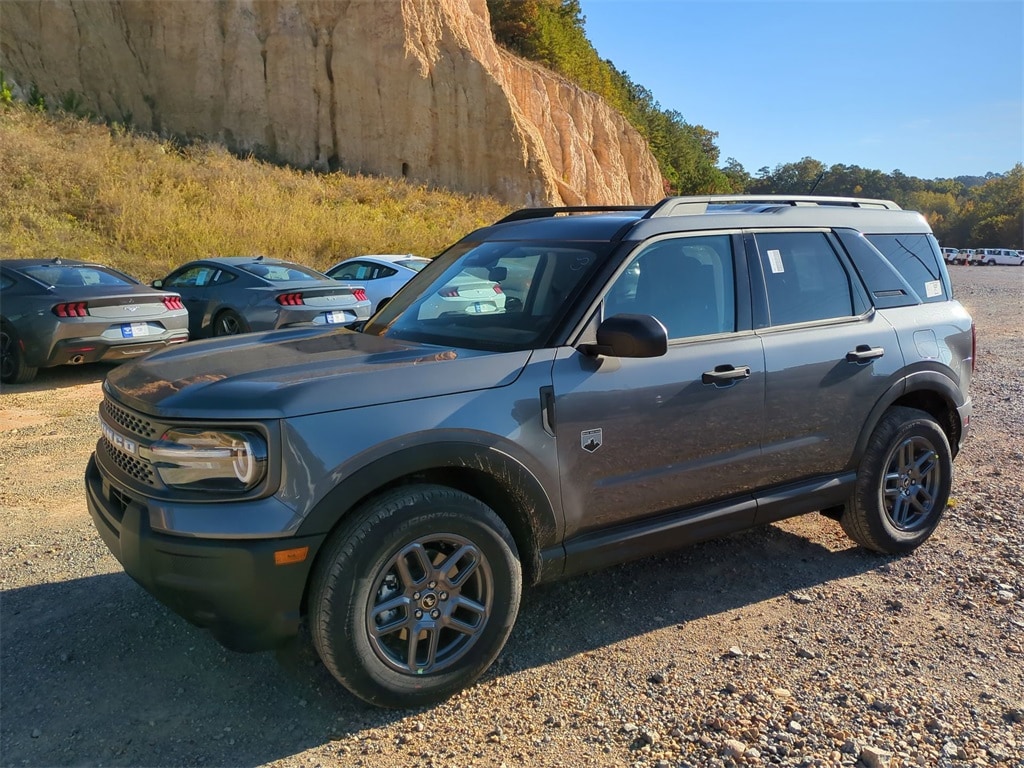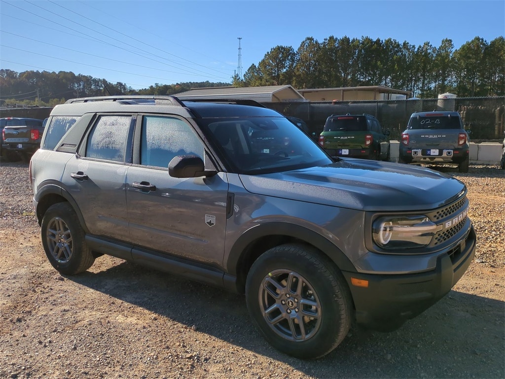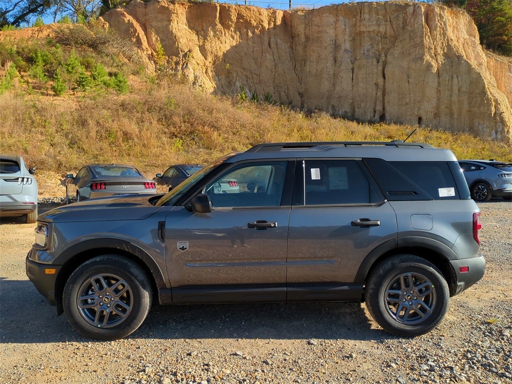 2025 Carbonized Gray Metallic 2025 Ford Bronco Sport Big Bend 4WD 1.5L EcoBoost 13.2" LCD Centerstack Touchscreen, Auto LED Headlights, Backup Camera, Off Road Package, 4D Sport Utility, 1.5L EcoBoost, 8-Speed Automatic, 4WD, Equipment Group 200A. Equipment Group 200A, 4D Sport Utility, 1.5L EcoBoost, 8-Speed Automatic, 4WD, 4-Wheel Disc Brakes, 6 Speakers, ABS brakes, Air Conditioning, Alloy wheels, AM/FM radio: SiriusXM, AM/FM Stereo, Auto High-beam Headlights, Automatic temperature control, Brake assist, Cloth w/Easy-to-Clean Front Bucket Seats, Compass, Delay-off headlights, Driver door bin, Driver vanity mirror, Dual front impact airbags, Dual front side impact airbags, Electronic Stability Control, Emergency communication system: SYNC 4 911 Assist, Four wheel independent suspension, Front anti-roll bar, Front Bucket Seats, Front Center Armrest, Front reading lights, Fully automatic headlights, Heated door mirrors, Illuminated entry, Knee airbag, Low tire pressure warning, Occupant sensing airbag, Outside temperature display, Overhead airbag, Overhead console, Panic alarm, Passenger door bin, Passenger vanity mirror, Power door mirrors, Power steering, Power windows, Radio data system, Rear anti-roll bar, Rear Parking Sensors, Rear reading lights, Rear seat center armrest, Rear window defroster, Rear window wiper, Remote keyless entry, Security system, SiriusXM, Speed control, Speed-sensing steering, Speed-Sensitive Wipers, Split folding rear seat, Steering wheel mounted audio controls, SYNC 4 w/Enhanced Voice Recognition, Tachometer, Telescoping steering wheel, Tilt steering wheel, Traction control, Trip computer, Variably intermittent wipers, and Wheels: 17" Carbonized Gray-Painted Aluminum Courtesy Ford and Lincoln of Rome 101 Hwy 411 E Rome, Ga 30161 ROMEFORDLINC.COM 706.235.4453.