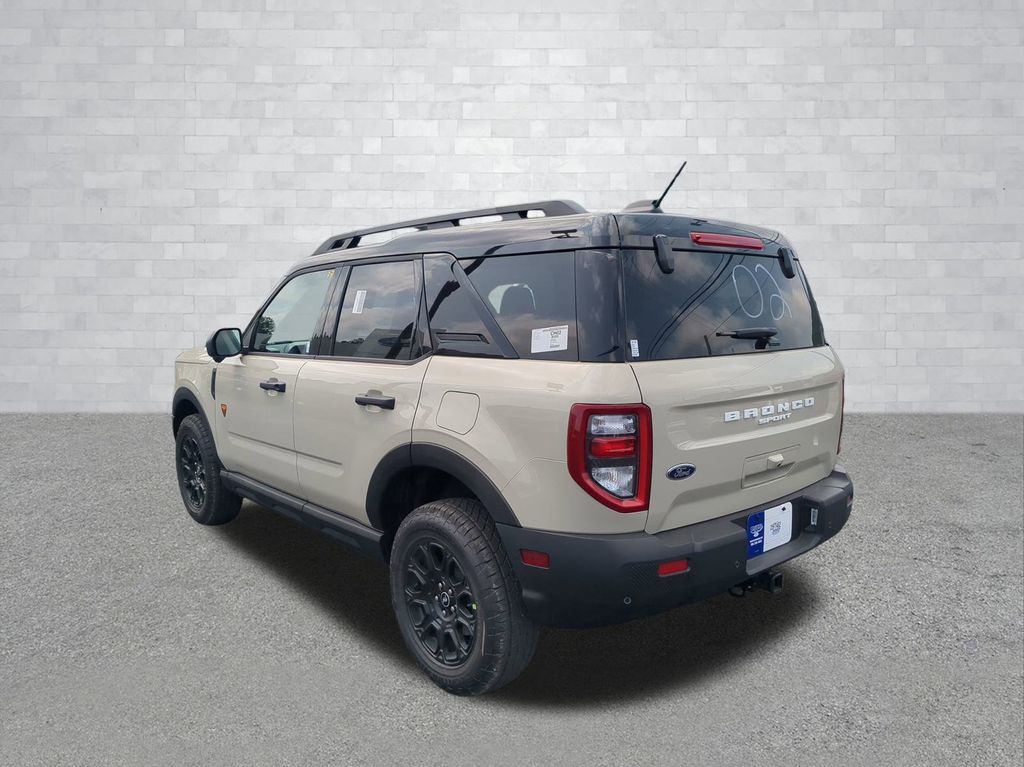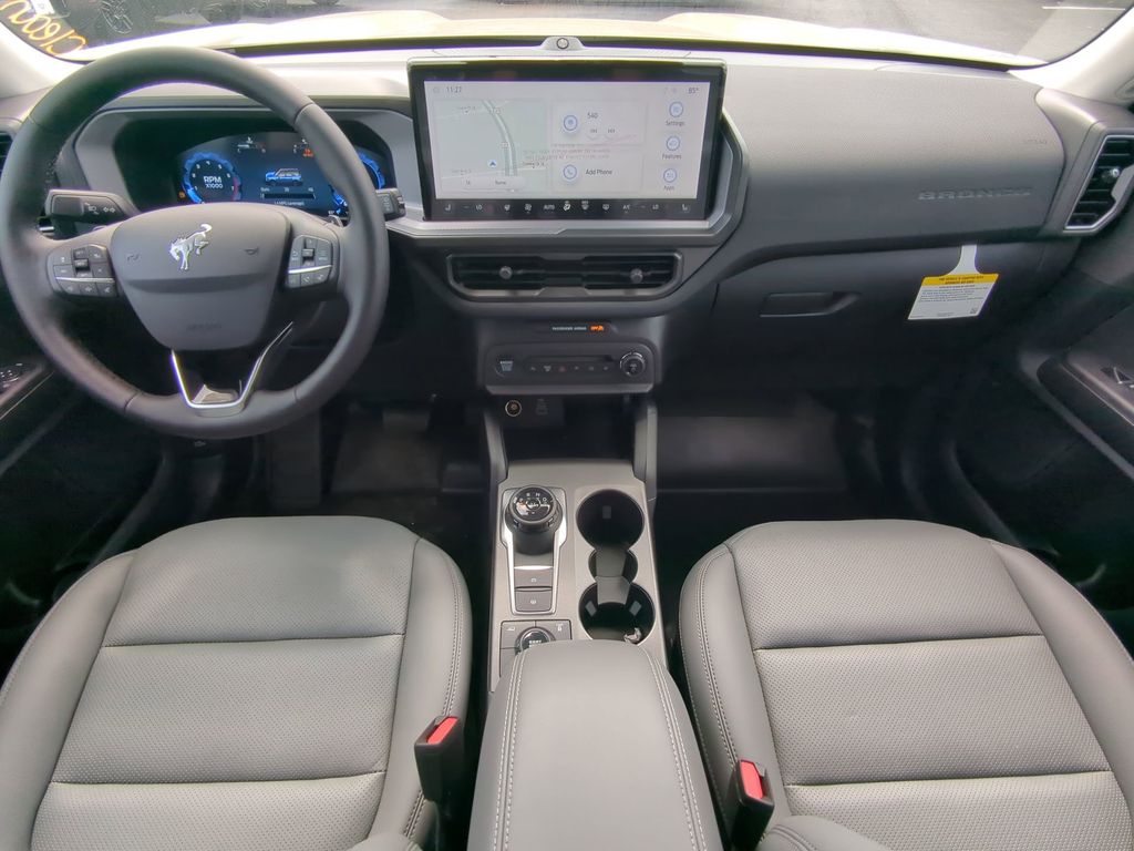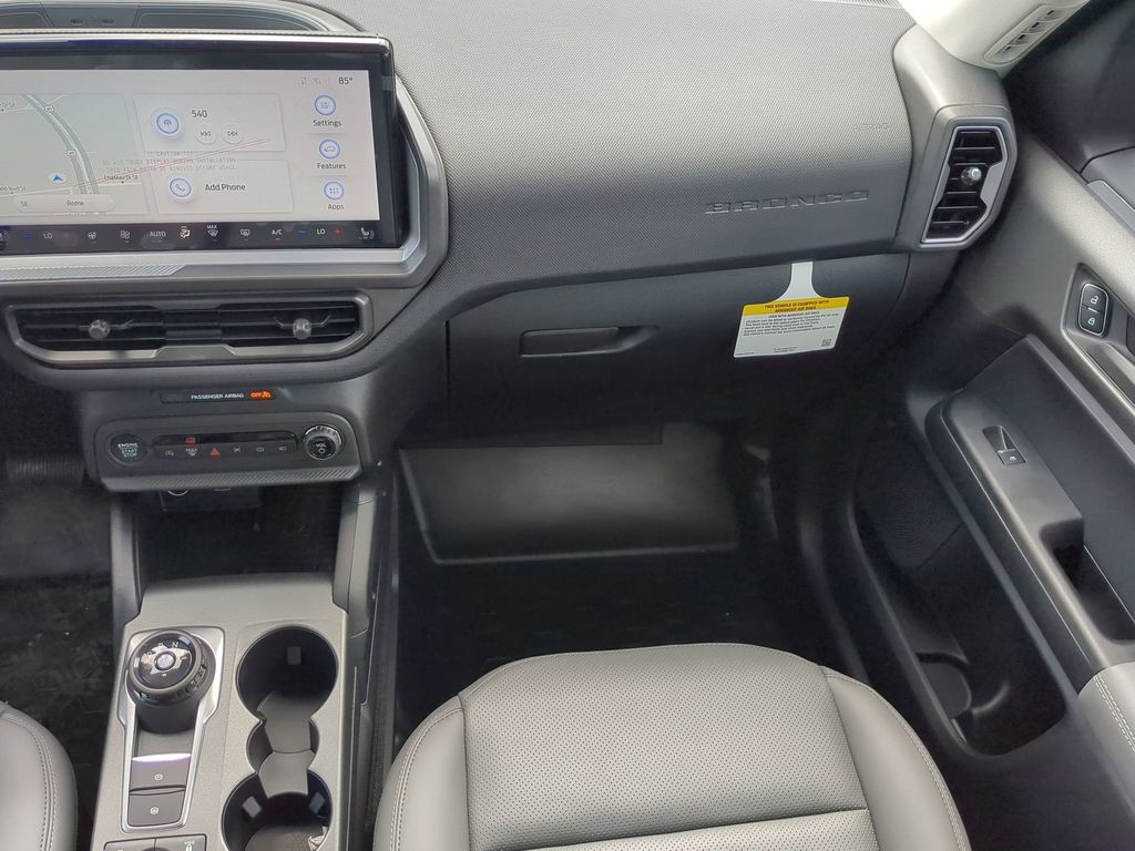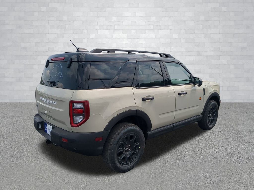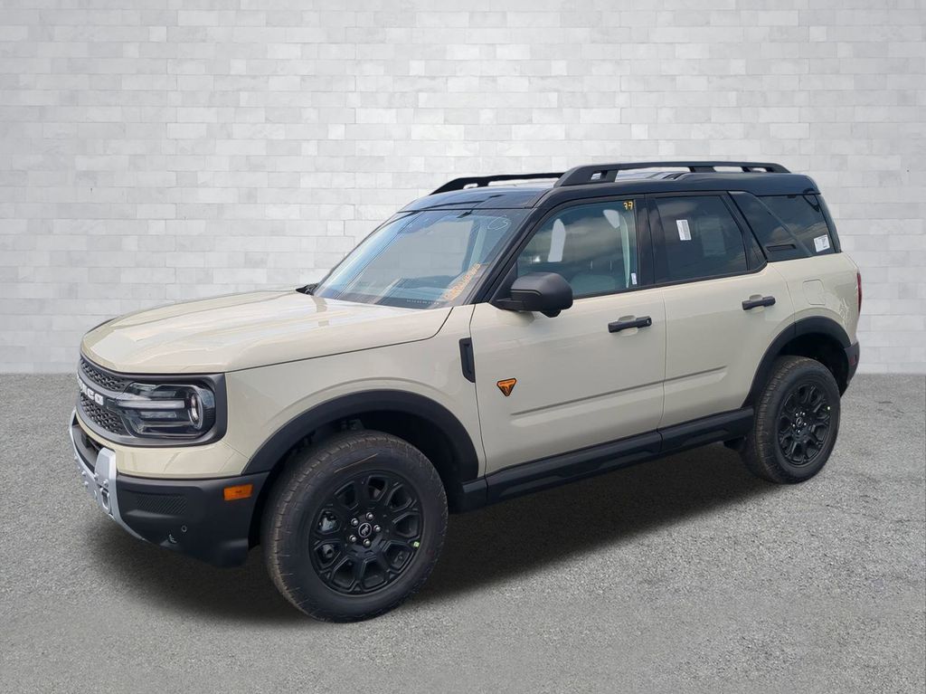 2025 Desert Sand 2025 Ford Bronco Sport Badlands 4WD EcoBoost 2.0L I4 GTDi DOHC Turbocharged VCT 13.2" LCD Centerstack Touchscreen, Auto LED Headlights, Backup Camera, Premium Sound Package, 4D Sport Utility, EcoBoost 2.0L I4 GTDi DOHC Turbocharged VCT, 8-Speed Automatic, 4WD, B&O Sound System by Bang & Olufsen, Badlands Tech Package, Connected Navigation, Equipment Group 400A, HD Radio. Badlands Tech Package (B&O Sound System by Bang & Olufsen, Connected Navigation, and HD Radio), Equipment Group 400A, 4D Sport Utility, EcoBoost 2.0L I4 GTDi DOHC Turbocharged VCT, 8-Speed Automatic, 4WD, 4-Wheel Disc Brakes, 6 Speakers, ABS brakes, Air Conditioning, Alloy wheels, AM/FM radio: SiriusXM, AM/FM Stereo, Auto High-beam Headlights, Auto-dimming Rear-View mirror, Automatic temperature control, Brake assist, Compass, Delay-off headlights, Driver door bin, Driver vanity mirror, Dual front impact airbags, Dual front side impact airbags, Electronic Stability Control, Emergency communication system: SYNC 4 911 Assist, Four wheel independent suspension, Front anti-roll bar, Front Bucket Seats, Front Center Armrest, Front fog lights, Front reading lights, Fully automatic headlights, Garage door transmitter, Heated door mirrors, Heated front seats, Heated steering wheel, Illuminated entry, Knee airbag, Leather Trimmed Front Bucket Seats, Low tire pressure warning, Memory seat, Occupant sensing airbag, Outside temperature display, Overhead airbag, Overhead console, Panic alarm, Passenger door bin, Passenger vanity mirror, Power door mirrors, Power driver seat, Power passenger seat, Power steering, Power windows, Radio data system, Rear anti-roll bar, Rear reading lights, Rear seat center armrest, Rear window defroster, Rear window wiper, Remote keyless entry, Security system, SiriusXM, Speed control, Speed-sensing steering, Speed-Sensitive Wipers, Split folding rear seat, Steering wheel mounted audio controls, SYNC 4 w/Enhanced Voice Recognition, Tachometer, Telescoping steering wheel, Tilt steering wheel, Traction control, Trip computer, Variably intermittent wipers, and Wheels: 17" Matte Black-Painted Aluminum Courtesy Ford and Lincoln of Rome 101 Hwy 411 E Rome, Ga 30161 ROMEFORDLINC.COM 706.235.4453.
