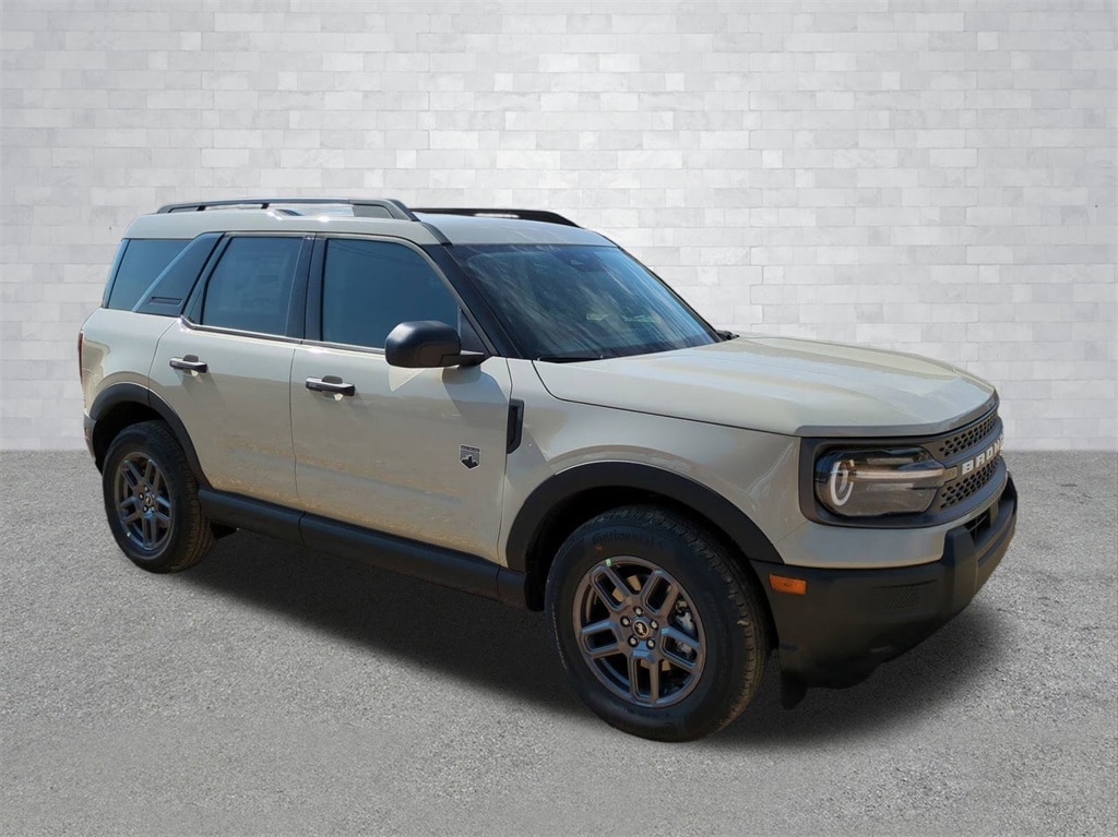2025 Desert Sand 2025 Ford Bronco Sport Big Bend 4WD 1.5L EcoBoost 13.2" LCD Centerstack Touchscreen, Auto LED Headlights, Backup Camera, Off Road Package, 4D Sport Utility, 1.5L EcoBoost, 8-Speed Automatic, 4WD, Equipment Group 200A. Equipment Group 200A, 4D Sport Utility, 1.5L EcoBoost, 8-Speed Automatic, 4WD, 4-Wheel Disc Brakes, 6 Speakers, ABS brakes, Air Conditioning, Alloy wheels, AM/FM radio: SiriusXM, AM/FM Stereo, Auto High-beam Headlights, Automatic temperature control, Brake assist, Cloth w/Easy-to-Clean Front Bucket Seats, Compass, Delay-off headlights, Driver door bin, Driver vanity mirror, Dual front impact airbags, Dual front side impact airbags, Electronic Stability Control, Emergency communication system: SYNC 4 911 Assist, Four wheel independent suspension, Front anti-roll bar, Front Bucket Seats, Front Center Armrest, Front reading lights, Fully automatic headlights, Heated door mirrors, Illuminated entry, Knee airbag, Low tire pressure warning, Occupant sensing airbag, Outside temperature display, Overhead airbag, Overhead console, Panic alarm, Passenger door bin, Passenger vanity mirror, Power door mirrors, Power steering, Power windows, Radio data system, Rear anti-roll bar, Rear Parking Sensors, Rear reading lights, Rear seat center armrest, Rear window defroster, Rear window wiper, Remote keyless entry, Security system, SiriusXM, Speed control, Speed-sensing steering, Speed-Sensitive Wipers, Split folding rear seat, Steering wheel mounted audio controls, SYNC 4 w/Enhanced Voice Recognition, Tachometer, Telescoping steering wheel, Tilt steering wheel, Traction control, Trip computer, Variably intermittent wipers, and Wheels: 17" Carbonized Gray-Painted Aluminum Courtesy Ford and Lincoln of Rome 101 Hwy 411 E Rome, Ga 30161 ROMEFORDLINC.COM 706.235.4453.