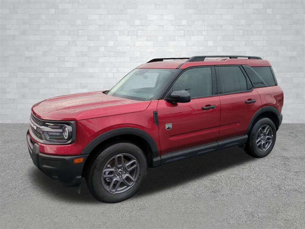2025 Ruby Red Metallic Tinted Clearcoat 2025 Ford Bronco Sport Big Bend 4WD 1.5L EcoBoost 13.2" LCD Centerstack Touchscreen, Auto LED Headlights, Backup Camera, Off Road Package, 4D Sport Utility, 1.5L EcoBoost, 8-Speed Automatic, 4WD, Equipment Group 200A. Equipment Group 200A, 4D Sport Utility, 1.5L EcoBoost, 8-Speed Automatic, 4WD, 4-Wheel Disc Brakes, 6 Speakers, ABS brakes, Air Conditioning, Alloy wheels, AM/FM radio: SiriusXM, AM/FM Stereo, Auto High-beam Headlights, Automatic temperature control, Brake assist, Cloth w/Easy-to-Clean Front Bucket Seats, Compass, Delay-off headlights, Driver door bin, Driver vanity mirror, Dual front impact airbags, Dual front side impact airbags, Electronic Stability Control, Emergency communication system: SYNC 4 911 Assist, Four wheel independent suspension, Front anti-roll bar, Front Bucket Seats, Front Center Armrest, Front reading lights, Fully automatic headlights, Heated door mirrors, Illuminated entry, Knee airbag, Low tire pressure warning, Occupant sensing airbag, Outside temperature display, Overhead airbag, Overhead console, Panic alarm, Passenger door bin, Passenger vanity mirror, Power door mirrors, Power steering, Power windows, Radio data system, Rear anti-roll bar, Rear Parking Sensors, Rear reading lights, Rear seat center armrest, Rear window defroster, Rear window wiper, Remote keyless entry, Security system, SiriusXM, Speed control, Speed-sensing steering, Speed-Sensitive Wipers, Split folding rear seat, Steering wheel mounted audio controls, SYNC 4 w/Enhanced Voice Recognition, Tachometer, Telescoping steering wheel, Tilt steering wheel, Traction control, Trip computer, Variably intermittent wipers, and Wheels: 17" Carbonized Gray-Painted Aluminum Courtesy Ford and Lincoln of Rome 101 Hwy 411 E Rome, Ga 30161 ROMEFORDLINC.COM 706.235.4453.