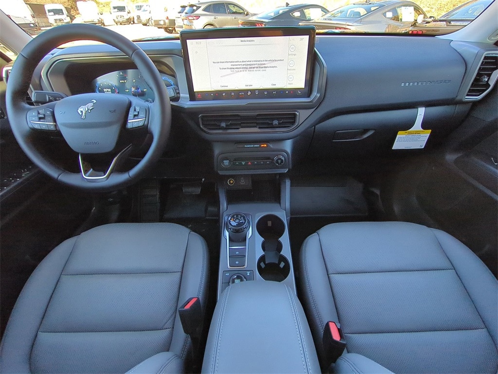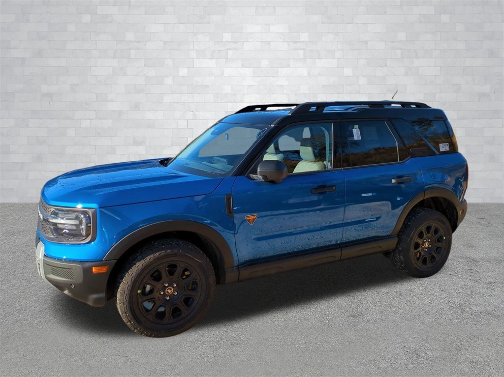 2025 Velocity Blue Metallic 2025 Ford Bronco Sport Badlands 4WD EcoBoost 2.0L I4 GTDi DOHC Turbocharged VCT 4-Wheel Disc Brakes, 6 Speakers, ABS brakes, Air Conditioning, Alloy wheels, AM/FM radio: SiriusXM, AM/FM Stereo, Auto High-beam Headlights, Auto-dimming Rear-View mirror, Automatic temperature control, Brake assist, Compass, Delay-off headlights, Driver door bin, Driver vanity mirror, Dual front impact airbags, Dual front side impact airbags, Electronic Stability Control, Emergency communication system: SYNC 4 911 Assist, Four wheel independent suspension, Front anti-roll bar, Front Bucket Seats, Front Center Armrest, Front fog lights, Front reading lights, Fully automatic headlights, Garage door transmitter, Heated door mirrors, Heated front seats, Heated steering wheel, Illuminated entry, Knee airbag, Leather Trimmed Front Bucket Seats, Low tire pressure warning, Memory seat, Occupant sensing airbag, Outside temperature display, Overhead airbag, Overhead console, Panic alarm, Passenger door bin, Passenger vanity mirror, Power door mirrors, Power driver seat, Power passenger seat, Power steering, Power windows, Radio data system, Rear anti-roll bar, Rear reading lights, Rear seat center armrest, Rear window defroster, Rear window wiper, Remote keyless entry, Security system, SiriusXM, Speed control, Speed-sensing steering, Speed-Sensitive Wipers, Split folding rear seat, Steering wheel mounted audio controls, SYNC 4 w/Enhanced Voice Recognition, Tachometer, Telescoping steering wheel, Tilt steering wheel, Traction control, Trip computer, Variably intermittent wipers, and Wheels: 17" Matte Black-Painted Aluminum Courtesy Ford and Lincoln of Rome 101 Hwy 411 E Rome, Ga 30161 ROMEFORDLINC.COM 706.235.4453.