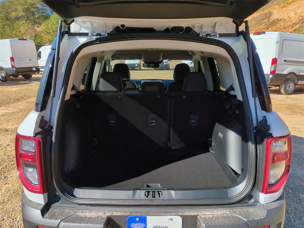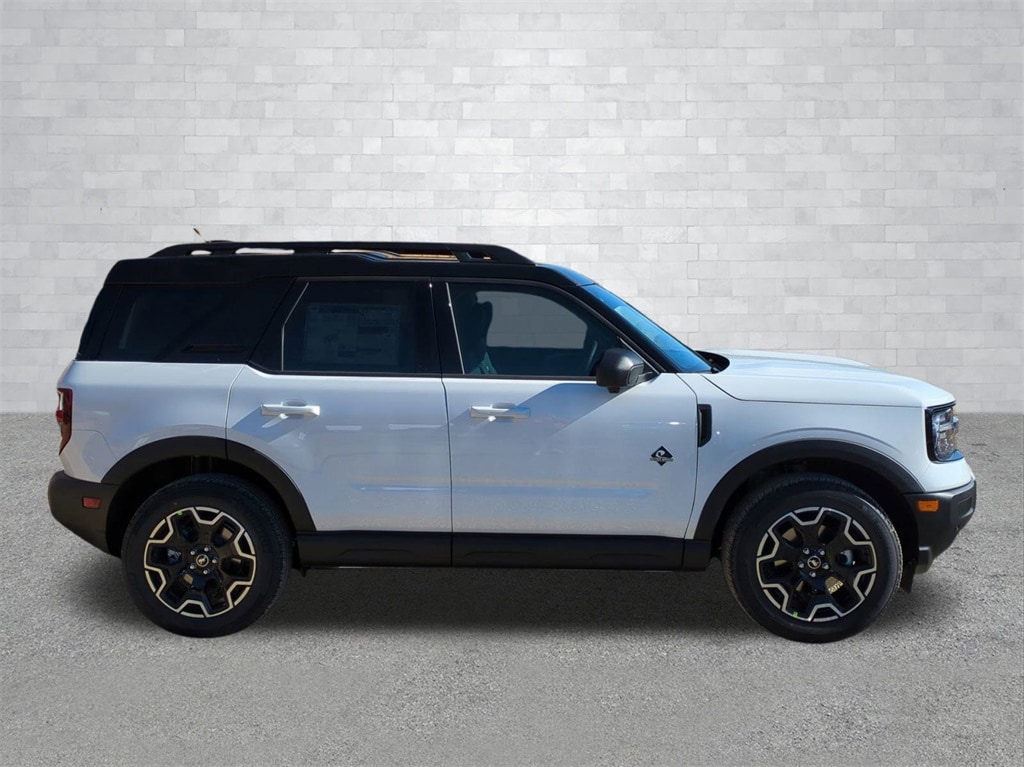 2025 Oxford White 2025 Ford Bronco Sport Outer Banks 4WD 1.5L EcoBoost Equipment Group 300A, Outer Banks Tech Package+ (B&O Sound System by Bang & Olufsen, Connected Navigation, and HD Radio), 360-Degree Camera w/Trail & Split View, 4-Wheel Disc Brakes, 6 Speakers, ABS brakes, Air Conditioning, Alloy wheels, AM/FM radio: SiriusXM, AM/FM Stereo, Auto High-beam Headlights, Auto-dimming Rear-View mirror, Automatic temperature control, Brake assist, Compass, Delay-off headlights, Driver door bin, Driver vanity mirror, Dual front impact airbags, Dual front side impact airbags, Electronic Stability Control, Emergency communication system: SYNC 4 911 Assist, Four wheel independent suspension, Front anti-roll bar, Front Bucket Seats, Front Center Armrest, Front Driver/Passenger Seat Back Map Pockets, Front dual zone A/C, Front fog lights, Front License Plate Bracket, Front Parking Sensors, Front reading lights, Fully automatic headlights, Garage door transmitter, Heated door mirrors, Heated front seats, Heated steering wheel, Illuminated entry, Knee airbag, Low tire pressure warning, Memory seat, Occupant sensing airbag, Outside temperature display, Overhead airbag, Overhead console, Panic alarm, Passenger door bin, Passenger vanity mirror, Power door mirrors, Power driver seat, Power passenger seat, Power steering, Power windows, Premium Trimmed Front Bucket Seats w/Ebony/Roast, Radio data system, Rain sensing wipers, Rear anti-roll bar, Rear Parking Sensors, Rear reading lights, Rear seat center armrest, Rear window defroster, Rear window wiper, Remote keyless entry, Reverse Brake Assist, Security system, SiriusXM, Speed control, Speed-sensing steering, Speed-Sensitive Wipers, Split folding rear seat, Steering wheel mounted audio controls, SYNC 4 w/Enhanced Voice Recognition, Tachometer, Telescoping steering wheel, Tilt steering wheel, Traction control, Trip computer, Variably intermittent wipers, and Wheels: 18" Ebony Black-Painted Aluminum Courtesy Ford and Lincoln of Rome 101 Hwy 411 E Rome, Ga 30161 ROMEFORDLINC.COM 706.235.4453.