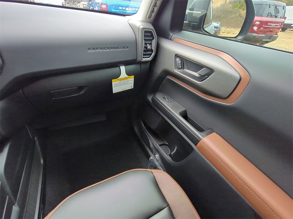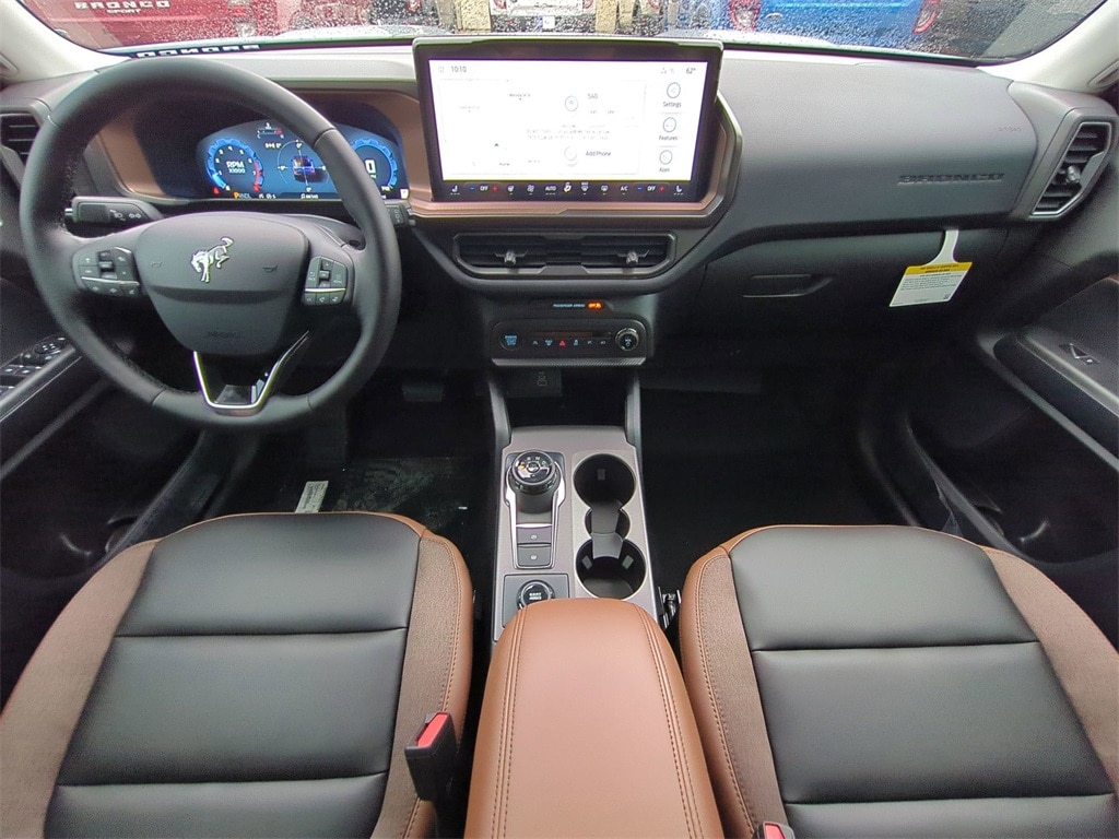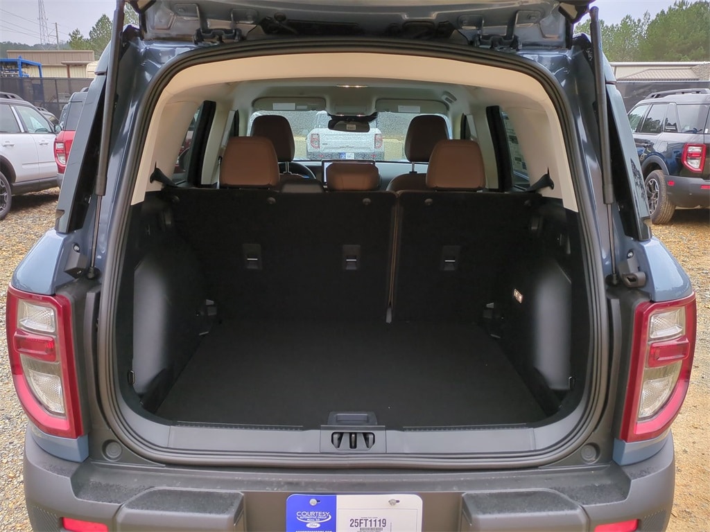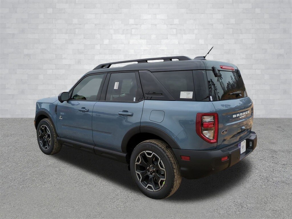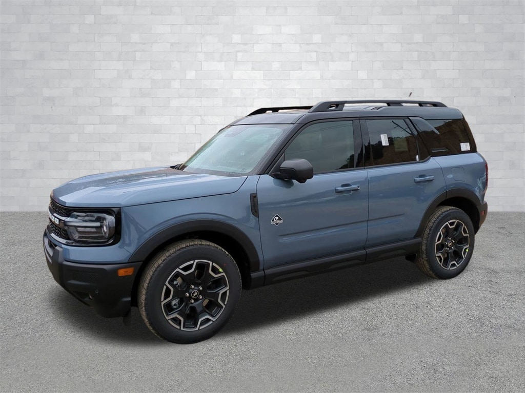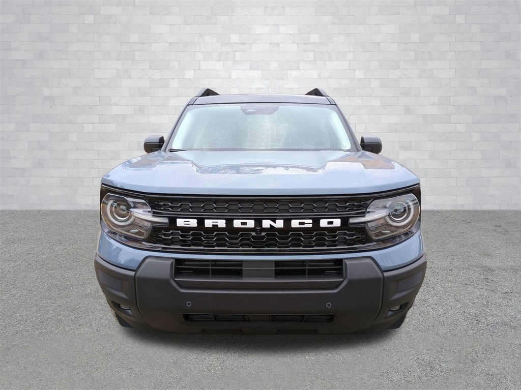 2025 Azure Gray Metallic Tri-Coat 2025 Ford Bronco Sport Outer Banks 4WD 1.5L EcoBoost Equipment Group 300A, Outer Banks Tech Package+ (B&O Sound System by Bang & Olufsen, Connected Navigation, and HD Radio), 360-Degree Camera w/Trail & Split View, 4-Wheel Disc Brakes, 6 Speakers, ABS brakes, Air Conditioning, Alloy wheels, AM/FM radio: SiriusXM, AM/FM Stereo, Auto High-beam Headlights, Auto-dimming Rear-View mirror, Automatic temperature control, Brake assist, Compass, Delay-off headlights, Driver door bin, Driver vanity mirror, Dual front impact airbags, Dual front side impact airbags, Electronic Stability Control, Emergency communication system: SYNC 4 911 Assist, Four wheel independent suspension, Front anti-roll bar, Front Bucket Seats, Front Center Armrest, Front Driver/Passenger Seat Back Map Pockets, Front dual zone A/C, Front fog lights, Front License Plate Bracket, Front Parking Sensors, Front reading lights, Fully automatic headlights, Garage door transmitter, Heated door mirrors, Heated front seats, Heated steering wheel, Illuminated entry, Knee airbag, Low tire pressure warning, Memory seat, Occupant sensing airbag, Outside temperature display, Overhead airbag, Overhead console, Panic alarm, Passenger door bin, Passenger vanity mirror, Power door mirrors, Power driver seat, Power passenger seat, Power steering, Power windows, Premium Trimmed Front Bucket Seats w/Ebony/Roast, Radio data system, Rain sensing wipers, Rear anti-roll bar, Rear Parking Sensors, Rear reading lights, Rear seat center armrest, Rear window defroster, Rear window wiper, Remote keyless entry, Reverse Brake Assist, Security system, SiriusXM, Speed control, Speed-sensing steering, Speed-Sensitive Wipers, Split folding rear seat, Steering wheel mounted audio controls, SYNC 4 w/Enhanced Voice Recognition, Tachometer, Telescoping steering wheel, Tilt steering wheel, Traction control, Trip computer, Variably intermittent wipers, and Wheels: 18" Ebony Black-Painted Aluminum Courtesy Ford and Lincoln of Rome 101 Hwy 411 E Rome, Ga 30161 ROMEFORDLINC.COM 706.235.4453.
