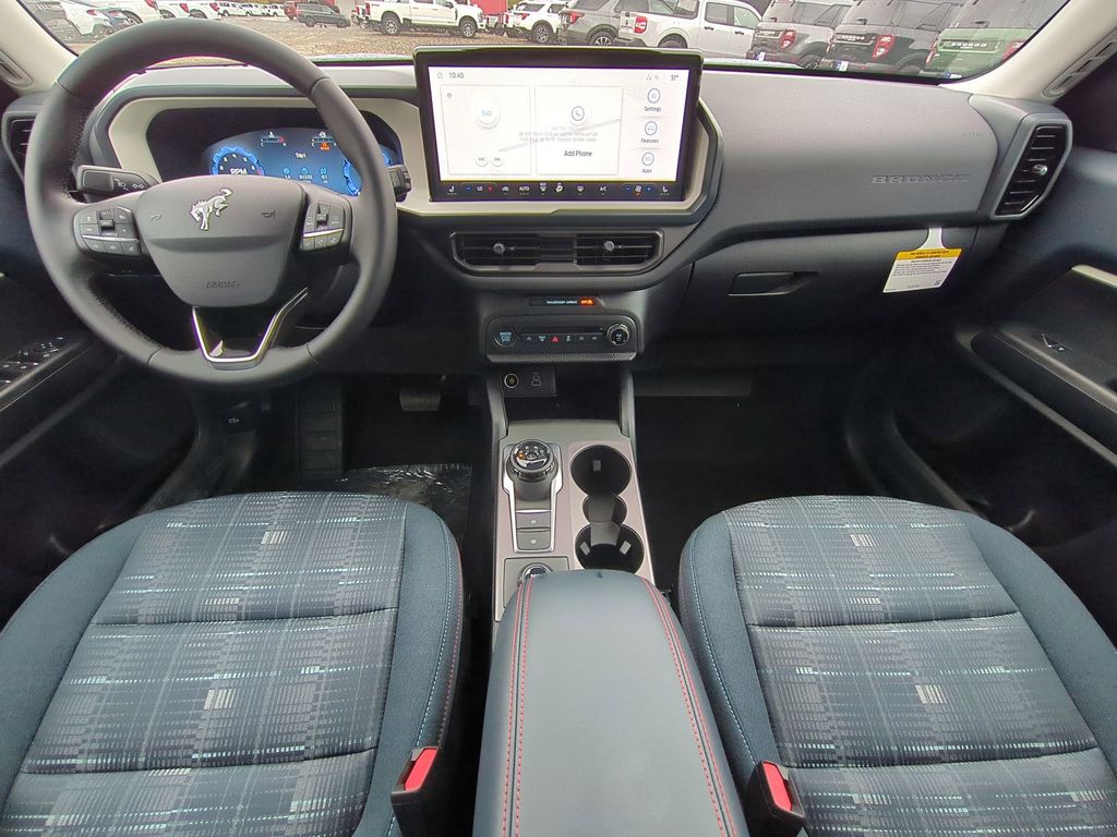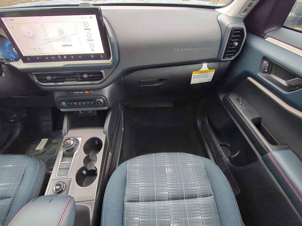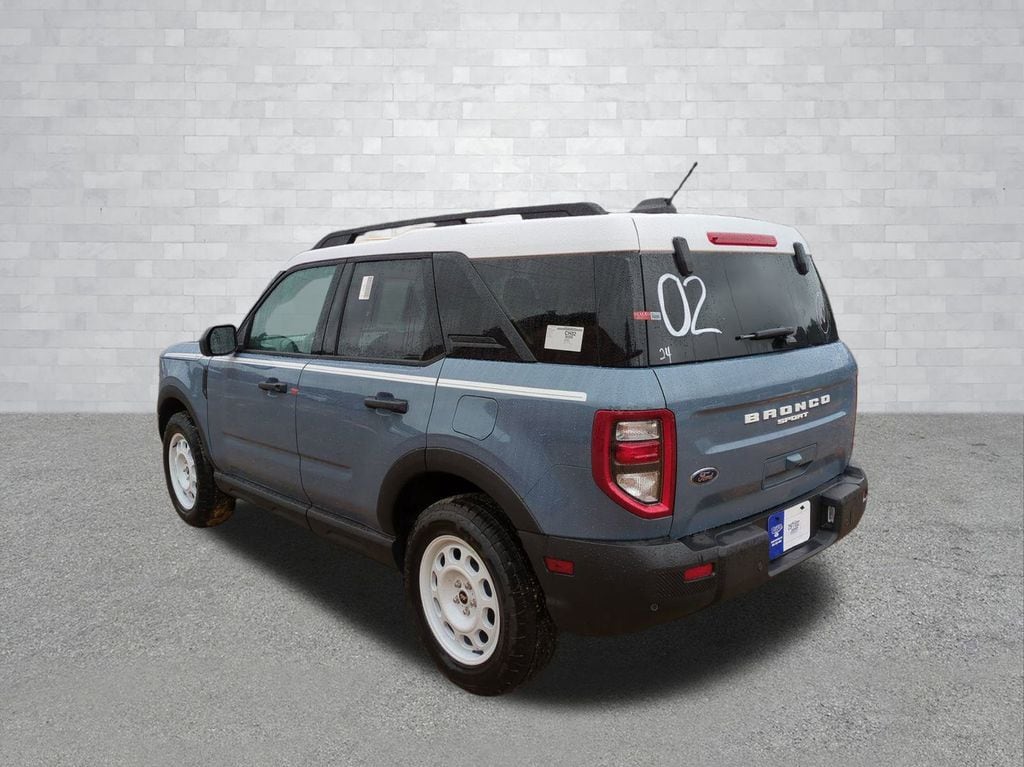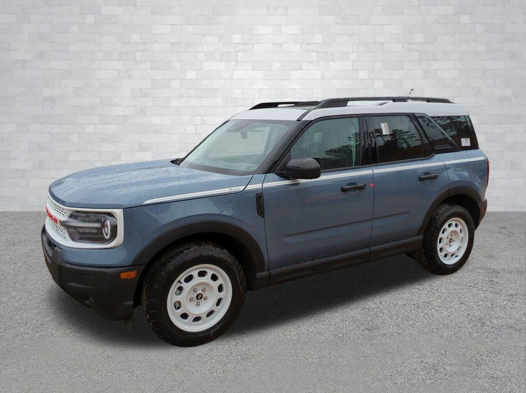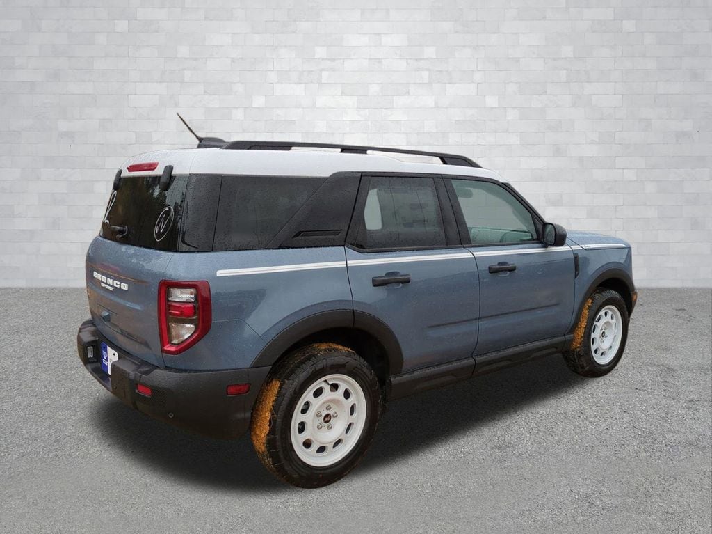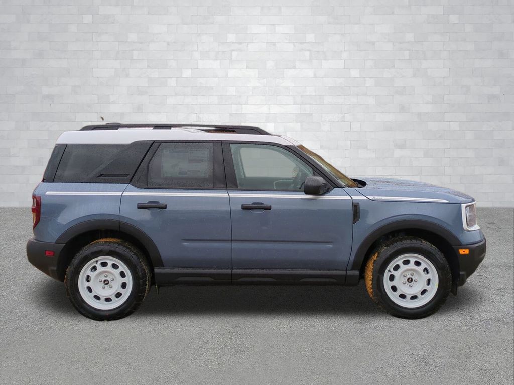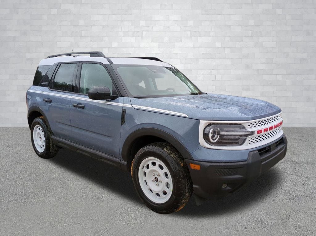 2025 Azure Gray Metallic Tri-Coat 2025 Ford Bronco Sport Heritage 4WD 1.5L EcoBoost Convenience Package (Front Driver/Passenger Seat Back Map Pockets, Heated 8-Way Power Driver's Seat, LED Fog Lamps, Premium Wrapped Steering Wheel, and Universal Garage Door Opener (UGDO)), Equipment Group 250A, 4-Wheel Disc Brakes, 6 Speakers, ABS brakes, Air Conditioning, Alloy wheels, AM/FM radio: SiriusXM, AM/FM Stereo, Auto High-beam Headlights, Automatic temperature control, Brake assist, Compass, Delay-off headlights, Driver door bin, Driver vanity mirror, Dual front impact airbags, Dual front side impact airbags, Electronic Stability Control, Emergency communication system: SYNC 4 911 Assist, Four wheel independent suspension, Front anti-roll bar, Front Bucket Seats, Front Center Armrest, Front reading lights, Fully automatic headlights, Heated door mirrors, Illuminated entry, Knee airbag, Low tire pressure warning, Occupant sensing airbag, Outside temperature display, Overhead airbag, Overhead console, Panic alarm, Passenger door bin, Passenger vanity mirror, Plaid Cloth Front Bucket Seats, Power door mirrors, Power Moonroof, Power steering, Power windows, Radio data system, Rear anti-roll bar, Rear Parking Sensors, Rear reading lights, Rear seat center armrest, Rear window defroster, Rear window wiper, Remote keyless entry, Security system, SiriusXM, Speed control, Speed-sensing steering, Speed-Sensitive Wipers, Split folding rear seat, Steering wheel mounted audio controls, SYNC 4 w/Enhanced Voice Recognition, Tachometer, Telescoping steering wheel, Tilt steering wheel, Traction control, Trip computer, Variably intermittent wipers, and Wheels: 17" Oxford White-Painted Aluminum Courtesy Ford and Lincoln of Rome 101 Hwy 411 E Rome, Ga 30161 ROMEFORDLINC.COM 706.235.4453.