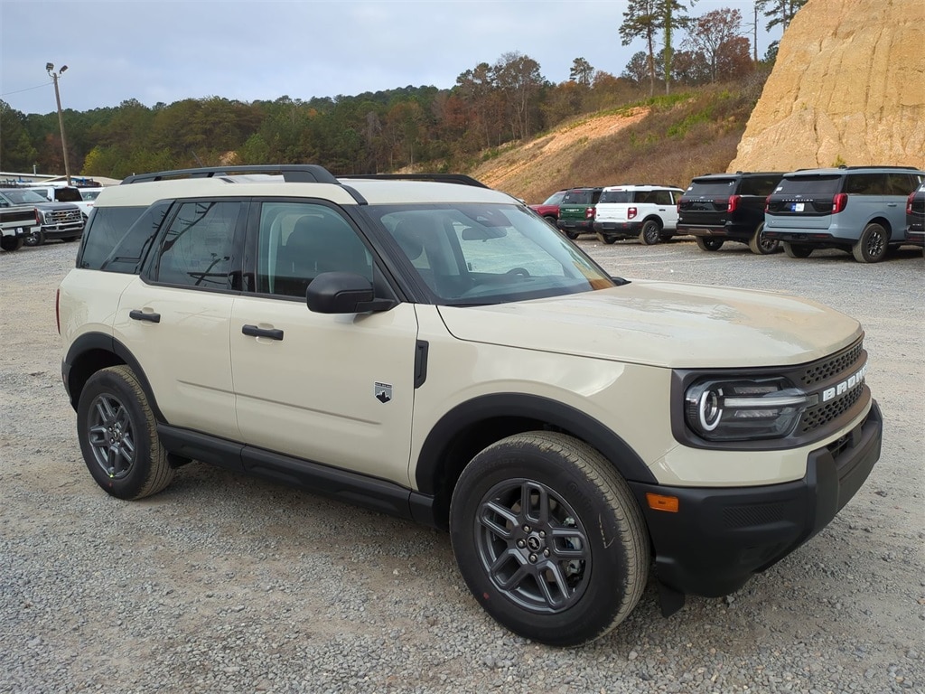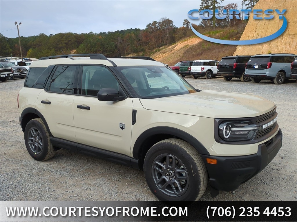 2025 Desert Sand 2025 Ford Bronco Sport Big Bend 4WD 1.5L EcoBoost 4-Wheel Disc Brakes, 6 Speakers, ABS brakes, Air Conditioning, Alloy wheels, AM/FM radio: SiriusXM, AM/FM Stereo, Auto High-beam Headlights, Automatic temperature control, Brake assist, Cloth w/Easy-to-Clean Front Bucket Seats, Compass, Delay-off headlights, Driver door bin, Driver vanity mirror, Dual front impact airbags, Dual front side impact airbags, Electronic Stability Control, Emergency communication system: SYNC 4 911 Assist, Four wheel independent suspension, Front anti-roll bar, Front Bucket Seats, Front Center Armrest, Front reading lights, Fully automatic headlights, Heated door mirrors, Illuminated entry, Knee airbag, Low tire pressure warning, Occupant sensing airbag, Outside temperature display, Overhead airbag, Overhead console, Panic alarm, Passenger door bin, Passenger vanity mirror, Power door mirrors, Power steering, Power windows, Radio data system, Rear anti-roll bar, Rear Parking Sensors, Rear reading lights, Rear seat center armrest, Rear window defroster, Rear window wiper, Remote keyless entry, Security system, SiriusXM, Speed control, Speed-sensing steering, Speed-Sensitive Wipers, Split folding rear seat, Steering wheel mounted audio controls, SYNC 4 w/Enhanced Voice Recognition, Tachometer, Telescoping steering wheel, Tilt steering wheel, Traction control, Trip computer, Variably intermittent wipers, and Wheels: 17" Carbonized Gray-Painted Aluminum Courtesy Ford and Lincoln of Rome 101 Hwy 411 E Rome, Ga 30161 ROMEFORDLINC.COM 706.235.4453.