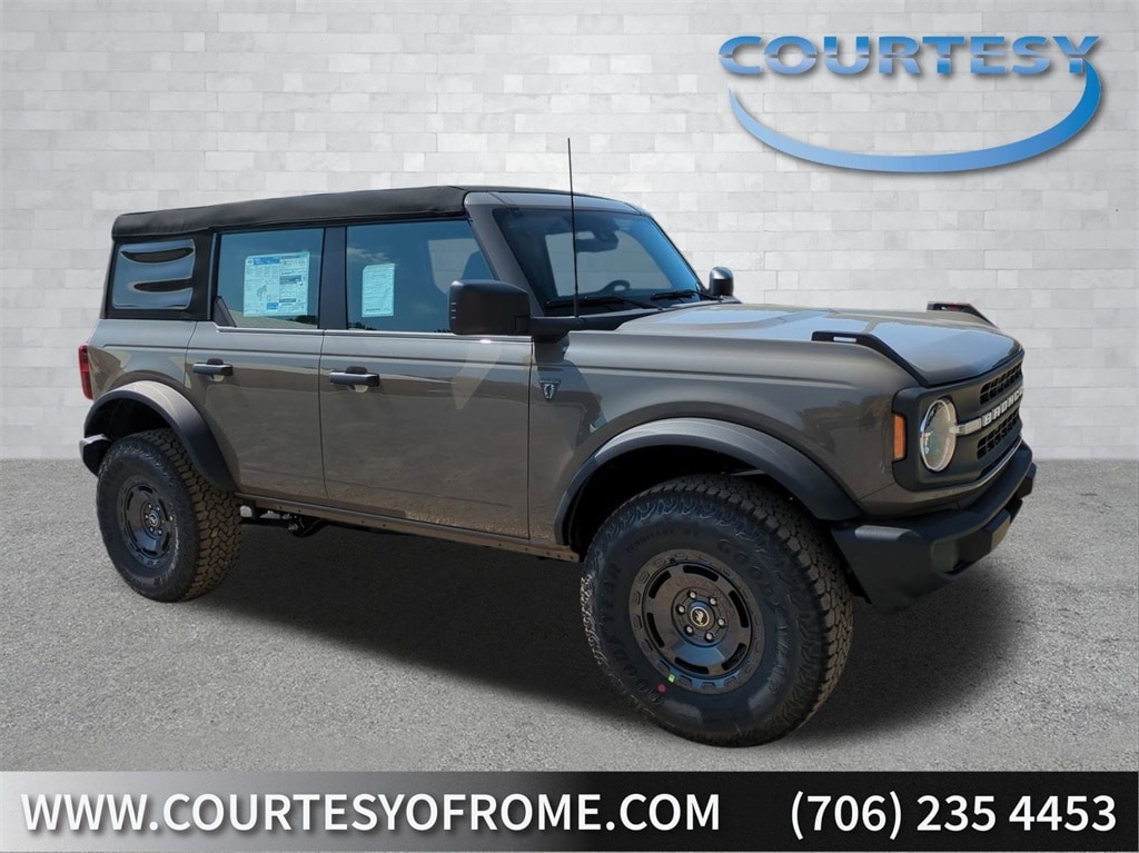 2025 Marsh Gray 2025 Ford Bronco Base Sasquatch 4WD 2.3L EcoBoost I-4 Auto Emergency Braking, Auto LED Headlights, Backup Camera, Pre Collision Assist w/ AEB, Push Button Start, 4D Sport Utility, 2.3L EcoBoost I-4, 4WD, 4.7 Final Drive Ratio, Equipment Group 101A, High Clearance Fender Flares, High Clearance Suspension, Position-Sensitive Bilstein Shock Absorbers, Sasquatch Package. Equipment Group 101A, Sasquatch Package (4.7 Final Drive Ratio, High Clearance Fender Flares, High Clearance Suspension, and Position-Sensitive Bilstein Shock Absorbers), 4D Sport Utility, 2.3L EcoBoost I-4, 4WD, 4-Wheel Disc Brakes, 7 Speakers, ABS brakes, Air Conditioning, AM/FM radio: SiriusXM with 360L, AM/FM Stereo, Auto High-beam Headlights, Brake assist, Cloth Bucket Seats, Compass, Delay-off headlights, Driver door bin, Driver vanity mirror, Dual front impact airbags, Dual front side impact airbags, Electronic Stability Control, Emergency communication system: 911 Assist, Exterior Parking Camera Rear, Front anti-roll bar, Front Bucket Seats, Front Center Armrest, Front reading lights, Front wheel independent suspension, Fully automatic headlights, Heated door mirrors, Illuminated entry, Integrated roll-over protection, Low tire pressure warning, Occupant sensing airbag, Outside temperature display, Overhead airbag, Overhead console, Panic alarm, Passenger door bin, Passenger vanity mirror, Power door mirrors, Power steering, Power windows, Radio data system, Remote keyless entry, Security system, SiriusXM w/360L, Speed control, Split folding rear seat, Steering wheel mounted audio controls, SYNC 4, Tachometer, Telescoping steering wheel, Tilt steering wheel, Traction control, Trip computer, Variably intermittent wipers, and Wheels: 16" Bright Polished Silver-Painted Steel Courtesy Ford and Lincoln of Rome 101 Hwy 411 E Rome, Ga 30161 ROMEFORDLINC.COM 706.235.4453.