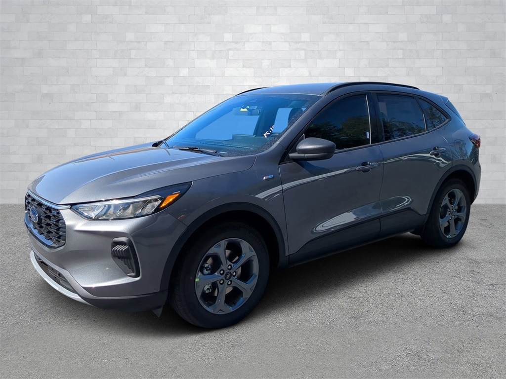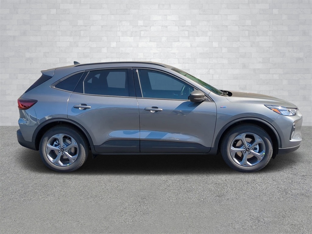 2025 Gray Metallic 2025 Ford Escape ST-Line FWD 1.5L EcoBoost 13.2" LCD Centerstack Touchscreen, Auto LED Headlights, Backup Camera, Blind Spot Monitoring, BLIS w/ Cross Traffic Alert, Evasive Steering Assist, Lane Keeping System, Parking Sensors, Push Button Start, 1.5L EcoBoost, 8-Speed Automatic, Adaptive Cruise Control w/Stop-and-Go, Connected Navigation, Ford Co-Pilot360 Assist+, Intersection Assist, Predictive Speed Assist, Rear Parking Sensor, Rear-View Camera, SYNC 4 w/Enhanced Voice Recognition, Tech Pack #1. Tech Pack #1 (Adaptive Cruise Control w/Stop-and-Go, Connected Navigation, Ford Co-Pilot360 Assist+, Intersection Assist, Predictive Speed Assist, Rear Parking Sensor, Rear-View Camera, and SYNC 4 w/Enhanced Voice Recognition), Equipment Group 300A, 1.5L EcoBoost, 8-Speed Automatic, 3.81 Axle Ratio, 4-Wheel Disc Brakes, 6 Speakers, ABS brakes, Air Conditioning, Alloy wheels, AM/FM radio: SiriusXM, AM/FM Stereo, Auto High-beam Headlights, Automatic temperature control, Brake assist, Bumpers: body-color, Compass, Delay-off headlights, Driver door bin, Driver vanity mirror, Dual front impact airbags, Dual front side impact airbags, Electronic Stability Control, Emergency communication system: SYNC 4 911 Assist, FordPass Connect, Four wheel independent suspension, Front anti-roll bar, Front Bucket Seats, Front Center Armrest, Front dual zone A/C, Front reading lights, Fully automatic headlights, Illuminated entry, Knee airbag, Low tire pressure warning, Occupant sensing airbag, Outside temperature display, Overhead airbag, Overhead console, Panic alarm, Passenger door bin, Passenger vanity mirror, Power door mirrors, Power driver seat, Power steering, Power windows, Radio data system, Rear anti-roll bar, Rear reading lights, Rear seat center armrest, Rear window defroster, Rear window wiper, Remote keyless entry, Speed control, Speed-sensing steering, Speed-Sensitive Wipers, Split folding rear seat, Spoiler, Sport steering wheel, Steering wheel mounted audio controls, SYNC 4, Tachometer, Telescoping steering wheel, Tilt steering wheel, Traction control, Trip computer, Variably intermittent wipers, Vinyl/Cloth Front Sport Contour Bucket Seats, and Wheels: 18" Rock Metallic Painted Aluminum Courtesy Ford and Lincoln of Rome 101 Hwy 411 E Rome, Ga 30161 ROMEFORDLINC.COM 706.235.4453.