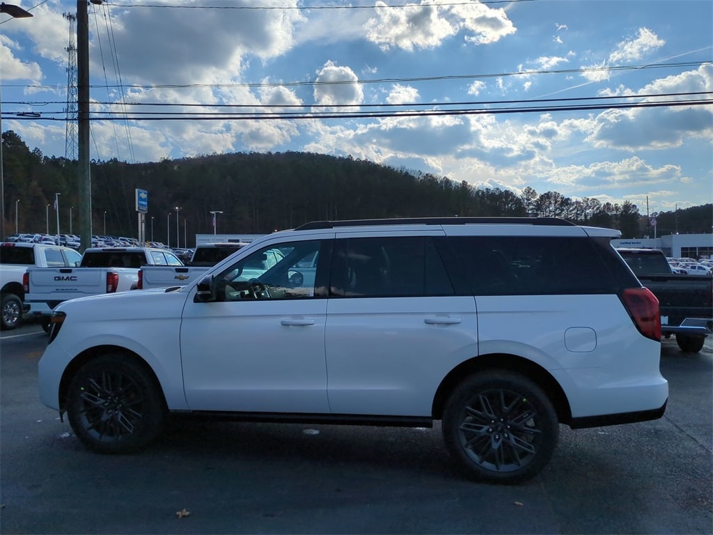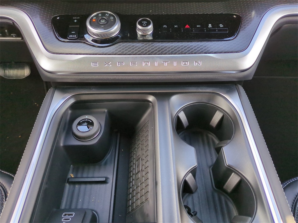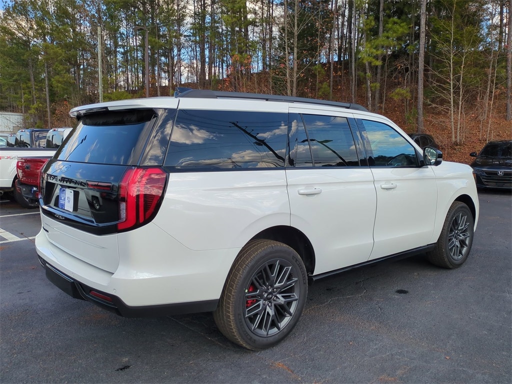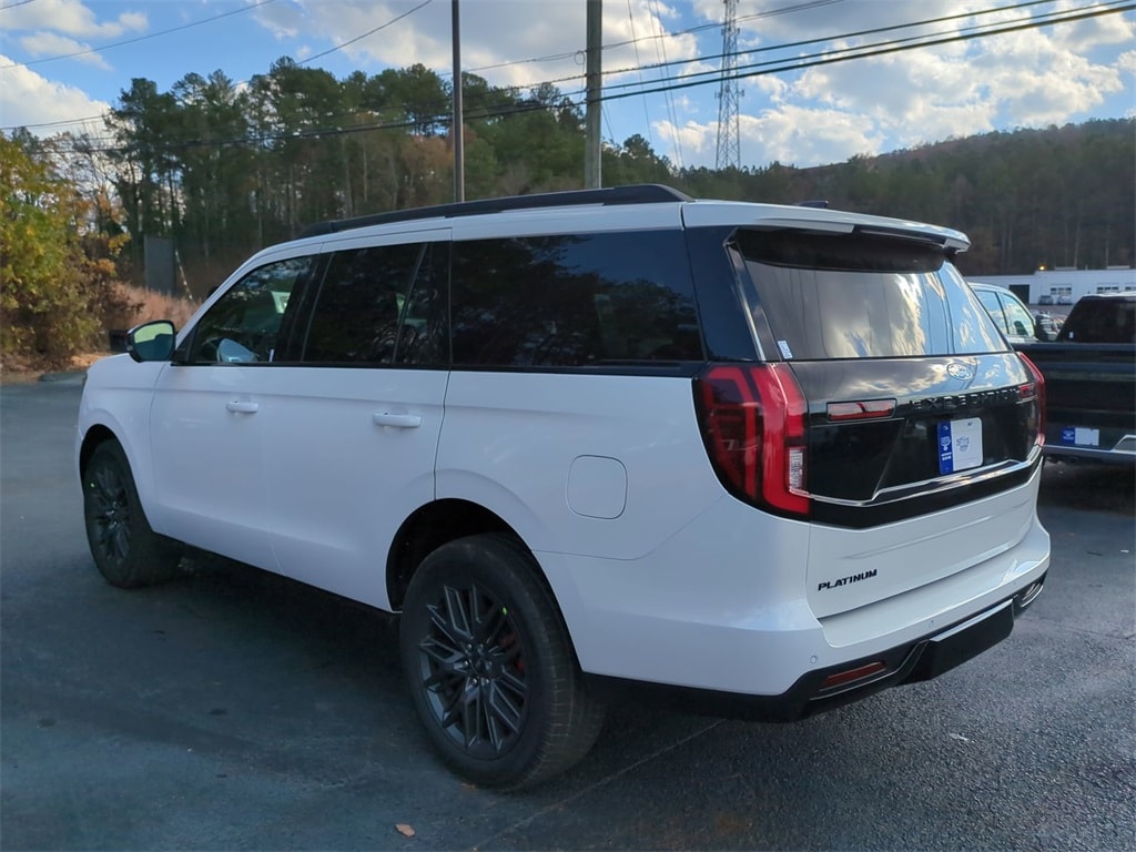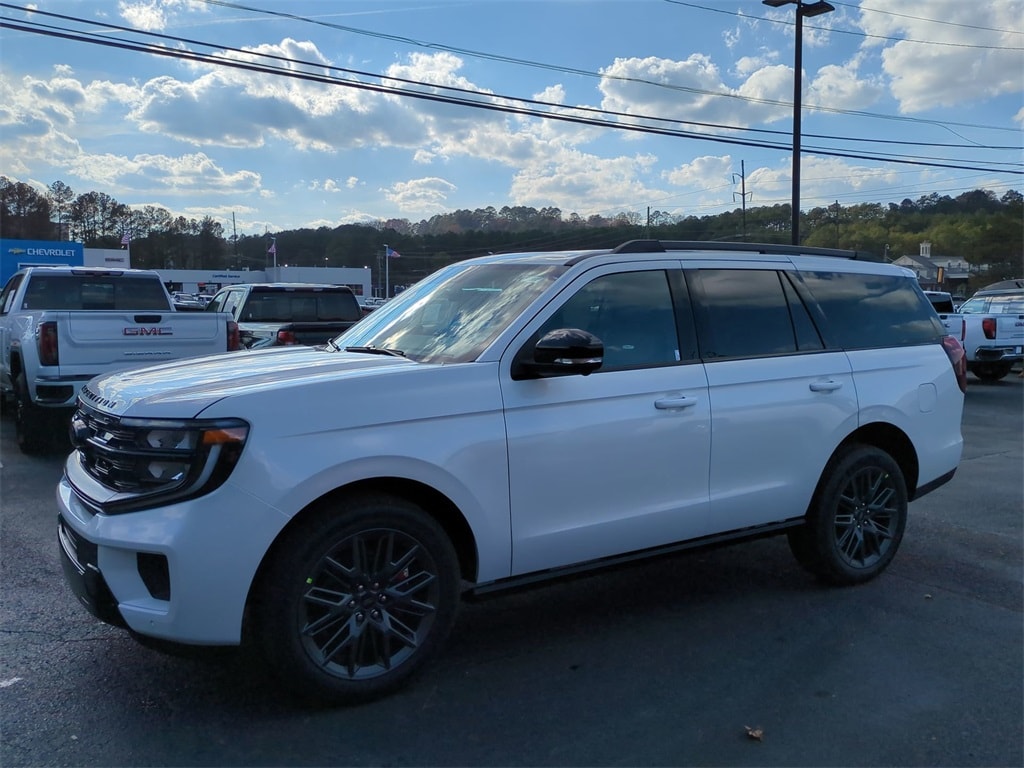 2025 Star White Metallic Tri-Coat 2025 Ford Expedition Platinum Stealth 4WD 3.5L V6 13.2" LCD Centerstack Touchscreen, 24" Cluster Pano Display, 3rd Row Seating, Adaptive Ride Package, Auto LED Headlights, Autoride Suspension Package, Bi Xenon Headlamp Package, Bluetooth w/ Audio Streaming, Hill Descent Control, Hill Start Assist, Intersection Assist, Memory Package, Multi Zone Climate Control, Panoramic Sunroof/Moonroof, Power Mirror Package, Power Package, Push Button Start, Remote Start, Wireless Charging Pad, 4D Sport Utility, 3.5L V6, 10-Speed Automatic, 4WD, 2nd Row Power-Folding Captain's Chairs, Black Belt Molding, Black Expedition Lettering On Hood, Black Headlamp Bezel w/Ebony Trim Applique, Black Platinum Badge On Tailgate, Black Roof Rails, Carbon Black Front Bumper/Fascia, Connectivity Package (One-Time Purchase), Continuous Control Damping Suspension, Driver's Package, Engine Sound Enhancer, Equipment Group 600A Standard Package, High Flow Exhaust System, Navigation System, Radio: B&O Unleashed Sound System by Bang & Olufsen, Rain sensing wipers, Rear Side Windows Laminated Glass, Rear window wiper, Red Brake Calipers, Signature Grille Lighting, SiriusXM w/360L, Speed-Sensitive Wipers, Stealth Appearance Package, Stealth Performance Package, Wheels: 22" Magnetite Painted Aluminum. Connectivity Package (One-Time Purchase), Driver's Package (Continuous Control Damping Suspension, Radio: B&O Unleashed Sound System by Bang & Olufsen, and SiriusXM w/360L), Equipment Group 600A Standard Package (2nd Row Power-Folding Captain's Chairs), Stealth Appearance Package (Black Belt Molding, Black Expedition Lettering On Hood, Black Headlamp Bezel w/Ebony Trim Applique, Black Platinum Badge On Tailgate, Black Roof Rails, Carbon Black Front Bumper/Fascia, Engine Sound Enhancer, Rear Side Windows Laminated Glass, and Signature Grille Lighting), Stealth Performance Package (High Flow Exhaust System, Red Brake Calipers, and Wheels: 22" Magnetite Painted Aluminum), 4D Sport Utility, 3.5L V6, 10-Speed Automatic, 4WD, Navigation System, Rain sensing wipers, Rear window wiper, Speed-Sensitive Wipers, 10 Speakers, 3.73 Axle Ratio, 3rd row seats: split-bench, 4-Wheel Disc Brakes, ABS brakes, Adjustable pedals, Air Conditioning, Alloy wheels, AM/FM radio: SiriusXM with 360L, Apple CarPlay/Android Auto, Auto High-beam Headlights, Auto-dimming door mirrors, Auto-dimming Rear-View mirror, Automatic temperature control, Brake assist, Bumpers: body-color, Compass, Delay-off headlights, Driver door bin, Driver vanity mirror, Dual front impact airbags, Dual front side impact airbags, Electronic Stability Control, Emergency communication system: 911 Assist, Exterior Parking Camera Rear, Four wheel independent suspension, Front anti-roll bar, Front Bucket Seats, Front Center Armrest, Front dual zone A/C, Front reading lights, Fully automatic headlights, Garage door transmitter, Genuine wood dashboard insert, Genuine wood door panel insert, Heated & Ventilated Leather Front Captain's Chairs, Heated door mirrors, Heated front seats, Heated rear seats, Heated steering wheel, Illuminated entry, Leather steering wheel, Low tire pressure warning, Memory seat, Occupant sensing airbag, Outside temperature display, Overhead airbag, Overhead console, Panic alarm, Passenger door bin, Passenger vanity mirror, Pedal memory, Power door mirrors, Power driver seat, Power moonroof: Vista Roof, Power passenger seat, Power steering, Power windows, Radio data system, Radio: B&O Sound System by Bang & Olufsen, Rear air conditioning, Rear anti-roll bar, Rear reading lights, Rear window defroster, Reclining 3rd row seat, Remote keyless entry, Security system, Speed control, Speed-sensing steering, Split folding rear seat, Spoiler, Steering wheel memory, Steering wheel mounted audio controls, Tachometer, Telescoping steering wheel, Tilt steering wheel, Traction control, Trip computer,