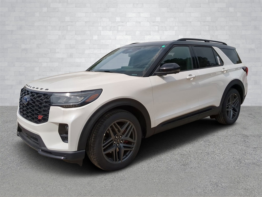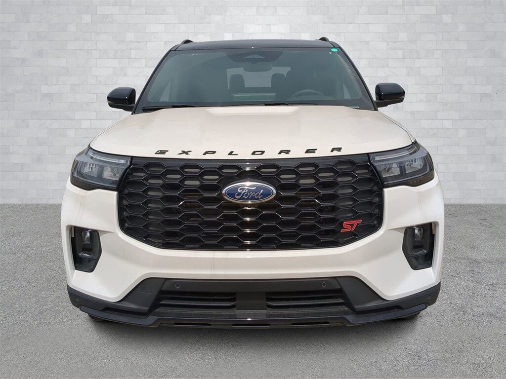 2025 Star White Metallic Tri-Coat 2025 Ford Explorer ST 4WD 3.0L EcoBoost V6 12.4" LCD Digital Driver Cluster, 13.2" LCD Centerstack Touchscreen, Android Auto, Apple Carplay, Auto LED Headlights, Backup Camera, BlueCruise, Bluetooth w/ Audio Streaming, Panoramic Sunroof/Moonroof, Premium Sound Package, Sport Package, 4D Sport Utility, 3.0L EcoBoost V6, 10-Speed Automatic, 4WD, Equipment Group 400A Standard Package, Navigation System, Radio: B&O Sound System by Bang & Olufsen. Equipment Group 400A Standard Package, 4D Sport Utility, 3.0L EcoBoost V6, 10-Speed Automatic, 4WD, Navigation System, Radio: B&O Sound System by Bang & Olufsen, 3.58 Non-Limited Slip Rear Axle, 3rd row seats: bench, 4-Wheel Disc Brakes, ABS brakes, Air Conditioning, Alloy wheels, Apple CarPlay/Android Auto, Auto High-beam Headlights, Auto-dimming door mirrors, Auto-dimming Rear-View mirror, Automatic temperature control, Black Painted Roof, Brake assist, Bumpers: body-color, Compass, Delay-off headlights, Driver door bin, Driver vanity mirror, Dual front impact airbags, Dual front side impact airbags, Electronic Stability Control, Emergency communication system: 911 Assist, Exterior Parking Camera Rear, Four wheel independent suspension, Front anti-roll bar, Front Bucket Seats, Front Center Armrest, Front dual zone A/C, Front fog lights, Front reading lights, Fully automatic headlights, Garage door transmitter, Heated door mirrors, Heated front seats, Heated rear seats, Heated steering wheel, Illuminated entry, Knee airbag, Leather steering wheel, Low tire pressure warning, Memory seat, Occupant sensing airbag, Outside temperature display, Overhead airbag, Overhead console, Panic alarm, Passenger door bin, Passenger vanity mirror, Power door mirrors, Power driver seat, Power Liftgate, Power passenger seat, Power steering, Power windows, Rear air conditioning, Rear anti-roll bar, Rear reading lights, Rear window defroster, Rear window wiper, Remote keyless entry, Security system, Speed control, Speed-sensing steering, Speed-Sensitive Wipers, Split folding rear seat, Spoiler, Sport steering wheel, Steering wheel mounted audio controls, Tachometer, Telescoping steering wheel, Tilt steering wheel, Traction control, Trip computer, Turn signal indicator mirrors, Variably intermittent wipers, and Ventilated front seats Courtesy Ford and Lincoln of Rome 101 Hwy 411 E Rome, Ga 30161 ROMEFORDLINC.COM 706.235.4453. $1,000 - Exp. 12/31/2026 Dealer Finance Assistance. Must finance through dealer lender to qualify. $1,000 - Exp. 12/31/2026 Dealer Finance Assistance. Must finance through dealer lender to qualify.