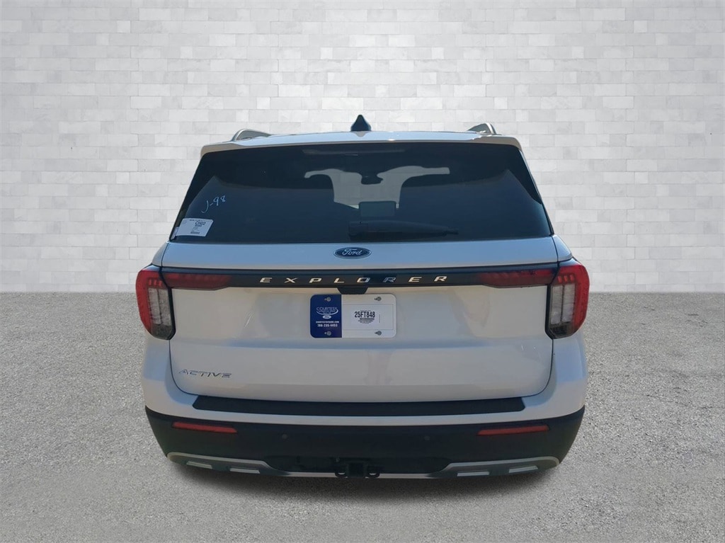 2025 Star White Metallic Tri-Coat 2025 Ford Explorer Active RWD 2.3L EcoBoost I-4 12.4" LCD Digital Driver Cluster, 13.2" LCD Centerstack Touchscreen, 3rd Row Seating, Android Auto, Apple Carplay, Auto LED Headlights, Backup Camera, Bluetooth w/ Audio Streaming, Hill Start Assist, Intersection Assist, LED Foglights, Multi Zone Climate Control, Side-Wind Stabilization, Tow Package, Trailer Package, 4D Sport Utility, 2.3L EcoBoost I-4, 10-Speed Automatic, RWD, Active Comfort Package, Equipment Group 200A Standard Package, Front Fascia, Heated ActiveX Seating Material Captain's Chairs, Heated Steering Wheel, Navigation System, Remote Start System, Second Row HVAC Controls, Universal Garage Door Opener (UGDO). Active Comfort Package (Front Fascia, Heated ActiveX Seating Material Captain's Chairs, Heated Steering Wheel, Remote Start System, Second Row HVAC Controls, and Universal Garage Door Opener (UGDO)), Equipment Group 200A Standard Package, 4D Sport Utility, 2.3L EcoBoost I-4, 10-Speed Automatic, RWD, Navigation System, 3.58 Non-Limited Slip Rear Axle, 3rd row seats: bench, 4-Wheel Disc Brakes, 6 Speakers, ABS brakes, Air Conditioning, Alloy wheels, AM/FM Stereo, Apple CarPlay/Android Auto, Auto High-beam Headlights, Automatic temperature control, Brake assist, Bumpers: body-color, Compass, Delay-off headlights, Driver door bin, Driver vanity mirror, Dual front impact airbags, Dual front side impact airbags, Electronic Stability Control, Emergency communication system: 911 Assist, Exterior Parking Camera Rear, Four wheel independent suspension, Front anti-roll bar, Front Bucket Seats, Front Center Armrest, Front dual zone A/C, Front reading lights, Fully automatic headlights, Heated door mirrors, Heated front seats, Illuminated entry, Knee airbag, Leather steering wheel, Low tire pressure warning, Occupant sensing airbag, Outside temperature display, Overhead airbag, Overhead console, Panic alarm, Passenger door bin, Passenger vanity mirror, Power door mirrors, Power driver seat, Power Liftgate, Power passenger seat, Power steering, Power windows, Rear air conditioning, Rear anti-roll bar, Rear reading lights, Rear window defroster, Rear window wiper, Remote keyless entry, Speed control, Speed-sensing steering, Speed-Sensitive Wipers, Split folding rear seat, Spoiler, Steering wheel mounted audio controls, Tachometer, Telescoping steering wheel, Tilt steering wheel, Traction control, Trip computer, Unique Heated Cloth Captain's Chairs, Variably intermittent wipers, and Wheels: 18" Sparkle Silver-Painted Aluminum Courtesy Ford and Lincoln of Rome 101 Hwy 411 E Rome, Ga 30161 ROMEFORDLINC.COM 706.235.4453.