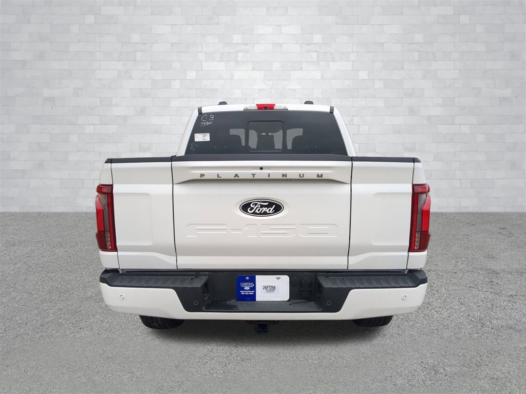 2025 Star White Metallic Tri-Coat 2025 Ford F-150 Platinum 4WD 3.5L PowerBoost Full-Hybrid V6 12" LCD Productivity Touchscreen, 360-Degree Camera, 5G WiFi Hotspot Telematics, Adaptive Cruise Control, Auto LED Headlights, Backup Camera, BlueCruise, Bluetooth w/ Audio Streaming, Lane Keeping System, Leather Seats, Memory Package, Off Road Package, Panoramic Sunroof/Moonroof, Parking Sensors, Post Collision Braking, Power Running Boards, Power Sliding Rear Window, Premium Sound Package, Push Button Start, Remote Start, Reverse Brake Assist, Reverse Sensing, Skid Plate Package, Tow Package, Trailer Package, 4D SuperCrew, 3.5L PowerBoost Full-Hybrid V6, 10-Speed Automatic, 4WD, 4x4 FX4 Off-Road Bodyside Decal, Electronic Locking w/3.73 Axle Ratio, Equipment Group 702A High, FX4 Off-Road Package, GVWR: 7,400 lbs Payload Package, Heads-Up Display, Hill Descent Control, Monotube Rear Shocks, Navigation system: Connected Navigation, Off-Road Tuned Front Shock Absorbers, Radio: B&O Unleashed Sound System by Bang & Olufsen, Rock Crawl Mode, Twin Panel Moonroof. Equipment Group 702A High (Heads-Up Display, Radio: B&O Unleashed Sound System by Bang & Olufsen, and Twin Panel Moonroof), FX4 Off-Road Package (4x4 FX4 Off-Road Bodyside Decal, Hill Descent Control, Monotube Rear Shocks, Off-Road Tuned Front Shock Absorbers, and Rock Crawl Mode), GVWR: 7,400 lbs Payload Package, 4D SuperCrew, 3.5L PowerBoost Full-Hybrid V6, 10-Speed Automatic, 4WD, Electronic Locking w/3.73 Axle Ratio, Navigation system: Connected Navigation, 4-Wheel Disc Brakes, 8 Speakers, ABS brakes, Adjustable pedals, Air Conditioning, Alloy wheels, Auto High-beam Headlights, Auto tilt-away steering wheel, Auto-dimming door mirrors, Auto-dimming Rear-View mirror, Automatic temperature control, Brake assist, Bumpers: body-color, Compass, Delay-off headlights, Driver door bin, Driver vanity mirror, Dual front impact airbags, Dual front side impact airbags, Electronic Stability Control, Emergency communication system: SYNC 4 911 Assist, Front anti-roll bar, Front Bucket Seats, Front Center Armrest, Front dual zone A/C, Front fog lights, Front reading lights, Front wheel independent suspension, Fully automatic headlights, Garage door transmitter, Heated door mirrors, Heated front seats, Heated rear seats, Heated steering wheel, Illuminated entry, Leather steering wheel, Low tire pressure warning, Memory seat, Occupant sensing airbag, Outside temperature display, Overhead airbag, Overhead console, Panic alarm, Passenger door bin, Passenger vanity mirror, Pedal memory, Power door mirrors, Power driver seat, Power passenger seat, Power steering, Power windows, Radio data system, Rain sensing wipers, Rear reading lights, Rear seat center armrest, Rear step bumper, Rear window defroster, Remote keyless entry, Security system, Speed control, Split folding rear seat, Steering wheel memory, Steering wheel mounted audio controls, Tachometer, Telescoping steering wheel, Tilt steering wheel, Traction control, Trip computer, Turn signal indicator mirrors, Unique Multi-Contour Leather Bucket Seats, Variably intermittent wipers, Ventilated front seats, Voltmeter, and Wheels: 20" Painted Gloss Ebony Black Courtesy Ford and Lincoln of Rome 101 Hwy 411 E Rome, Ga 30161 ROMEFORDLINC.COM 706.235.4453. Price includes dealer added accessories.
