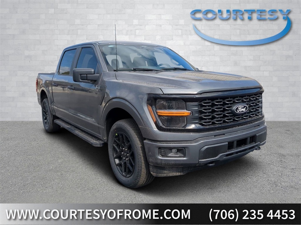 2025 Carbonized Gray Metallic 2025 Ford F-150 STX 4WD 2.7L V6 EcoBoost 12" LCD Productivity Touchscreen, 5G WiFi Hotspot Telematics, Auto LED Headlights, Backup Camera, Blind Spot Monitoring, BLIS w/ Cross Traffic Alert, Bluetooth w/ Audio Streaming, Lane Keeping System, LED Foglights, Parking Sensors, Post Collision Braking, Pre Collision Assist w/ AEB, Reverse Brake Assist, Reverse Sensing, Tow Package, Trailer Package, 4D SuperCrew, 2.7L V6 EcoBoost, 10-Speed Automatic, 4WD, 20" Wheels, 6" Black Running Boards, Black Exterior Badging, Electronic Locking w/3.55 Axle Ratio, Equipment Group 200A Mid, Gray Box Side Decal, GVWR: 6,650 lbs Payload Package, LED Fog Lamps w/LED Cornering Lamp, STX Black Appearance Package, Unique Sport Cloth 40/Console/40 Front-Seats, Wheels: 20" Gloss Black. Equipment Group 200A Mid (LED Fog Lamps w/LED Cornering Lamp), GVWR: 6,650 lbs Payload Package, STX Black Appearance Package (20" Wheels, 6" Black Running Boards, Black Exterior Badging, Gray Box Side Decal, Unique Sport Cloth 40/Console/40 Front-Seats, and Wheels: 20" Gloss Black), 4D SuperCrew, 2.7L V6 EcoBoost, 10-Speed Automatic, 4WD, Electronic Locking w/3.55 Axle Ratio, 4-Wheel Disc Brakes, 6 Speakers, ABS brakes, Air Conditioning, Alloy wheels, Auto High-beam Headlights, Brake assist, Bumpers: body-color, Compass, Delay-off headlights, Driver door bin, Dual front impact airbags, Dual front side impact airbags, Electronic Stability Control, Emergency communication system: SYNC 4 911 Assist, Front anti-roll bar, Front Bucket Seats, Front Center Armrest, Front License Plate Bracket, Front reading lights, Front wheel independent suspension, Fully automatic headlights, Heated door mirrors, Illuminated entry, Low tire pressure warning, Occupant sensing airbag, Outside temperature display, Overhead airbag, Overhead console, Panic alarm, Passenger door bin, Passenger vanity mirror, Power door mirrors, Power steering, Power windows, Radio data system, Rear Parking Sensors, Rear step bumper, Rear window defroster, Remote keyless entry, Security system, Speed control, Split folding rear seat, Steering wheel mounted audio controls, SYNC 4 w/Enhanced Voice Recognition, Tachometer, Telescoping steering wheel, Tilt steering wheel, Traction control, Trip computer, Variably intermittent wipers, and Voltmeter Courtesy Ford and Lincoln of Rome 101 Hwy 411 E Rome, Ga 30161 ROMEFORDLINC.COM 706.235.4453. Price includes dealer added accessories.