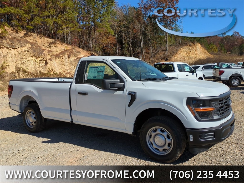 2025 Oxford White 2025 Ford F-150 XL RWD 2.7L V6 EcoBoost Equipment Group 101A Standard, GVWR: 6,220 lb Payload Package, 3.55 Axle Ratio, 4 Speakers, 4-Wheel Disc Brakes, ABS brakes, Air Conditioning, AM/FM radio: SiriusXM with 360L, Auto High-beam Headlights, Brake assist, Cloth 40/20/40 Front Seat, Compass, Delay-off headlights, Driver door bin, Dual front impact airbags, Dual front side impact airbags, Electronic Stability Control, Emergency communication system: SYNC 4 911 Assist, Front anti-roll bar, Front Center Armrest, Front License Plate Bracket, Front reading lights, Front wheel independent suspension, Fully automatic headlights, Heated door mirrors, Illuminated entry, Low tire pressure warning, Occupant sensing airbag, Outside temperature display, Overhead airbag, Overhead console, Panic alarm, Passenger door bin, Passenger vanity mirror, Power door mirrors, Power steering, Power windows, Radio data system, Radio: AM/FM Stereo w/SiriusXM 360L, Rear Parking Sensors, Rear step bumper, Remote keyless entry, Security system, Speed control, Steering wheel mounted audio controls, SYNC 4 w/Enhanced Voice Recognition, Tachometer, Telescoping steering wheel, Tilt steering wheel, Traction control, Trip computer, Variably intermittent wipers, Voltmeter, and Wheels: 17" Silver Steel Courtesy Ford and Lincoln of Rome 101 Hwy 411 E Rome, Ga 30161 ROMEFORDLINC.COM 706.235.4453. Price includes dealer added accessories.