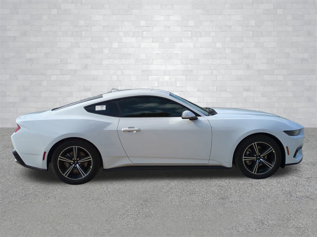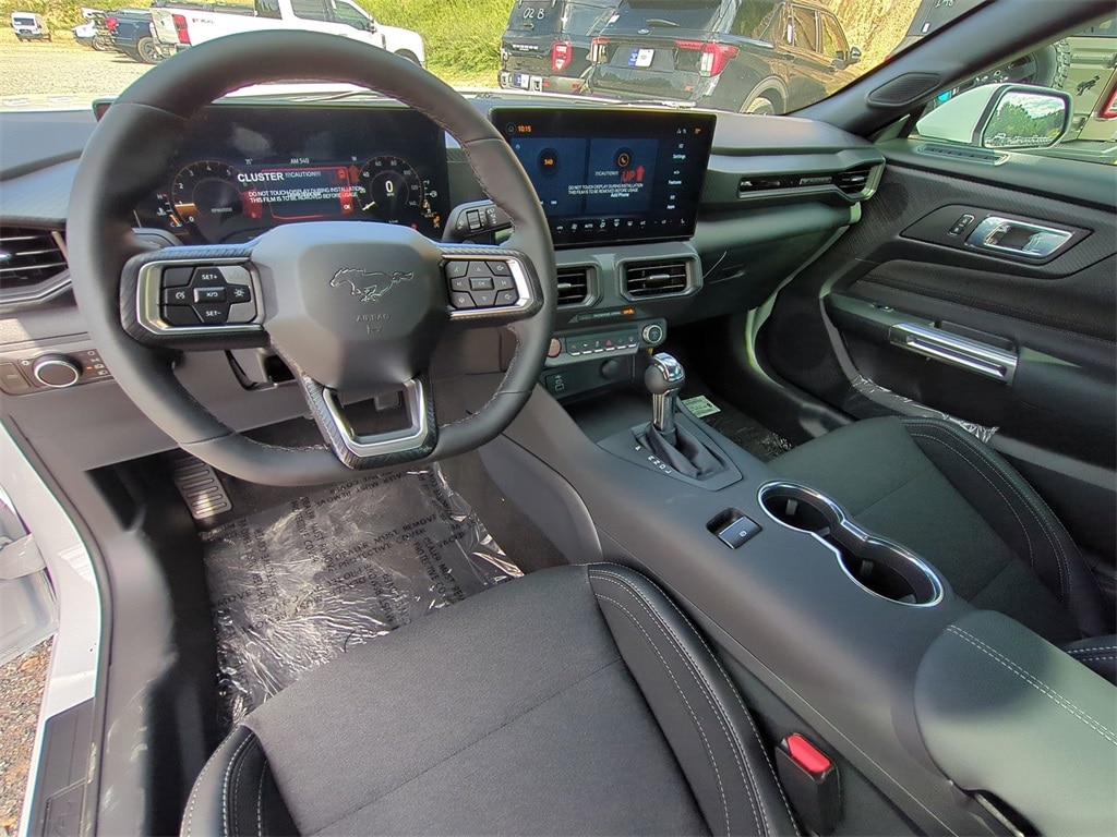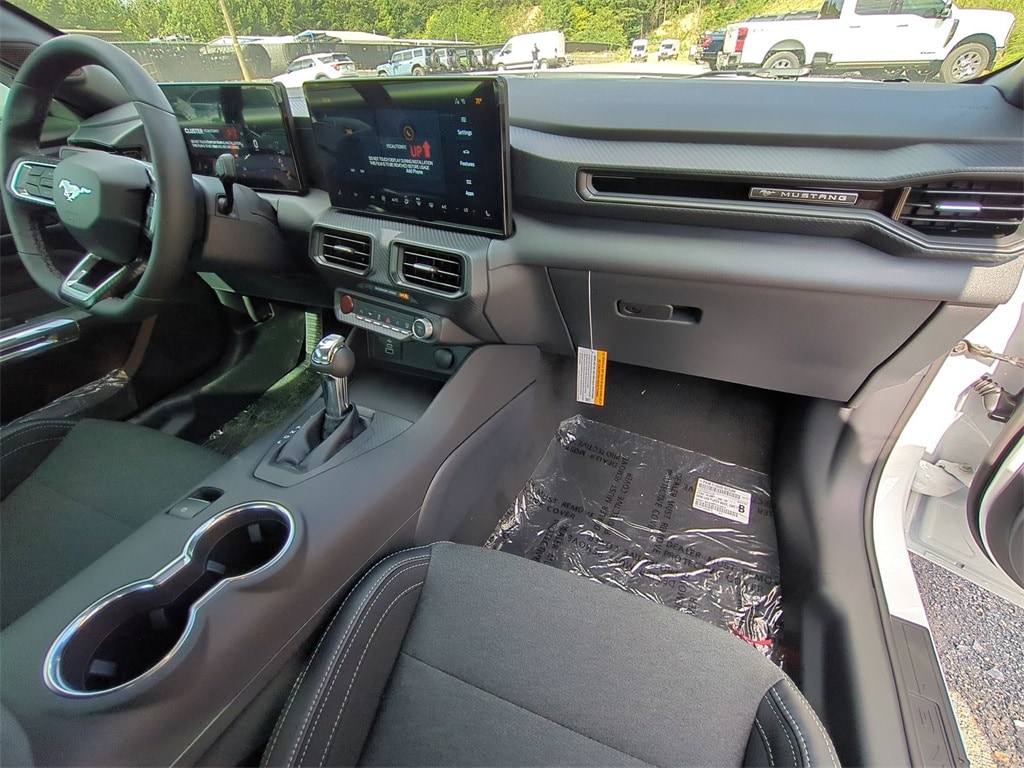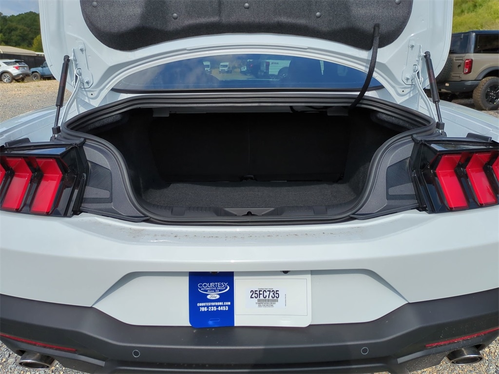 2025 Oxford White 2025 Ford Mustang EcoBoost RWD EcoBoost 2.3L I4 GTDi DOHC Turbocharged VCT 12.4" LCD Digital Driver Cluster, 13.2" LCD Centerstack Touchscreen, 4G WiFi Hotspot Telematics, Auto LED Headlights, Backup Camera, Parking Sensors, Push Button Start, 2D Coupe, EcoBoost 2.3L I4 GTDi DOHC Turbocharged VCT, 10-Speed Automatic, RWD, 9-Speaker Stereo System, ABS brakes, Alloy wheels, Cloth/Vinyl Heated Bucket Seats, Compass, Electronic Stability Control, Equipment Group 101A High Package, Front dual zone A/C, Illuminated entry, Low tire pressure warning, Rain sensing wipers, Remote keyless entry, SiriusXM w/360L & HD Radio, Traction control. Equipment Group 101A High Package (9-Speaker Stereo System, Cloth/Vinyl Heated Bucket Seats, and SiriusXM w/360L & HD Radio), 2D Coupe, EcoBoost 2.3L I4 GTDi DOHC Turbocharged VCT, 10-Speed Automatic, RWD, ABS brakes, Alloy wheels, Compass, Electronic Stability Control, Front dual zone A/C, Illuminated entry, Low tire pressure warning, Rain sensing wipers, Remote keyless entry, Traction control, 4-Wheel Disc Brakes, 6 Speakers, Air Conditioning, AM/FM radio, AM/FM Stereo, Auto High-beam Headlights, Automatic temperature control, Brake assist, Bumpers: body-color, Cloth Bucket Seats, Delay-off headlights, Driver door bin, Driver vanity mirror, Dual front impact airbags, Dual front side impact airbags, Emergency communication system: 911 Assist, Exterior Parking Camera Rear, Four wheel independent suspension, Front anti-roll bar, Front Bucket Seats, Front Center Armrest, Front reading lights, Fully automatic headlights, Knee airbag, Leather Shift Knob, Occupant sensing airbag, Outside temperature display, Overhead airbag, Overhead console, Panic alarm, Passenger door bin, Passenger vanity mirror, Power door mirrors, Power steering, Power windows, Radio data system, Rear anti-roll bar, Rear Parking Sensors, Rear window defroster, Speed control, Speed-sensing steering, Speed-Sensitive Wipers, Split folding rear seat, Sport steering wheel, Steering wheel mounted audio controls, SYNC 4, Tachometer, Telescoping steering wheel, Tilt steering wheel, Trip computer, Voltmeter, and Wheels: 18" x 8" Machined-Face Aluminum Courtesy Ford and Lincoln of Rome 101 Hwy 411 E Rome, Ga 30161 ROMEFORDLINC.COM 706.235.4453.