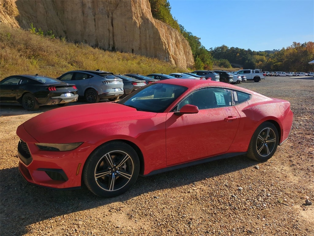 2025 Race Red 2025 Ford Mustang EcoBoost RWD EcoBoost 2.3L I4 GTDi DOHC Turbocharged VCT 12.4" LCD Digital Driver Cluster, 13.2" LCD Centerstack Touchscreen, Auto LED Headlights, Backup Camera, Parking Sensors, 2D Coupe, EcoBoost 2.3L I4 GTDi DOHC Turbocharged VCT, 10-Speed Automatic, RWD, 9-Speaker Stereo System, ABS brakes, Alloy wheels, Cloth/Vinyl Heated Bucket Seats, Compass, Electronic Stability Control, Equipment Group 101A High Package, Front dual zone A/C, Illuminated entry, Low tire pressure warning, Remote keyless entry, SiriusXM w/360L & HD Radio, Traction control. Equipment Group 101A High Package (9-Speaker Stereo System, Cloth/Vinyl Heated Bucket Seats, and SiriusXM w/360L & HD Radio), 2D Coupe, EcoBoost 2.3L I4 GTDi DOHC Turbocharged VCT, 10-Speed Automatic, RWD, ABS brakes, Alloy wheels, Compass, Electronic Stability Control, Front dual zone A/C, Illuminated entry, Low tire pressure warning, Remote keyless entry, Traction control, 4-Wheel Disc Brakes, 6 Speakers, Air Conditioning, AM/FM radio, AM/FM Stereo, Auto High-beam Headlights, Automatic temperature control, Brake assist, Bumpers: body-color, Cloth Bucket Seats, Delay-off headlights, Driver door bin, Driver vanity mirror, Dual front impact airbags, Dual front side impact airbags, Emergency communication system: 911 Assist, Exterior Parking Camera Rear, Four wheel independent suspension, Front anti-roll bar, Front Bucket Seats, Front Center Armrest, Front reading lights, Fully automatic headlights, Knee airbag, Leather Shift Knob, Occupant sensing airbag, Outside temperature display, Overhead airbag, Overhead console, Panic alarm, Passenger door bin, Passenger vanity mirror, Power door mirrors, Power steering, Power windows, Radio data system, Rain sensing wipers, Rear anti-roll bar, Rear Parking Sensors, Rear window defroster, Speed control, Speed-sensing steering, Speed-Sensitive Wipers, Split folding rear seat, Sport steering wheel, Steering wheel mounted audio controls, SYNC 4, Tachometer, Telescoping steering wheel, Tilt steering wheel, Trip computer, Voltmeter, and Wheels: 18" x 8" Machined-Face Aluminum Courtesy Ford and Lincoln of Rome 101 Hwy 411 E Rome, Ga 30161 ROMEFORDLINC.COM 706.235.4453.