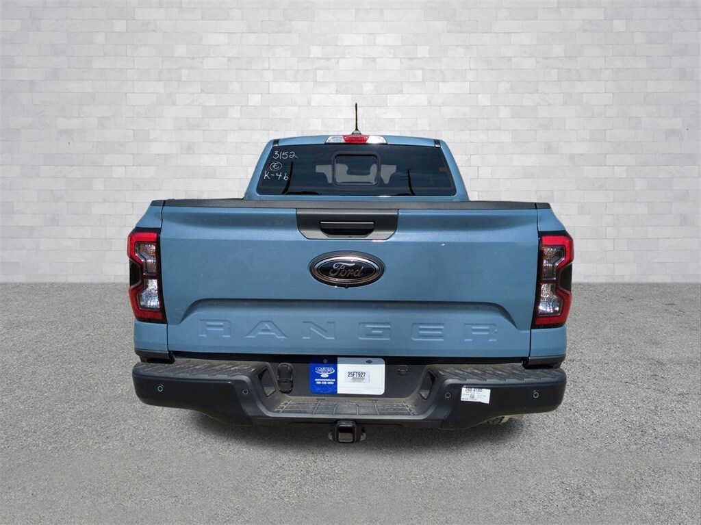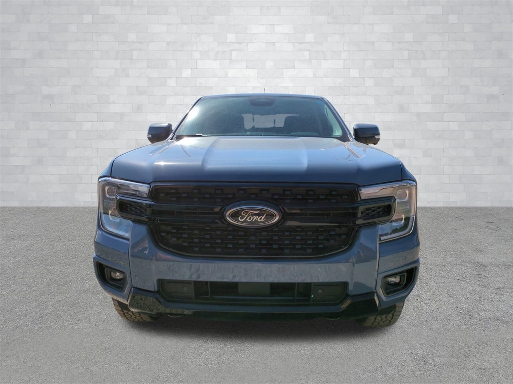 2025 Azure Gray Metallic Tri-Coat 2025 Ford Ranger Lariat 4WD EcoBoost 2.3L I4 GTDi DOHC Turbocharged VCT 4WD. Sport Appearance Package (Gray Painted Center Bar & Grille Surround, Gray Painted Front Fascia & Rear Bumper, and Sport Box Decal), 4WD, 10 Speakers, 3.73 Axle Ratio, 4-Wheel Disc Brakes, ABS brakes, Air Conditioning, Alloy wheels, AM/FM radio: SiriusXM, Auto High-beam Headlights, Auto-dimming Rear-View mirror, Automatic temperature control, Brake assist, Compass, Delay-off headlights, Driver door bin, Driver vanity mirror, Dual front impact airbags, Dual front side impact airbags, Electronic Stability Control, Emergency communication system: SYNC 4 911 Assist, Front anti-roll bar, Front Bucket Seats, Front Center Armrest, Front dual zone A/C, Front fog lights, Front reading lights, Front wheel independent suspension, Fully automatic headlights, Garage door transmitter, Heated door mirrors, Heated front seats, Heated steering wheel, Illuminated entry, Internet access capable: FordPass Connect 4G, Leather Shift Knob, Leather steering wheel, Leather-Trimmed Front Heated Bucket Seats, Low tire pressure warning, Memory seat, Navigation system: Connected Navigation, Occupant sensing airbag, Outside temperature display, Overhead airbag, Overhead console, Panic alarm, Passenger door bin, Passenger vanity mirror, Power door mirrors, Power driver seat, Power passenger seat, Power steering, Power windows, Radio: B&O Sound System by Bang & Olufsen, Rain sensing wipers, Rear reading lights, Rear seat center armrest, Rear step bumper, Rear window defroster, Remote keyless entry, Security system, SiriusXM Satellite Radio, Speed control, Speed-sensing steering, Steering wheel mounted audio controls, SYNC 4A w/Connected Navigation, Telescoping steering wheel, Tilt steering wheel, Traction control, Trip computer, Turn signal indicator mirrors, Variably intermittent wipers, Voltmeter, and Wheels: 18" Machined Aluminum w/Dark Pockets Courtesy Ford and Lincoln of Rome 101 Hwy 411 E Rome, Ga 30161 ROMEFORDLINC.COM 706.235.4453.