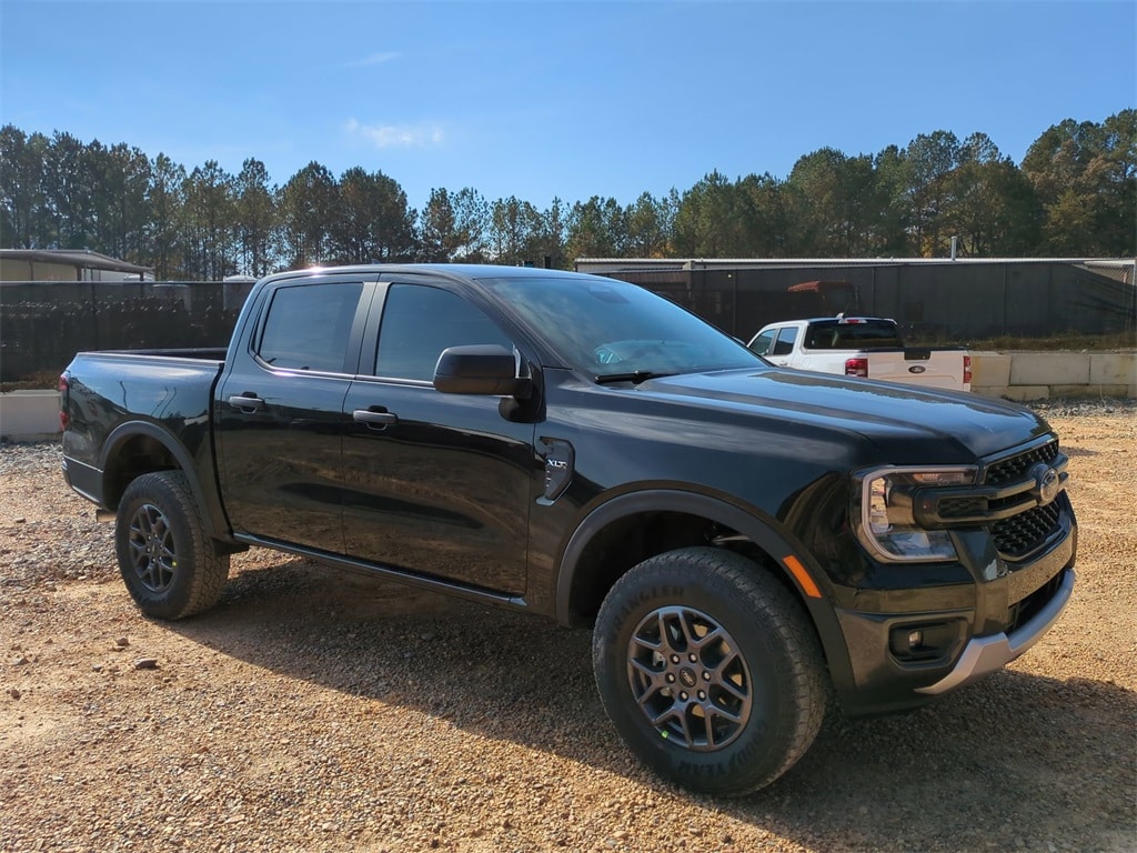 2025 Shadow Black 2025 Ford Ranger XLT 4WD EcoBoost 2.3L I4 GTDi DOHC Turbocharged VCT 4WD. Sport Appearance Package (Gray Painted Center Bar & Grille Surround, Gray Painted Front Fascia & Rear Bumper, and Sport Box Decal), 4WD, 3.73 Axle Ratio, 4-Wheel Disc Brakes, 6 Speakers, ABS brakes, Air Conditioning, Alloy wheels, AM/FM radio: SiriusXM, AM/FM Stereo, Auto High-beam Headlights, Auto-dimming Rear-View mirror, Brake assist, Cloth Front Bucket Seats, Compass, Delay-off headlights, Driver door bin, Driver vanity mirror, Dual front impact airbags, Dual front side impact airbags, Electronic Stability Control, Emergency communication system: SYNC 4 911 Assist, Front anti-roll bar, Front Bucket Seats, Front Center Armrest, Front fog lights, Front reading lights, Front wheel independent suspension, Fully automatic headlights, Illuminated entry, Leather Shift Knob, Low tire pressure warning, Navigation system: Connected Navigation, Occupant sensing airbag, Outside temperature display, Overhead airbag, Overhead console, Panic alarm, Passenger door bin, Passenger vanity mirror, Power door mirrors, Power steering, Power windows, Rear reading lights, Rear seat center armrest, Rear step bumper, Rear window defroster, Remote keyless entry, Security system, SiriusXM Satellite Radio, Speed control, Speed-sensing steering, Steering wheel mounted audio controls, SYNC 4A w/Connected Navigation, Telescoping steering wheel, Tilt steering wheel, Traction control, Trip computer, Variably intermittent wipers, Voltmeter, and Wheels: 17" Gray-Painted Aluminum Courtesy Ford and Lincoln of Rome 101 Hwy 411 E Rome, Ga 30161 ROMEFORDLINC.COM 706.235.4453.