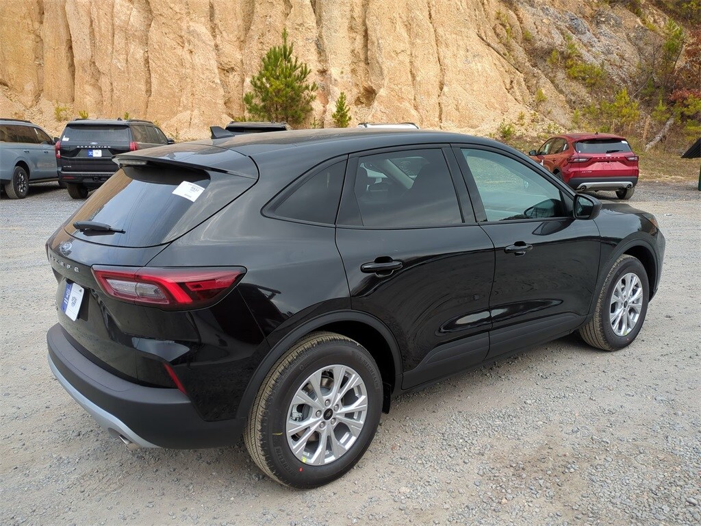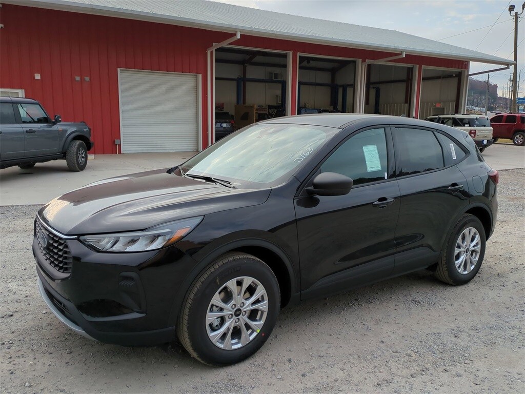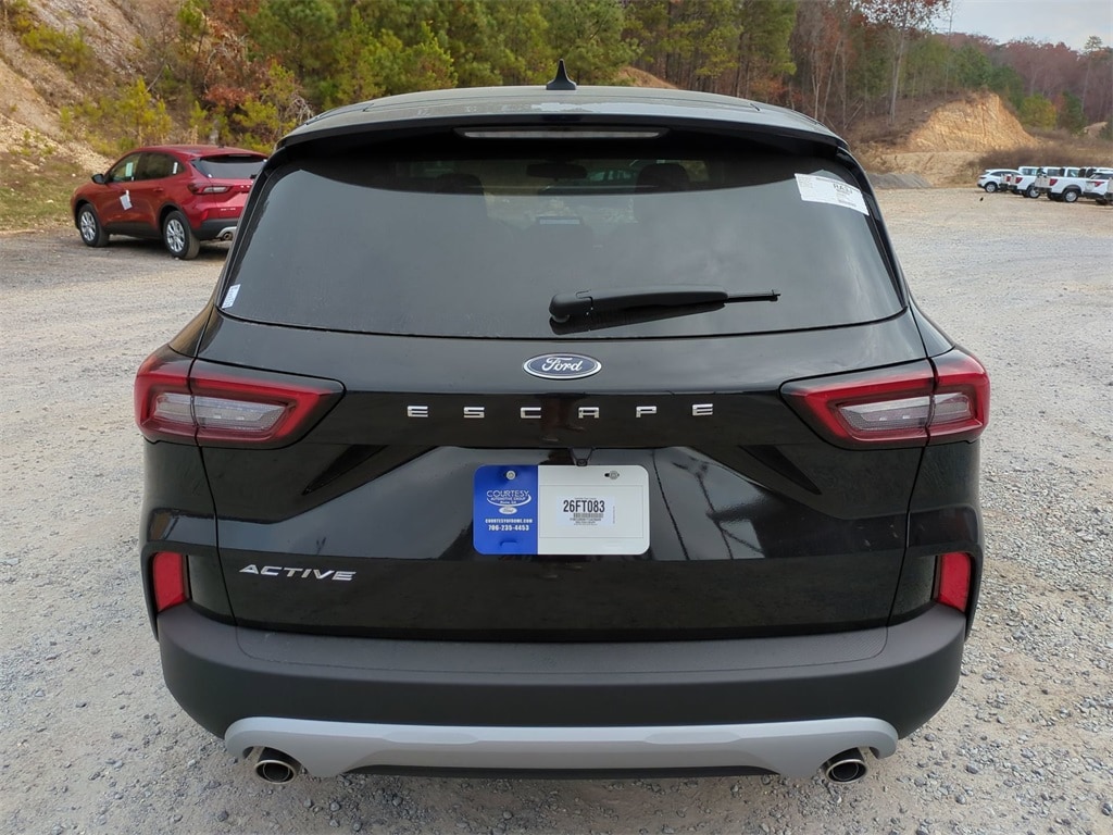 2026 agate black metallic 2026 Ford Escape Active FWD 1.5L EcoBoost 3.81 Axle Ratio, 4-Way Manual Front Passenger Seat, 4-Wheel Disc Brakes, 6 Speakers, 6-Way Manual Driver Seat, ABS brakes, Air Conditioning, Alloy wheels, AM/FM radio: SiriusXM 360L, Auto High-beam Headlights, Automatic temperature control, Brake assist, Bumpers: body-color, Compass, Delay-off headlights, Driver door bin, Driver vanity mirror, Dual front impact airbags, Dual front side impact airbags, Electronic Stability Control, Emergency communication system: SYNC 4 911 Assist, Ford App, Four wheel independent suspension, Front anti-roll bar, Front Bucket Seats, Front Center Armrest, Front dual zone A/C, Front reading lights, Fully automatic headlights, Illuminated entry, Knee airbag, Low tire pressure warning, Occupant sensing airbag, Outside temperature display, Overhead airbag, Overhead console, Panic alarm, Passenger door bin, Passenger vanity mirror, Power door mirrors, Power steering, Power windows, Radio data system, Radio: AM/FM Stereo with SiriusXM 360L, Rear anti-roll bar, Rear reading lights, Rear seat center armrest, Rear window defroster, Rear window wiper, Remote keyless entry, Speed control, Speed-sensing steering, Speed-Sensitive Wipers, Split folding rear seat, Spoiler, Steering wheel mounted audio controls, SYNC 4, Tachometer, Telescoping steering wheel, Tilt steering wheel, Traction control, Trip computer, Unique Cloth Front Bucket Seats, Variably intermittent wipers, and Wheels: 17" Shadow Silver-Painted Aluminum Courtesy Ford and Lincoln of Rome 101 Hwy 411 E Rome, Ga 30161 ROMEFORDLINC.COM 706.235.4453.