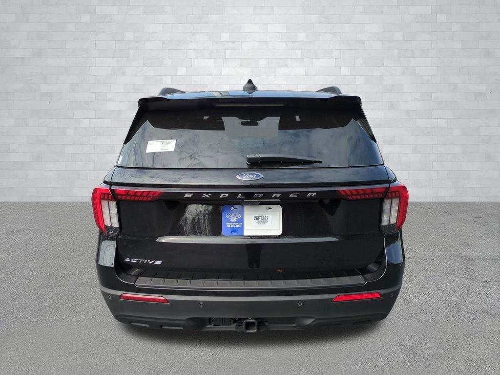 2026 Black Metallic 2026 Ford Explorer Active RWD 2.3L EcoBoost I-4 3rd row seats: bench, 4-Wheel Disc Brakes, 6 Speakers, ABS brakes, Air Conditioning, Alloy wheels, AM/FM radio: SiriusXM with 360L, AM/FM Stereo, Apple CarPlay/Android Auto, Auto High-beam Headlights, Automatic temperature control, Brake assist, Bumpers: body-color, Compass, Delay-off headlights, Driver door bin, Driver vanity mirror, Dual front impact airbags, Dual front side impact airbags, Electronic Stability Control, Emergency communication system: 911 Assist, Exterior Parking Camera Rear, Four wheel independent suspension, Front anti-roll bar, Front Bucket Seats, Front Center Armrest, Front dual zone A/C, Front reading lights, Fully automatic headlights, Heated door mirrors, Illuminated entry, Knee airbag, Low tire pressure warning, Navigation System, Occupant sensing airbag, Outside temperature display, Overhead airbag, Overhead console, Panic alarm, Passenger door bin, Passenger vanity mirror, Power door mirrors, Power driver seat, Power steering, Power windows, Rear air conditioning, Rear anti-roll bar, Rear reading lights, Rear window defroster, Rear window wiper, Remote keyless entry, Security system, Speed control, Speed-sensing steering, Speed-Sensitive Wipers, Split folding rear seat, Spoiler, Steering wheel mounted audio controls, Tachometer, Telescoping steering wheel, Tilt steering wheel, Traction control, Trip computer, Variably intermittent wipers, and Wheels: 18" Sparkle Silver-Painted Aluminum Courtesy Ford and Lincoln of Rome 101 Hwy 411 E Rome, Ga 30161 ROMEFORDLINC.COM 706.235.4453.