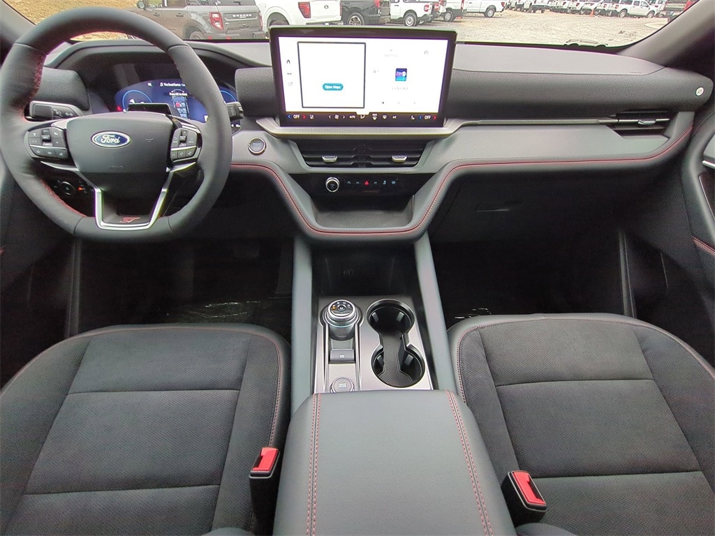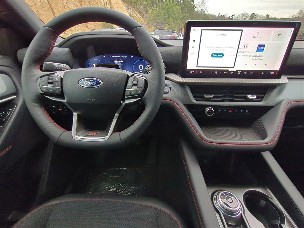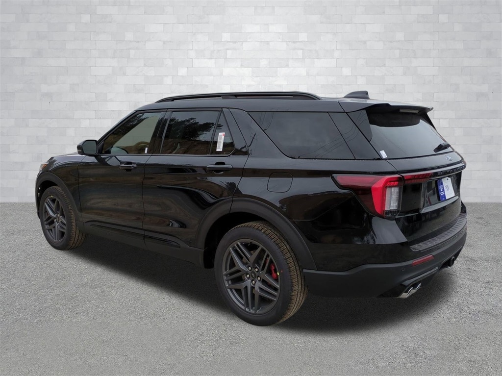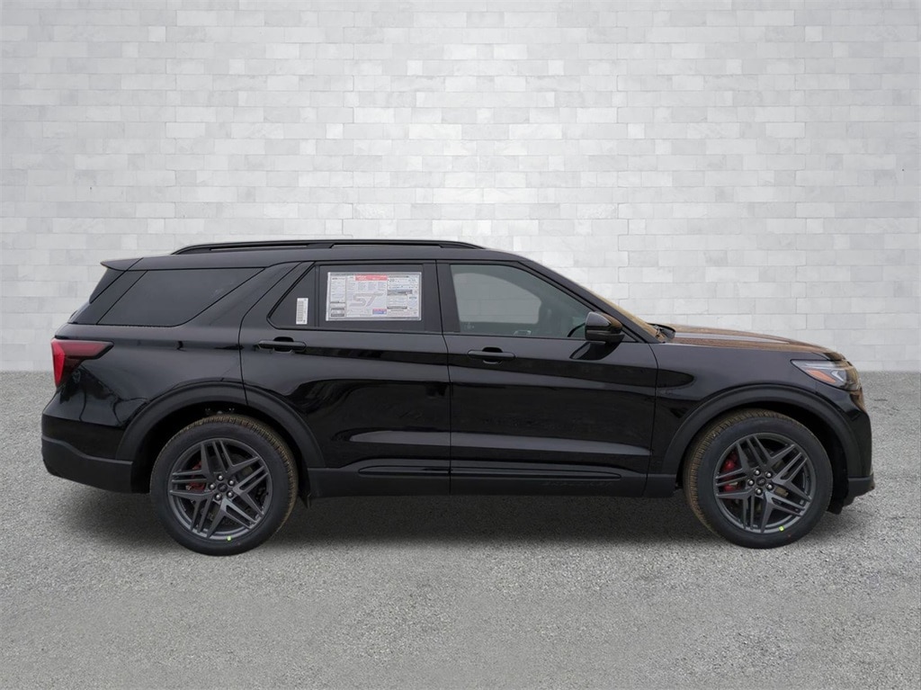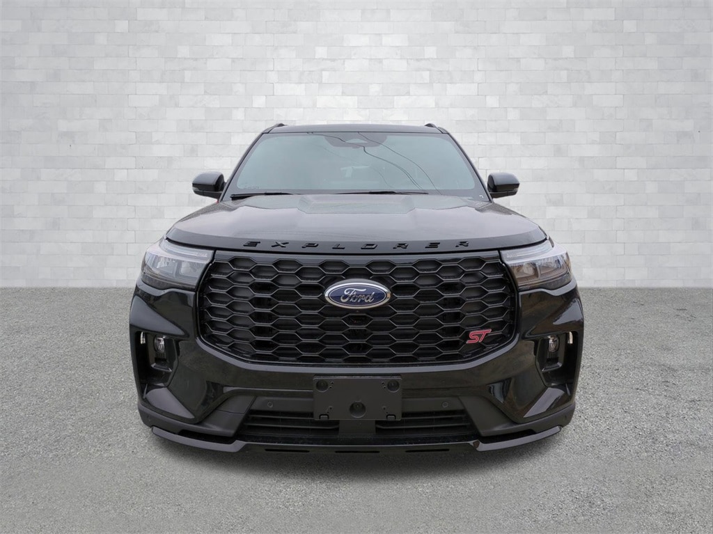 2026 Agate Black Metallic 2026 Ford Explorer ST 4WD 3.0L EcoBoost V6 4WD. 4WD, 10 Speakers, 3rd row seats: bench, 4-Wheel Disc Brakes, ABS brakes, Air Conditioning, Alloy wheels, AM/FM radio: SiriusXM with 360L, Apple CarPlay/Android Auto, Auto High-beam Headlights, Auto-dimming door mirrors, Auto-dimming Rear-View mirror, Automatic temperature control, Brake assist, Bumpers: body-color, Compass, Delay-off headlights, Driver door bin, Driver vanity mirror, Dual front impact airbags, Dual front side impact airbags, Electronic Stability Control, Emergency communication system: 911 Assist, Exterior Parking Camera Rear, Four wheel independent suspension, Front anti-roll bar, Front Bucket Seats, Front Center Armrest, Front dual zone A/C, Front fog lights, Front reading lights, Fully automatic headlights, Garage door transmitter, Heated door mirrors, Heated front seats, Heated rear seats, Heated steering wheel, Illuminated entry, Knee airbag, Leather steering wheel, Low tire pressure warning, Memory seat, Navigation System, Occupant sensing airbag, Outside temperature display, Overhead airbag, Overhead console, Panic alarm, Passenger door bin, Passenger vanity mirror, Power door mirrors, Power driver seat, Power Liftgate, Power passenger seat, Power steering, Power windows, Radio: B&O Sound System by Bang and Olufsen, Rain sensing wipers, Rear air conditioning, Rear anti-roll bar, Rear reading lights, Rear window defroster, Rear window wiper, Remote keyless entry, Security system, Speed control, Speed-sensing steering, Speed-Sensitive Wipers, Split folding rear seat, Spoiler, Sport steering wheel, Steering wheel mounted audio controls, Tachometer, Telescoping steering wheel, Tilt steering wheel, Traction control, Trip computer, Turn signal indicator mirrors, Variably intermittent wipers, Ventilated front seats, and Wheels: 21" Magnetite-Painted Aluminum Courtesy Ford and Lincoln of Rome 101 Hwy 411 E Rome, Ga 30161 ROMEFORDLINC.COM 706.235.4453.