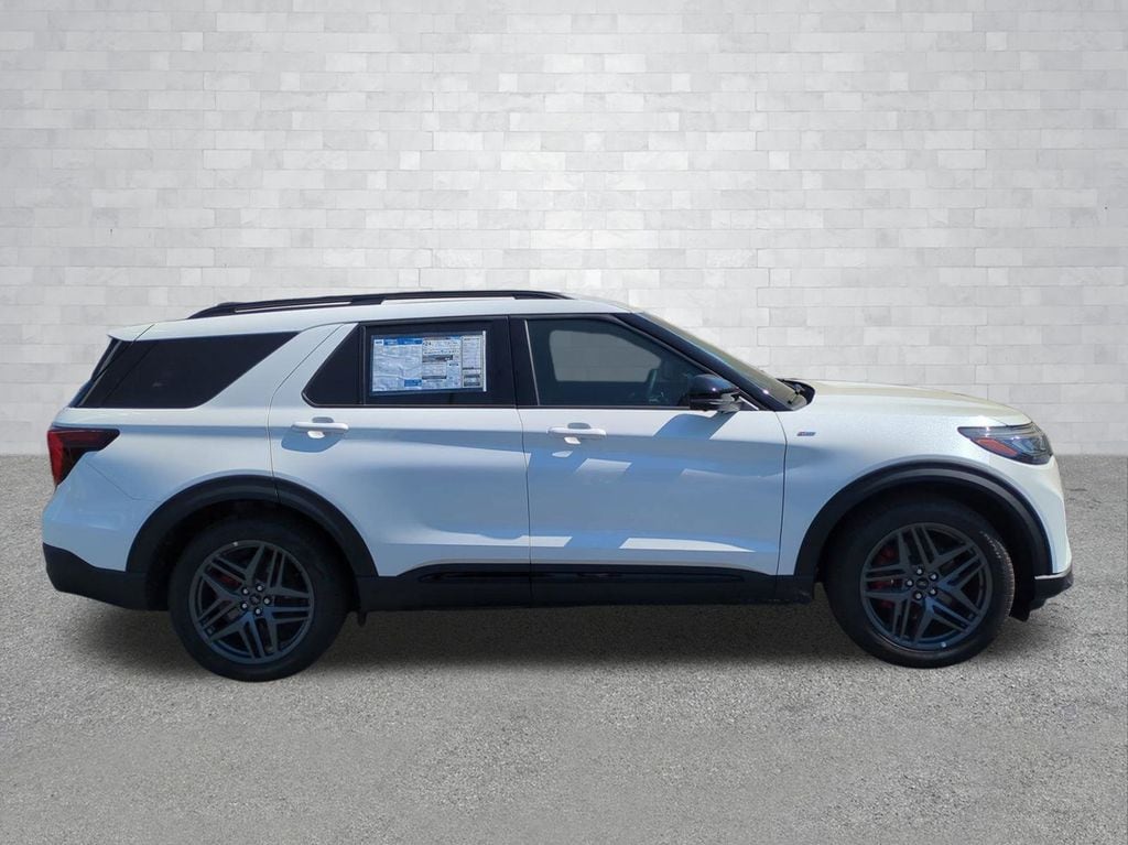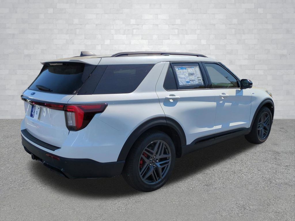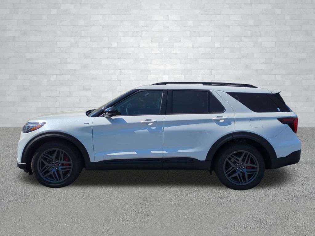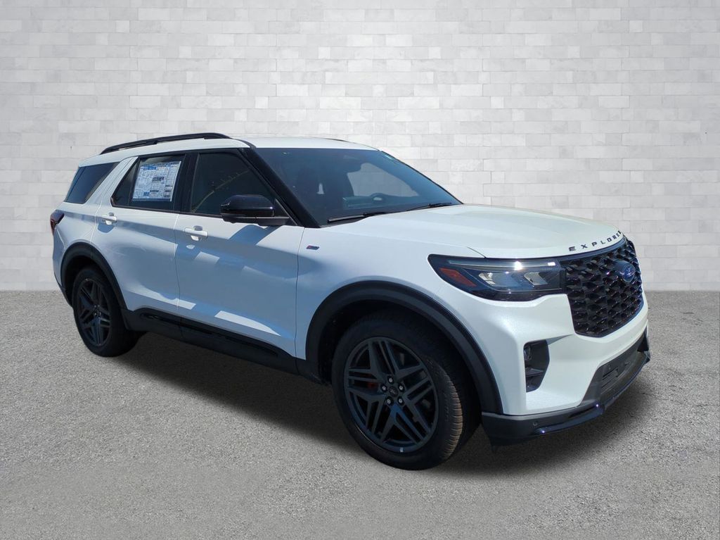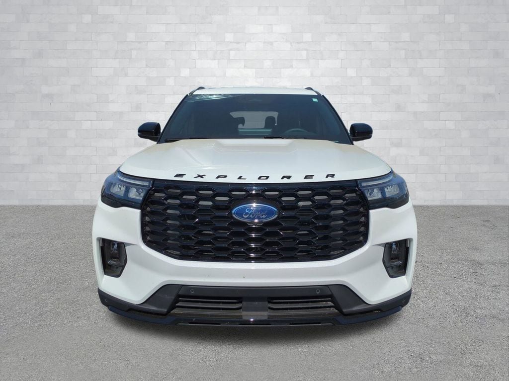 2026 White Metallic 2026 Ford Explorer ST-Line RWD 2.3L EcoBoost I-4 Equipment Group 300A Standard Package (Heated Unique Cloth Captain's Chairs, Radio: B&O Sound System by Bang and Olufsen, and Wheels: 20" Ebony-Painted Machined Aluminum), Premium Package (110V/150W AC Power Outlet, 2nd Row Heated Seats, Ambient Lighting, Auto-Dimming Interior Rear-View Mirror, Manual-Folding Sideview Mirrors, Memory Driver's Seat, and Rain-Sensing Wipers (front Only)), ST-Line Street Pack (Performance Brakes, Red Painted Performance Front and Rear Brake Calipers, and Wheels: 21" Magnetite-Painted Aluminum), 10 Speakers, 2nd Row Captain's Chairs w/E-Z Entry and Armrest, 3rd row seats: bench, 4-Wheel Disc Brakes, ABS brakes, Air Conditioning, Alloy wheels, AM/FM radio: SiriusXM with 360L, Apple CarPlay/Android Auto, Auto High-beam Headlights, Automatic temperature control, Brake assist, Bumpers: body-color, Compass, Delay-off headlights, Driver door bin, Driver vanity mirror, Dual front impact airbags, Dual front side impact airbags, Electronic Stability Control, Emergency communication system: 911 Assist, Exterior Parking Camera Rear, Four wheel independent suspension, Front anti-roll bar, Front Bucket Seats, Front Center Armrest, Front dual zone A/C, Front fog lights, Front reading lights, Fully automatic headlights, Garage door transmitter, Heated door mirrors, Heated front seats, Heated steering wheel, Illuminated entry, Knee airbag, Leather steering wheel, Low tire pressure warning, Navigation System, Occupant sensing airbag, Outside temperature display, Overhead airbag, Overhead console, Panic alarm, Passenger door bin, Passenger vanity mirror, Power door mirrors, Power driver seat, Power Liftgate, Power passenger seat, Power steering, Power windows, Rear air conditioning, Rear anti-roll bar, Rear reading lights, Rear window defroster, Rear window wiper, Remote keyless entry, Security system, Speed control, Speed-sensing steering, Speed-Sensitive Wipers, Split folding rear seat, Spoiler, Steering wheel mounted audio controls, Tachometer, Telescoping steering wheel, Tilt steering wheel, Traction control, Trip computer, and Variably intermittent wipers Courtesy Ford and Lincoln of Rome 101 Hwy 411 E Rome, Ga 30161 ROMEFORDLINC.COM 706.235.4453.