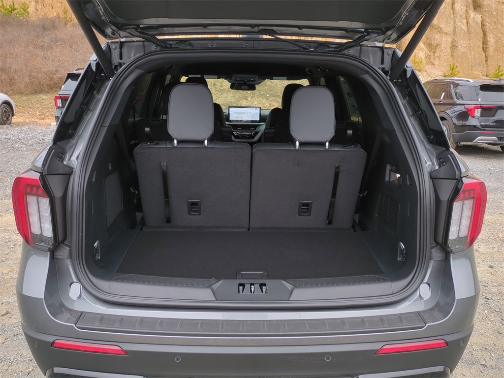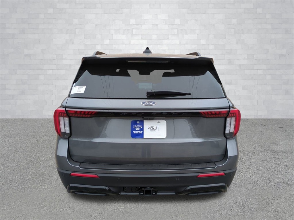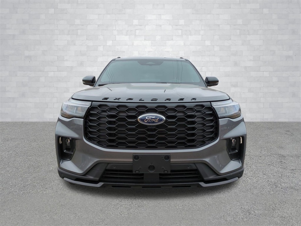 2026 Carbonized Gray Metallic 2026 Ford Explorer ST-Line RWD 2.3L EcoBoost I-4 10 Speakers, 3rd row seats: bench, 4-Wheel Disc Brakes, ABS brakes, Air Conditioning, Alloy wheels, AM/FM radio: SiriusXM with 360L, Apple CarPlay/Android Auto, Auto High-beam Headlights, Automatic temperature control, Brake assist, Bumpers: body-color, Compass, Delay-off headlights, Driver door bin, Driver vanity mirror, Dual front impact airbags, Dual front side impact airbags, Electronic Stability Control, Emergency communication system: 911 Assist, Exterior Parking Camera Rear, Four wheel independent suspension, Front anti-roll bar, Front Bucket Seats, Front Center Armrest, Front dual zone A/C, Front fog lights, Front reading lights, Fully automatic headlights, Garage door transmitter, Heated door mirrors, Heated front seats, Heated steering wheel, Heated Unique Cloth Captain's Chairs, Illuminated entry, Knee airbag, Leather steering wheel, Low tire pressure warning, Navigation System, Occupant sensing airbag, Outside temperature display, Overhead airbag, Overhead console, Panic alarm, Passenger door bin, Passenger vanity mirror, Power door mirrors, Power driver seat, Power Liftgate, Power passenger seat, Power steering, Power windows, Radio: B&O Sound System by Bang and Olufsen, Rear air conditioning, Rear anti-roll bar, Rear reading lights, Rear window defroster, Rear window wiper, Remote keyless entry, Security system, Speed control, Speed-sensing steering, Speed-Sensitive Wipers, Split folding rear seat, Spoiler, Steering wheel mounted audio controls, Tachometer, Telescoping steering wheel, Tilt steering wheel, Traction control, Trip computer, Variably intermittent wipers, and Wheels: 20" Ebony-Painted Machined Aluminum Courtesy Ford and Lincoln of Rome 101 Hwy 411 E Rome, Ga 30161 ROMEFORDLINC.COM 706.235.4453.