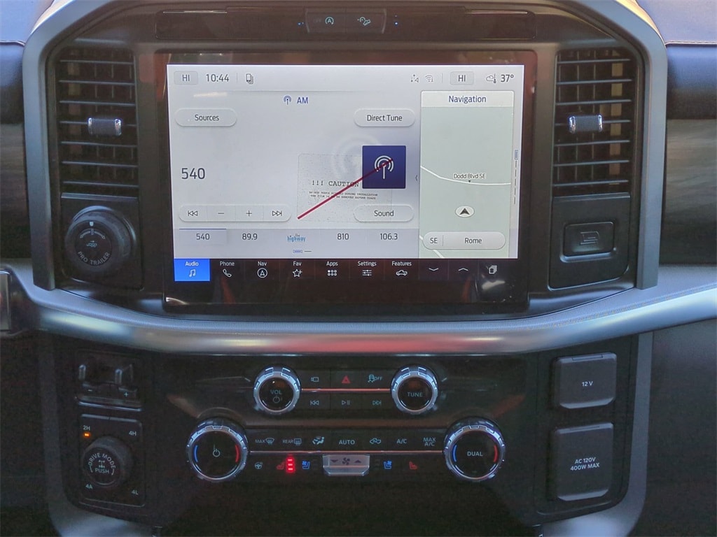 2026 Star White Metallic Tri-Coat 2026 Ford F-150 Lariat 4WD 5.0L V8 4WD. Ford Connectivity Package (1-Year Included), Internet access capable: 5G Modem - Ford Connectivity Package, 4WD, 3.31 Axle Ratio, 4-Wheel Disc Brakes, 8 Speakers, ABS brakes, Air Conditioning, Alloy wheels, AM/FM radio: SiriusXM with 360L, Auto High-beam Headlights, Auto-dimming door mirrors, Auto-dimming Rear-View mirror, Automatic temperature control, Brake assist, Bumpers: chrome, Chrome wheels, Compass, Delay-off headlights, Driver door bin, Driver vanity mirror, Dual front impact airbags, Dual front side impact airbags, Electronic Stability Control, Emergency communication system: SYNC 4 911 Assist, Front anti-roll bar, Front Bucket Seats, Front Center Armrest, Front dual zone A/C, Front fog lights, Front reading lights, Front wheel independent suspension, Fully automatic headlights, Garage door transmitter, Heated door mirrors, Heated front seats, Heated steering wheel, Illuminated entry, Low tire pressure warning, Memory seat, Navigation system: Connected Navigation, Occupant sensing airbag, Outside temperature display, Overhead airbag, Overhead console, Panic alarm, Passenger door bin, Passenger vanity mirror, Power door mirrors, Power driver seat, Power passenger seat, Power steering, Power windows, Radio data system, Radio: B&O Sound System by Bang and Olufsen, Rain sensing wipers, Rear reading lights, Rear seat center armrest, Rear step bumper, Rear window defroster, Remote keyless entry, Security system, Speed control, Split folding rear seat, Steering wheel mounted audio controls, SYNC 4 with Enhanced Voice Recognition, Tachometer, Telescoping steering wheel, Tilt steering wheel, Traction control, Trip computer, Turn signal indicator mirrors, Variably intermittent wipers, Ventilated front seats, and Wheels: 18" Chrome-Like PVD Courtesy Ford and Lincoln of Rome 101 Hwy 411 E Rome, Ga 30161 ROMEFORDLINC.COM 706.235.4453.
