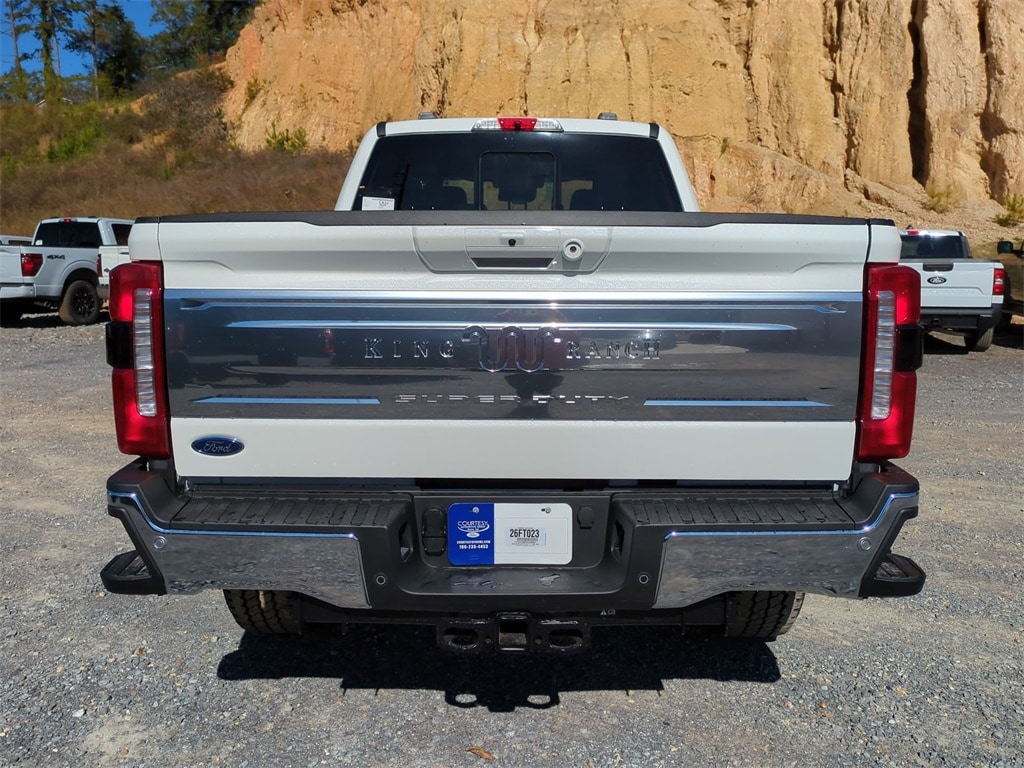 2026 Star White 2026 Ford F-250SD King Ranch 4WD 6.7L High Output Power Stroke V8 Diesel 12" LCD Productivity Touchscreen, 360-Degree Camera, 5G WiFi Hotspot Telematics, Adaptive Cruise Control, Backup Camera, Bluetooth w/ Audio Streaming, King Ranch Package, Leather Seats, Off Road Package, Panoramic Sunroof/Moonroof, Parking Sensors, Power Mirror Package, Power Package, Power Running Boards, Power Sliding Rear Window, Premium Sound Package, Remote Start, Reverse Brake Assist, Reverse Sensing, Skid Plate Package, Tow Package, Trailer Package, Wireless Charging Pad, 4D Crew Cab, 6.7L High Output Power Stroke V8 Diesel, 10-Speed Automatic, 4WD, 410 Amp Dual Alternators, ABS brakes, Alloy wheels, Compass, Electronic Stability Control, Electronic-Locking w/3.31 Axle Ratio, Engine Block Heater, F-250 >10K GVWR Package, Ford Connectivity Package (1-Year Included), Front dual zone A/C, FX4 Off-Road Package, Heated door mirrors, Heated front seats, Heated rear seats, Hill Descent Control, Illuminated entry, Internet access capable: 5G Modem - Ford Connectivity Package, Low tire pressure warning, Navigation system: Connected Navigation, Off-Road Specifically Tuned Shock Absorbers, Order Code 700A, Radio: B&O Unleashed Sound System by Bang & Olufsen, Remote keyless entry, SiriusXM w/360L, SYNC 4 w/Enhanced Voice Recognition, Tough Bed Spray-In Bedliner, Traction control, Twin Panel Power Moonroof, Unique FX4 Off-Road Box Decal. F-250 >10K GVWR Package, Ford Connectivity Package (1-Year Included), FX4 Off-Road Package (Hill Descent Control, Off-Road Specifically Tuned Shock Absorbers, and Unique FX4 Off-Road Box Decal), Internet access capable: 5G Modem - Ford Connectivity Package, Order Code 700A, 4D Crew Cab, 6.7L High Output Power Stroke V8 Diesel, 10-Speed Automatic, 4WD, 410 Amp Dual Alternators, ABS brakes, Alloy wheels, Compass, Electronic Stability Control, Electronic-Locking w/3.31 Axle Ratio, Engine Block Heater, Front dual zone A/C, Heated door mirrors, Heated front seats, Heated rear seats, Illuminated entry, Low tire pressure warning, Navigation system: Connected Navigation, Radio: B&O Unleashed Sound System by Bang & Olufsen, Remote keyless entry, SiriusXM w/360L, SYNC 4 w/Enhanced Voice Recognition, Tough Bed Spray-In Bedliner, Traction control, Twin Panel Power Moonroof, 14 Speakers, 4-Wheel Disc Brakes, Adjustable pedals, Air Conditioning, AM/FM radio: SiriusXM with 360L, Auto High-beam Headlights, Auto tilt-away steering wheel, Auto-dimming Rear-View mirror, Automatic temperature control, Brake assist, Delay-off headlights, Driver door bin, Driver vanity mirror, Dual front impact airbags, Dual front side impact airbags, Emergency communication system: SYNC 4 911 Assist, Flow-Through Console, Front anti-roll bar, Front Bucket Seats, Front Center Armrest, Front fog lights, Front reading lights, Fully automatic headlights, Garage door transmitter, Heads-Up Display, Heated steering wheel, Leather steering wheel, Memory seat, Outside temperature display, Overhead airbag, Overhead console, Panic alarm, Passenger door bin, Passenger vanity mirror, Pedal memory, Power door mirrors, Power driver seat, Power passenger seat, Power steering, Power windows, Rain sensing wipers, Rear reading lights, Rear seat center armrest, Rear step bumper, Rear window defroster, Security system, Speed control, Split folding rear seat, Steering wheel memory, Steering wheel mounted A/C controls, Steering wheel mounted audio controls, Tachometer, Telescoping steering wheel, Tilt steering wheel, Trip computer, Turn signal indicator mirrors, Unique King Ranch Leather 40/Console/40 Seats, Ventilated front seats, and Wheels: 20" Bright Machined Aluminum Courtesy Ford and Lincoln of Rome 101 Hwy 411 E Rome, Ga 30161 ROMEFORDLINC.COM 706.235.4453.