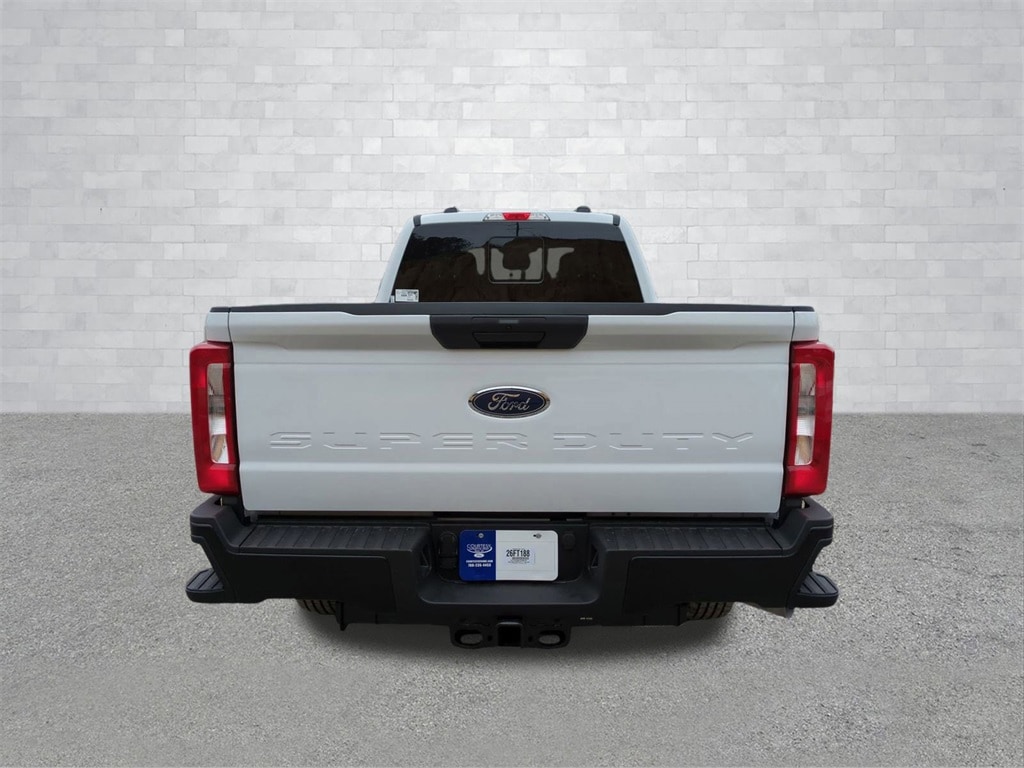 2026 Oxford White 2026 Ford F-250SD XL 4WD 6.8L V8 4WD. Ford Connectivity Package (1-Year Included), Internet access capable: 5G Modem - Ford Connectivity Package, 4WD, 3.73 Axle Ratio, 4-Wheel Disc Brakes, 6 Speakers, ABS brakes, Air Conditioning, AM/FM radio, Brake assist, Cloth 40/20/40 Split Bench Seat, Compass, Delay-off headlights, Dual front impact airbags, Dual front side impact airbags, Electronic Stability Control, Emergency communication system: SYNC 4 911 Assist, Exterior Parking Camera Rear, Front anti-roll bar, Front Center Armrest w/Storage, Front reading lights, Fully automatic headlights, Heated door mirrors, Illuminated entry, Low tire pressure warning, Outside temperature display, Overhead airbag, Overhead console, Panic alarm, Passenger cancellable airbag, Passenger vanity mirror, Power door mirrors, Power steering, Power windows, Privacy Glass, Rear step bumper, Remote keyless entry, Security system, Speed control, Split folding rear seat, Steering wheel mounted audio controls, SYNC 4, Tachometer, Telescoping steering wheel, Tilt steering wheel, Traction control, Trip computer, Turn signal indicator mirrors, and Variably intermittent wipers Courtesy Ford and Lincoln of Rome 101 Hwy 411 E Rome, Ga 30161 ROMEFORDLINC.COM 706.235.4453.