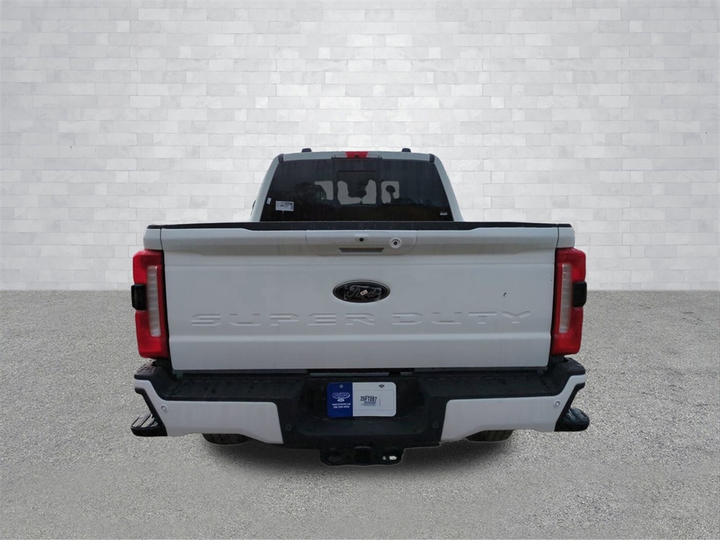 2026 Star White Metallic Tri-Coat 2026 Ford F-350SD Lariat 4WD Power Stroke 6.7L V8 DI 32V OHV Turbodiesel 12" LCD Productivity Touchscreen, 360-Degree Camera, 5G WiFi Hotspot Telematics, Auto Emergency Braking, Auto LED Headlights, Backup Camera, Blind Spot Monitoring, BLIS w/ Cross Traffic Alert, Bluetooth w/ Audio Streaming, Heavy Duty Trailer Package, Lane Departure Warning, Lariat Package, Memory Package, Parking Sensors, Power Mirror Package, Power Package, Power Sliding Rear Window, Pre Collision Assist w/ AEB, Preferred Equipment Package, Pro Trailer Backup Assist, Pro Trailer Hitch Assist, Reverse Brake Assist, Reverse Sensing, 4D Crew Cab, Power Stroke 6.7L V8 DI 32V OHV Turbodiesel, 10-Speed Automatic, 4WD, 410 Amp Dual Alternators, 5th Wheel/Gooseneck Hitch Prep Package, 6" Ebony Black Angular Running Boards, ABS brakes, Alloy wheels, Black Appearance Package, Black Painted Front Grille Surround, Body Color Front & Rear Bumpers, Compass, Dual AGM 68 AH Battery, Ebony Black Painted Mirror Caps, Electronic Stability Control, Ford Connectivity Package (1-Year Included), Front dual zone A/C, Heated door mirrors, Heated front seats, Heated rear seats, Illuminated entry, Internet access capable: 5G Modem - Ford Connectivity Package, Lane Departure Warning System, Lariat Premium Package, Low tire pressure warning, Order Code 618A, Power-Sliding Rear-Window w/Defrost, Privacy Glass, Pro Trailer Backup Assist, Pro Trailer Hitch Assist, Rapid-Heat Supplemental Cab Heater, Rear Wheel Well Liners (Pre-Installed), Remote keyless entry, Tough Bed Spray-In Bedliner, Traction control, Wheels: 20" Ebony Black High Gloss. 5th Wheel/Gooseneck Hitch Prep Package, Black Appearance Package (6" Ebony Black Angular Running Boards, Black Painted Front Grille Surround, Body Color Front & Rear Bumpers, Ebony Black Painted Mirror Caps, Rear Wheel Well Liners (Pre-Installed), Tough Bed Spray-In Bedliner, and Wheels: 20" Ebony Black High Gloss), Ford Connectivity Package (1-Year Included), Internet access capable: 5G Modem - Ford Connectivity Package, Lariat Premium Package (Lane Departure Warning System, Power-Sliding Rear-Window w/Defrost, Privacy Glass, Pro Trailer Backup Assist, and Pro Trailer Hitch Assist), Order Code 618A, 4D Crew Cab, Power Stroke 6.7L V8 DI 32V OHV Turbodiesel, 10-Speed Automatic, 4WD, 410 Amp Dual Alternators, ABS brakes, Alloy wheels, Compass, Dual AGM 68 AH Battery, Electronic Stability Control, Front dual zone A/C, Heated door mirrors, Heated front seats, Heated rear seats, Illuminated entry, Low tire pressure warning, Rapid-Heat Supplemental Cab Heater, Remote keyless entry, Traction control, 190 Amp Alternator, 3.73 Axle Ratio, 4-Wheel Disc Brakes, 8 Speakers, Adjustable pedals, Air Conditioning, AM/FM radio: SiriusXM with 360L, Auto High-beam Headlights, Auto-dimming Rear-View mirror, Automatic temperature control, BLIS w/Cross-Traffic Alert, Brake assist, Bumpers: chrome, Delay-off headlights, Driver door bin, Driver vanity mirror, Dual front impact airbags, Dual front side impact airbags, Emergency communication system: SYNC 4 911 Assist, Flow-Through Console, Front ActiveX Trimmed 40/Console/40 Seats, Front anti-roll bar, Front Bucket Seats, Front Center Armrest, Front fog lights, Front reading lights, Fully automatic headlights, Garage door transmitter, Heated steering wheel, Memory seat, Outside temperature display, Overhead airbag, Overhead console, Panic alarm, Passenger door bin, Passenger vanity mirror, Pedal memory, Power door mirrors, Power driver seat, Power passenger seat, Power steering, Power windows, Radio: B&O Sound System by Bang & Olufsen, Rain sensing wipers, Rear Parking Sensors, Rear reading lights, Rear seat center armrest, Rear step bumper, Rear window defroster, Security system, SiriusXM w/360L, Speed control, Split folding rear seat, Steering wheel mounted audio controls, SYNC 4 w/Enhanced Voice Reco
