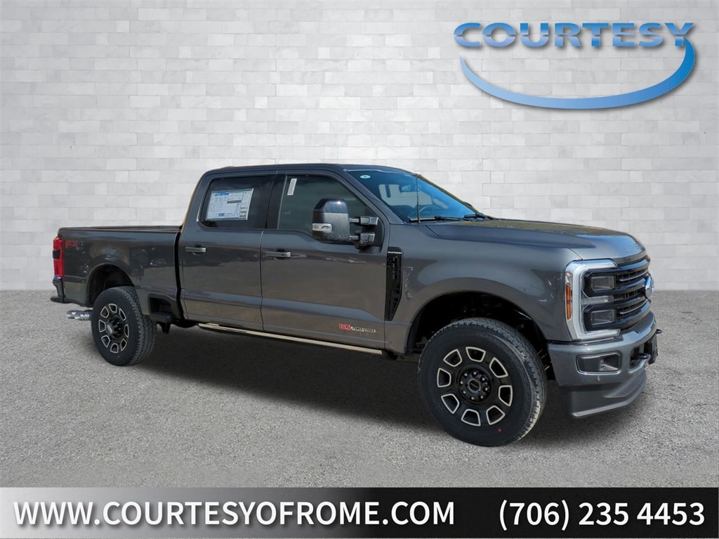 2026 Carbonized Gray Metallic 2026 Ford F-350SD Platinum 4WD 6.7L High Output Power Stroke V8 Diesel 4D Crew Cab, 6.7L High Output Power Stroke V8 Diesel, 10-Speed Automatic, 4WD, ABS brakes, Alloy wheels, Compass, Electronic Stability Control, Front dual zone A/C, Heated door mirrors, Heated front seats, Heated rear seats, Illuminated entry, Low tire pressure warning, Remote keyless entry, Traction control. Ford Connectivity Package (1-Year Included), Internet access capable: 5G Modem - Ford Connectivity Package, 4D Crew Cab, 6.7L High Output Power Stroke V8 Diesel, 10-Speed Automatic, 4WD, ABS brakes, Alloy wheels, Compass, Electronic Stability Control, Front dual zone A/C, Heated door mirrors, Heated front seats, Heated rear seats, Illuminated entry, Low tire pressure warning, Remote keyless entry, Traction control, 4-Wheel Disc Brakes, Adjustable pedals, Air Conditioning, AM/FM radio: SiriusXM with 360L, Auto High-beam Headlights, Auto-dimming Rear-View mirror, Automatic temperature control, Brake assist, Delay-off headlights, Driver door bin, Driver vanity mirror, Dual front impact airbags, Dual front side impact airbags, Emergency communication system: SYNC 4 911 Assist, Flow-Through Console, Front anti-roll bar, Front Bucket Seats, Front Center Armrest, Front fog lights, Front reading lights, Fully automatic headlights, Garage door transmitter, Heated steering wheel, Memory seat, Navigation system: Connected Navigation, Outside temperature display, Overhead airbag, Overhead console, Panic alarm, Passenger door bin, Passenger vanity mirror, Pedal memory, Power door mirrors, Power driver seat, Power passenger seat, Power steering, Power windows, Rain sensing wipers, Rear reading lights, Rear seat center armrest, Rear step bumper, Rear window defroster, Security system, Speed control, Split folding rear seat, Steering wheel mounted audio controls, Tachometer, Telescoping steering wheel, Tilt steering wheel, Trip computer, Turn signal indicator mirrors, Variably intermittent wipers, and Ventilated front seats Courtesy Ford and Lincoln of Rome 101 Hwy 411 E Rome, Ga 30161 ROMEFORDLINC.COM 706.235.4453.