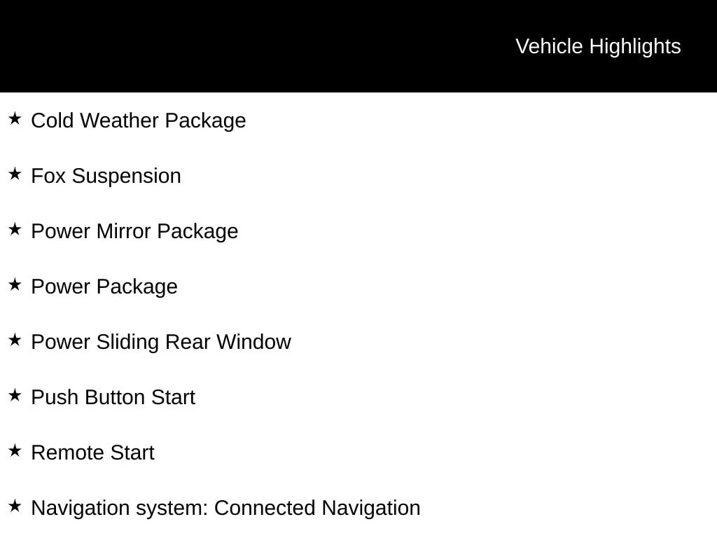 - Remote Engine Start : Keyfob remote start
