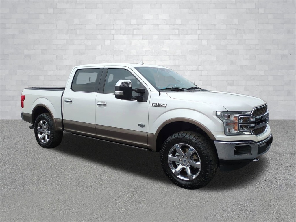 White Platinum 2018 Ford F-150 King Ranch 4WD FX4 4WD King Ranch 4WD FX4 **LOCAL TRADE**, 8" Color Touchscreen, Adaptive Cruise Control, Android Auto, Apple Carplay, Auto LED Headlights, Backup Camera, Blind Spot Monitoring, BLIS w/ Cross Traffic Alert, Bluetooth w/ Audio Streaming, Hill Descent Control, King Ranch Package, Leather Seats, LED Foglights, Luxury Package, Memory Package, Multimedia Package, Off Road Package, Panoramic Sunroof/Moonroof, Parking Sensors, Power Mirror Package, Power Package, Power Running Boards, Power Sliding Rear Window, Premium Audio Package, Premium Sound Package, Pro Trailer Backup Assist, Pro Trailer Hitch Assist, Push Button Start, Remote Start, Reverse Brake Assist, Reverse Sensing, Skid Plate Package, Trailer Side Blind Zone Alert, 4D SuperCrew, 3.5L V6 EcoBoost, 10-Speed Automatic, 4WD, 10 Speakers, 4-Wheel Disc Brakes, 4x4 FX4 Off-Road Bodyside Decal, ABS brakes, Adaptive Cruise Control, Adjustable pedals, AM/FM radio: SiriusXM, AppLink/Apple CarPlay and Android Auto, Auto High-beam Headlights, Auto tilt-away steering wheel, Auto-dimming door mirrors, Auto-dimming Rear-View mirror, Automatic temperature control, BLIS Blind Spot Information System, Brake assist, Bright Belt Moldings, Chrome Door Handles w/Body-Color Strap, Chrome Front & Rear Bumpers, Chrome Skull Caps on Exterior Mirrors, Class IV Trailer Hitch Receiver, Compass, Delay-off headlights, Electronic Locking w/3.55 Axle Ratio, Electronic Stability Control, Emergency communication system: SYNC 3 911 Assist, Equipment Group 601A Luxury, Exterior Parking Camera Rear, Front Center Armrest, Front dual zone A/C, Front fog lights, Front wheel independent suspension, Fully automatic headlights, FX4 Off-Road Package, Garage door transmitter, Genuine wood dashboard insert, Genuine wood door panel insert, GVWR: 7,050 lbs Payload Package, Heated door mirrors, Heated front seats, Heated rear seats, Heated steering wheel, Higher-Capacity Radiator, Higher-Power Cooling Fans, Hill Descent Control, Illuminated entry, Inflatable Rear Safety Belts, Integrated Trailer Brake Controller, King Ranch Chrome Appearance Package, King Ranch Leather Bucket Seats, LED Sideview Mirror Spotlights, Low tire pressure warning, Memory seat, Multi-Contour Driver & Passenger Seats, Navigation System, Off-Road Tuned Front Shock Absorbers, Outside temperature display, Overhead console, Panic alarm, Pedal memory, Power door mirrors, Power passenger seat, Power-Deployable Running Boards, Pro Trailer Backup Assist, Radio data system, Radio: B&O Play Premium Audio System, Rain sensing wipers, Rear Parking Sensors, Rear seat center armrest, Remote keyless entry, Security system, Speed-sensing steering, Split folding rear seat, Spray-In Bedliner (Pre-Installed), Steering wheel memory, Steering wheel mounted audio controls, SYNC 3, Tailgate Step w/Tailgate Lift Assist, Telescoping Power Glass Trailer Tow Mirrors w/Heat, Telescoping steering wheel, Tilt steering wheel, Traction control, Trailer Tow Package, Trip computer, Turn signal indicator mirrors, Twin Panel Moonroof, Upgraded Front Stabilizer Bar, Ventilated front seats, Voice-Activated Touchscreen Navigation System, Wheels: 20" Chrome-Like PVD.